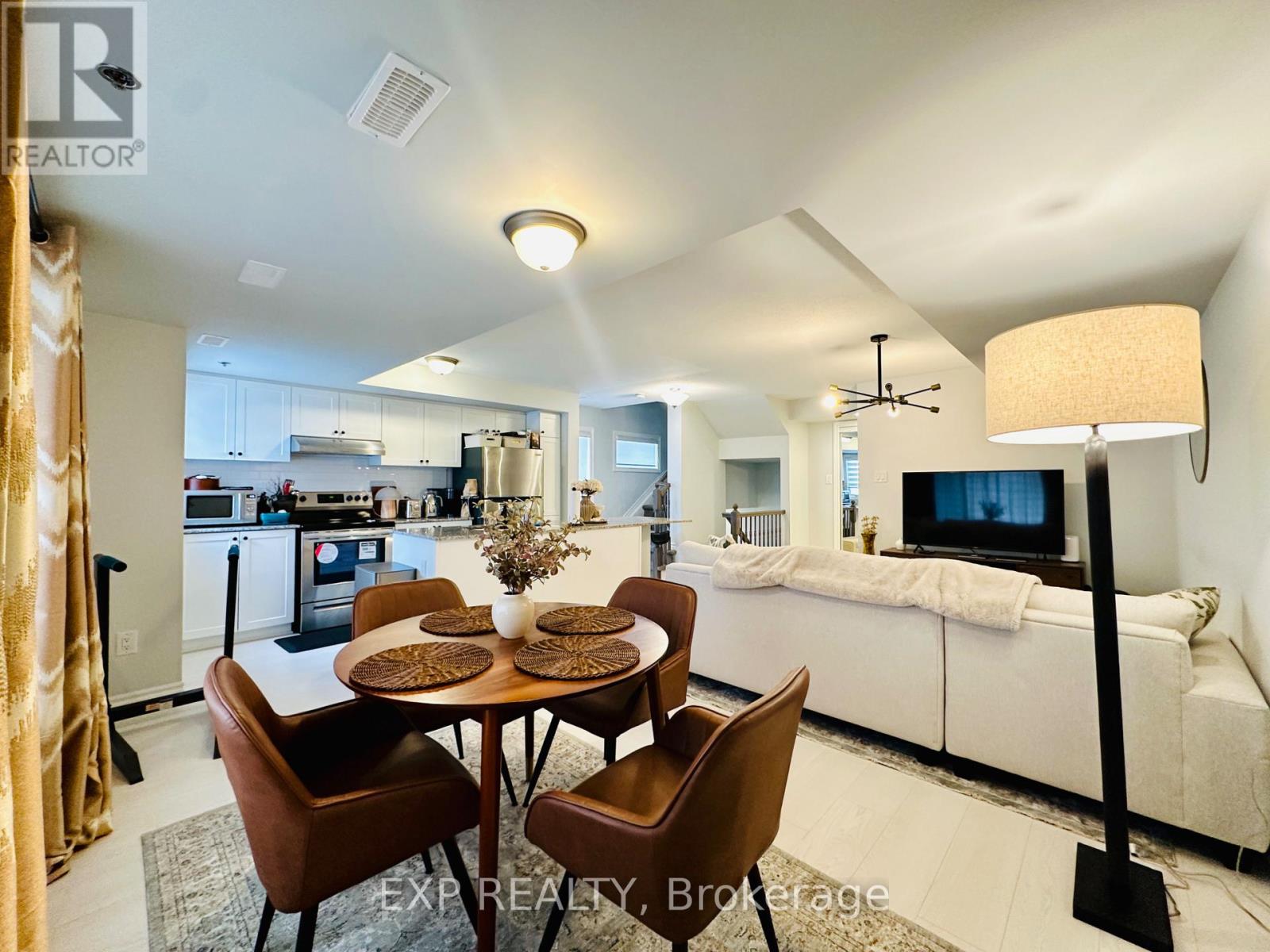 Welcome to 545 TAKAMOSE PVT at Wateridge Village community. This charming 2-bedroom, 1.5-bath stacked townhome, offering approximately 1,200 sq. ft. of living space along with a private rooftop terrace and balcony. One dedicated outdoor parking space is conveniently located directly in front of the unit.Inside, you'll find stylish and practical finishes: laminate flooring throughout the second level and soft carpet on the third floor, including in high-traffic hallways for added comfort.The second floor features an open-concept layout, with a bright living and dining area flooded with natural light from large windows. The adjoining modern kitchen is equipped with granite countertops and stainless steel appliances. A convenient powder room is also located on this level.Upstairs, the third floor includes two well-appointed bedrooms and a full bathroom, complemented by a handy laundry room on the same level for everyday ease. The primary bedroom enjoys access to a private balcony-perfect for unwinding. Above it all awaits your spacious rooftop terrace, an ideal canvas for a garden and the perfect spot to greet the sunset.Ideally situated near Montfort Hospital, Ottawa River bike paths, Beechwood Village, St. Laurent Shopping Centre, and Gloucester Centre-home to Blair LRT Station and Costco and more.Occupancy available March 1, 2026. (id:64974)
