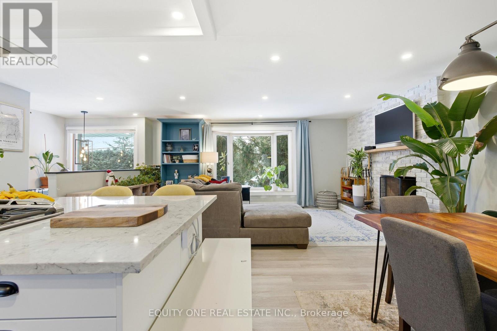 Welcome to 5453 Long Island Rd, a charming detached raised bungalow on the sought after North side of Long Island in the heart of Manotick ~ just steps from the Rideau River, boutique shops, restaurants, parks & more! This beautifully maintained home offers 3 bedrooms and 3 full bathrooms, along with an inviting, light-filled layout perfect for modern living.The main level features a bright open-concept floor plan with a spacious living room highlighted by a cozy wood-burning fireplace, a dedicated dining area, and a stunning kitchen equipped with classic white cabinetry, granite island with breakfast bar, and stainless steel appliances. Patio door access leads to the backyard deck-ideal for outdoor dining or morning coffee. Three well-sized bedrooms complete this level, including a lovely primary suite with ample closet space and a stylish 4-piece ensuite. A second full bathroom serves the main floor.The lower level feels anything but like a basement with its large grade-level windows. Enjoy a generous family room with gas fireplace, full bathroom, exercise room, laundry room, storage space, and a flexible area perfect for guests or a home office. The large, tree-lined backyard offers privacy and space to play, garden, or entertain.A wonderful opportunity to live in one of Manotick's most desirable locations-move-in ready and full of charm! (id:64974)