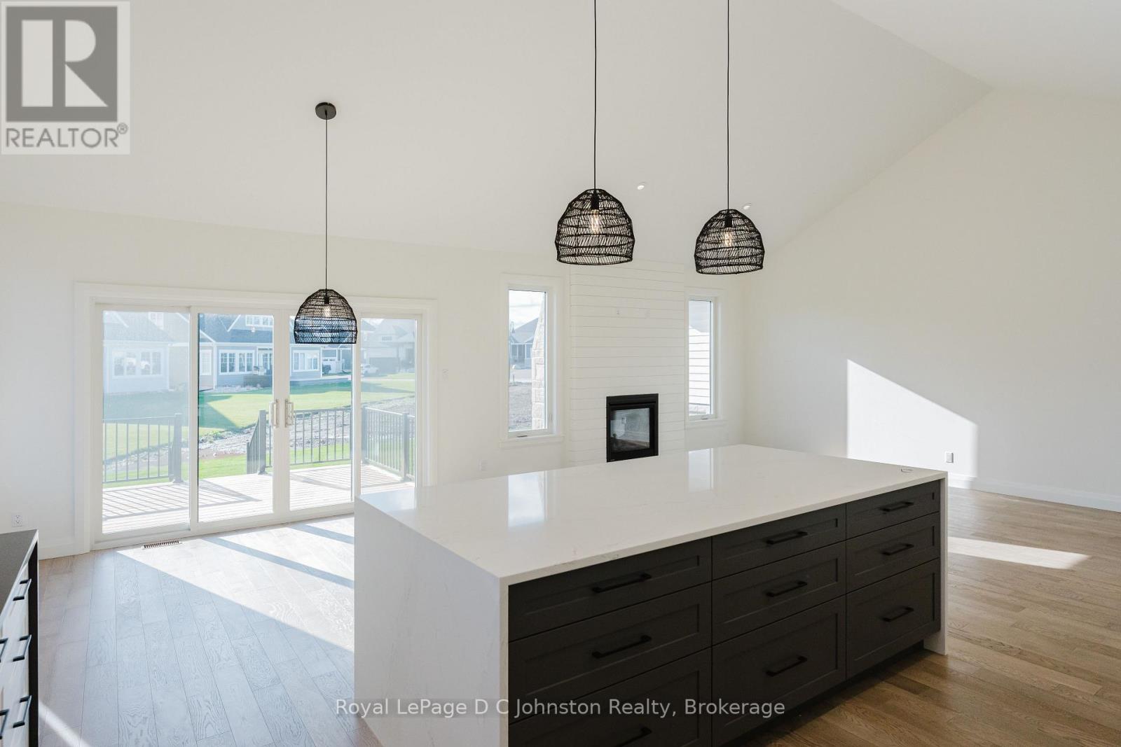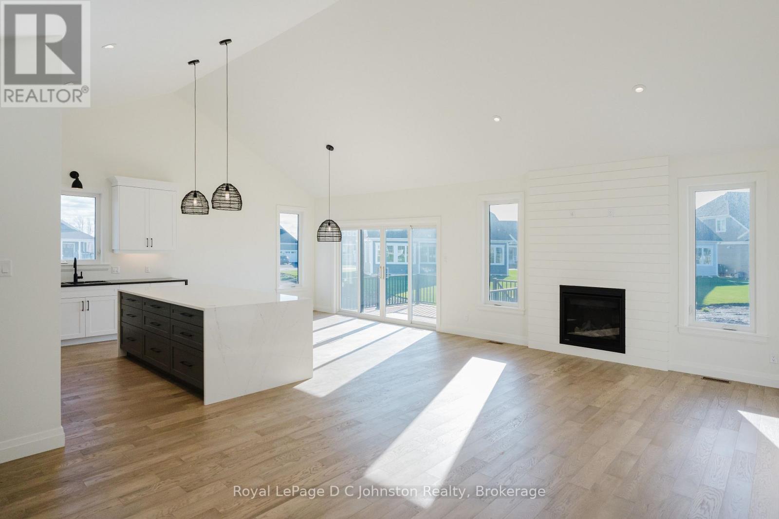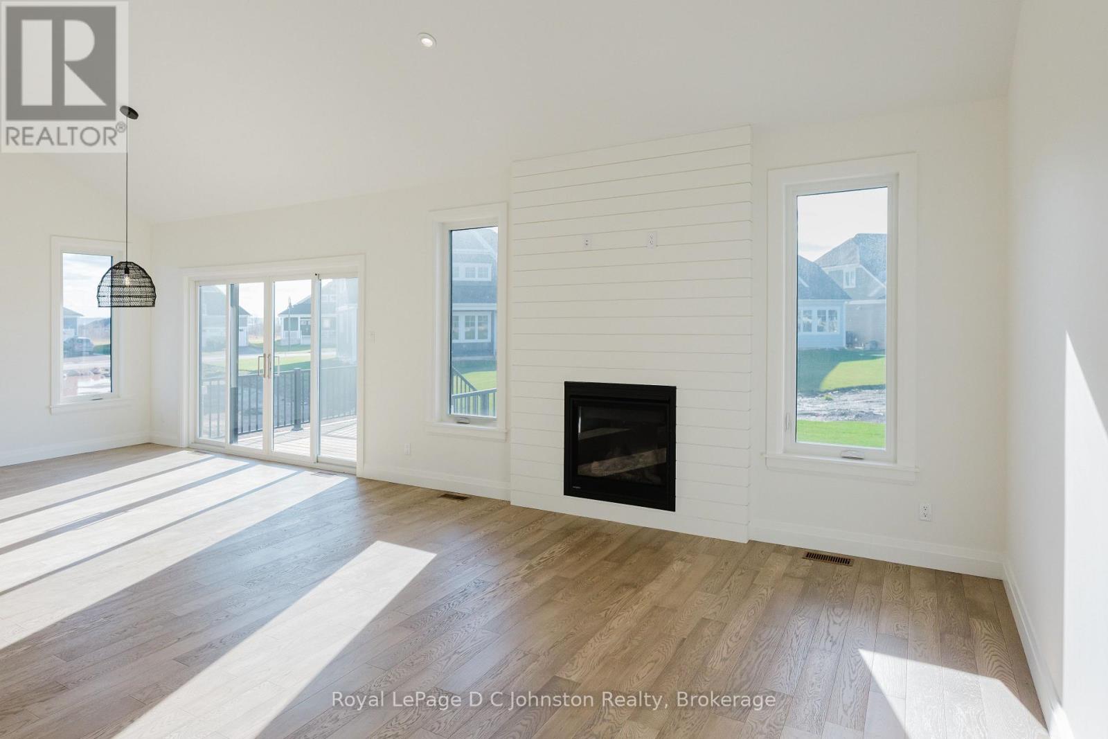 This stunning 1,780 sq. ft. bungalow built by Berner Contracting, offers exceptional craftsmanship and thoughtful design. Featuring 2 bedrooms and 2 bathrooms, this home is perfect for comfortable and modern living.The exterior showcases a grand entrance and covered porch with a combination of stone and wood siding as well as a double car garage. While the interior is finished with engineered hardwood and tile throughout. The open-concept living room, dining room, and kitchen are highlighted by vaulted ceilings, large windows, and a cozy shiplap fireplace, creating a bright and inviting atmosphere. The custom kitchen is impressive with white cabinetry and clean lines, complete with a walk-in pantry, and a sit-up island with waterfall quartz countertops providing ample space for entertaining. The spacious primary suite offers an ensuite featuring a beautifully tiled shower, and oversized walk-in closet while the main-floor laundry adds ease and convenience. The unfinished basement provides endless opportunities to customize your space. All of this is nestled in the desirable Cobble Beach community, offering a perfect balance of peaceful living and resort-style amenities. Enjoy US Open-style tennis courts, fitness facility, pool, hot tub, a luxurious spa, 14 km of scenic walking trails, and a private beach with kayak racks. As an added bonus, this home includes one initiation fee for the prestigious Cobble Beach Golf Course, making it an incredible opportunity to enjoy luxury living in a sought-after community! Reach out to your Realtor today! **EXTRAS** Fee breakdown - Common Elements $134.52/mth and Mandatory Resident Membership $198.88/mth (id:64974)