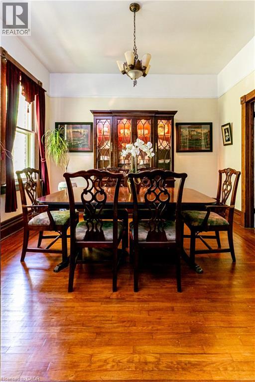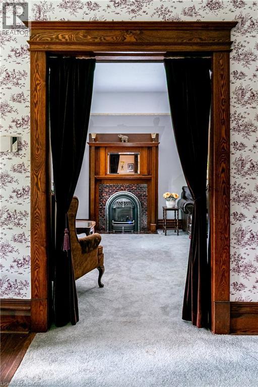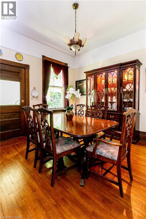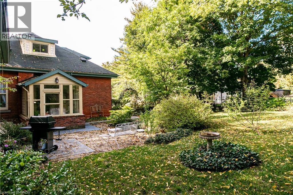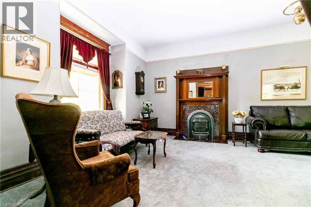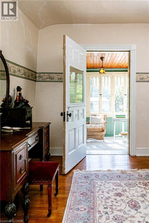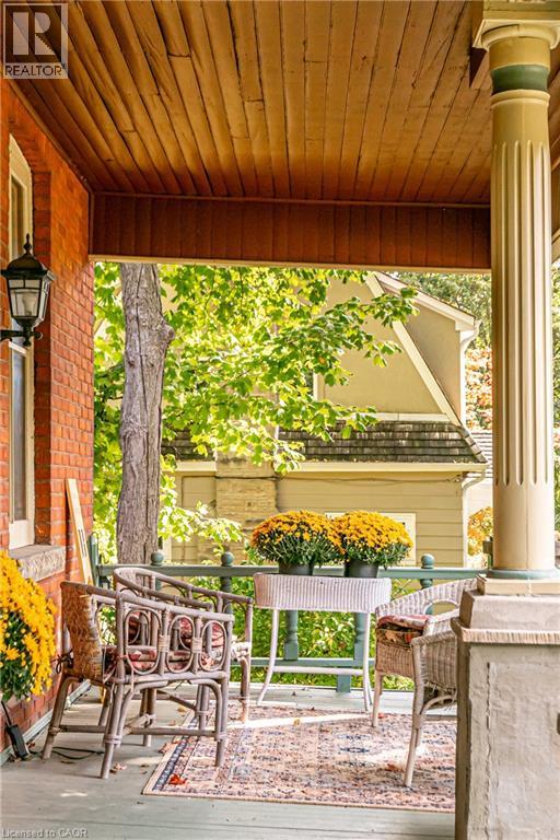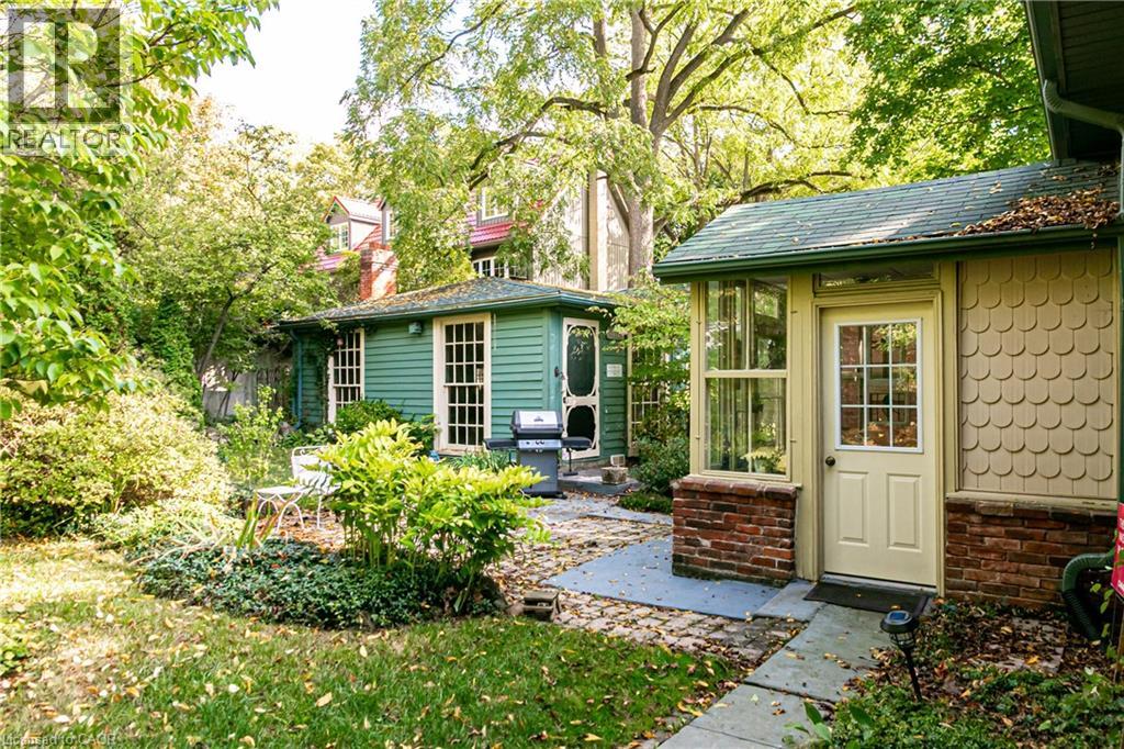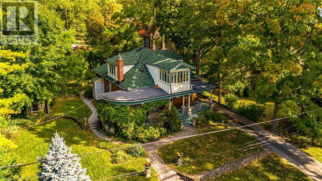 With a wraparound porch you’ll never want to leave, 55 Cayley is the one you’ve been waiting for. This victorian cottage is perfectly located in one of Dundas’ most desirable neighbourhoods, the home is steps from Dundas Driving Park, close to trails, schools, and the vibrant shops and cafés of Downtown Dundas. Accented by original coal gas fixtures, detailed carpentry, and warm woodwork, it radiates charm and character throughout. Inside, soaring 10’ ceilings, oak hardwood floors, and oversized windows create a bright natural flow. The main floor offers true one-floor living with a spacious front hall, elegant living room or office, sprawling family room with ornate gas fireplace, generous bedroom, and full bath. A butler’s pantry leads into the kitchen, filled with original character and framed by garden views. From here, step into the bright sun porch with walkout to the rear gardens. The separate dining room opens out to the side garden, where a 1920s gazebo and stonework create an enchanting, secret-garden setting—perfect for intimate gatherings or quiet reflection. Separate staircases lead to the 2nd floor, where you’ll find a rear bedroom or den, full bath, ample storage, and a generous primary retreat with dormer windows, electric fireplace, and walkout to an enclosed terrace overlooking the streetscape and treetops beyond. The lower level provides laundry, storage, and walk-up access to the yard. Outdoors, mature gardens, multiple sitting areas, a powered garage and separate studio space, long driveway, and versatile outbuilding add practicality and flexibility. Set on a rare double-wide lot of more than 0.25 acre, this property offers space, privacy, and presence rarely found in Dundas. (id:64974)