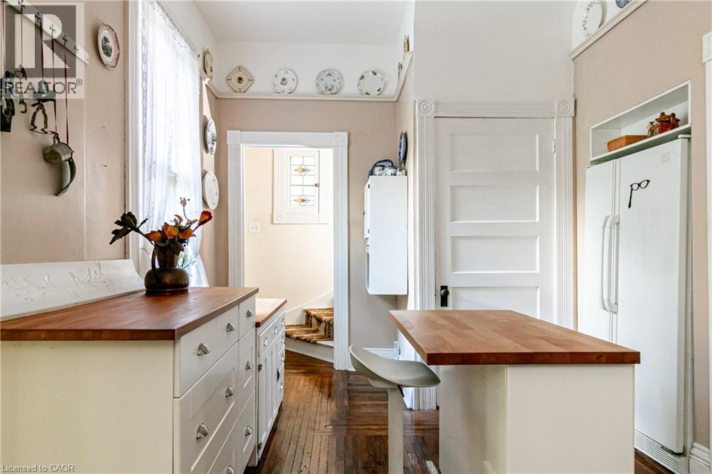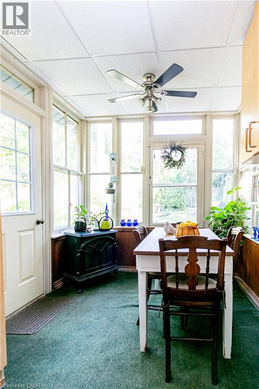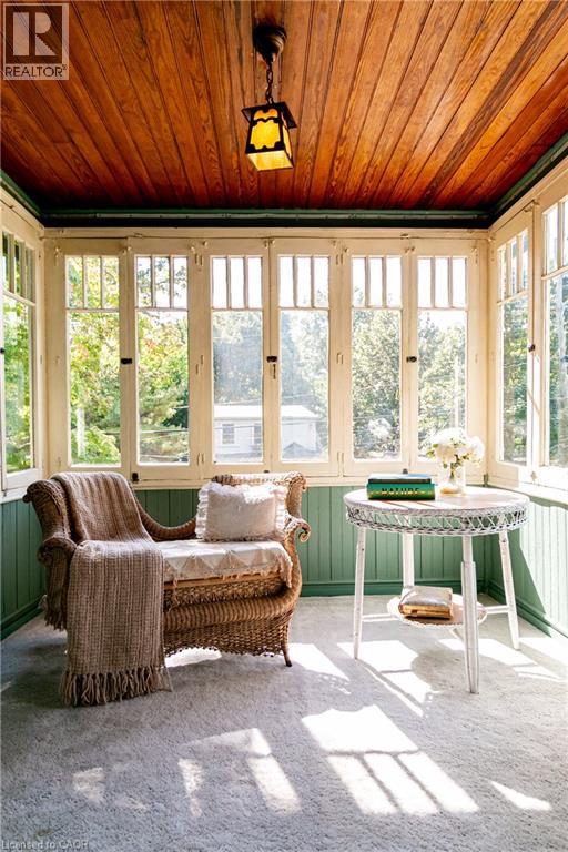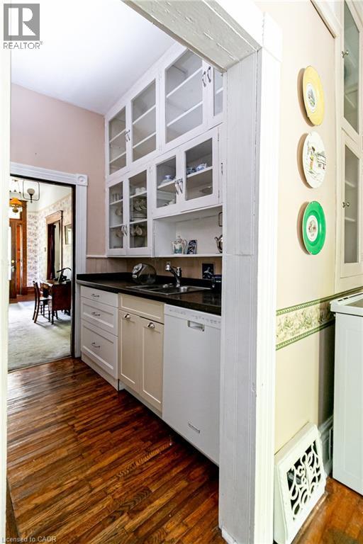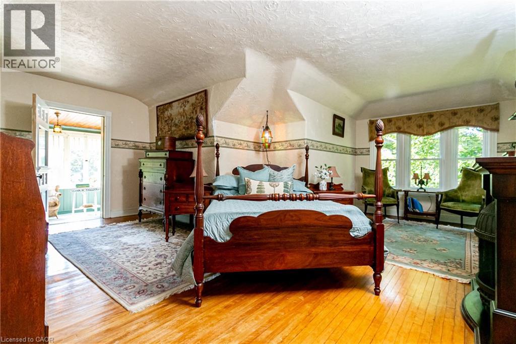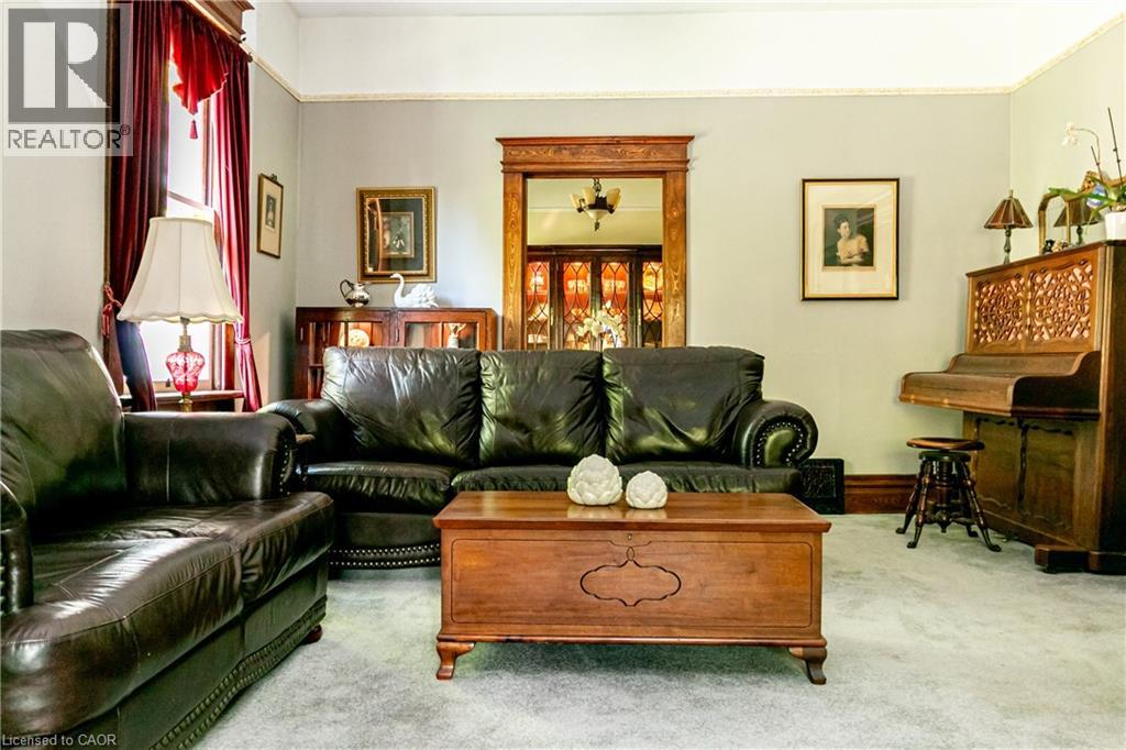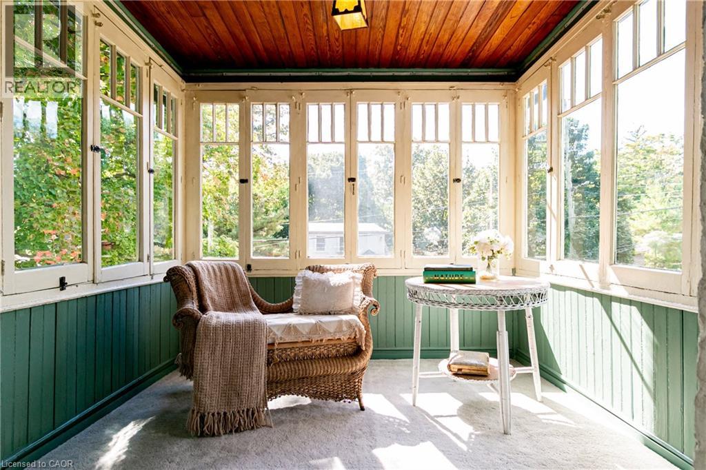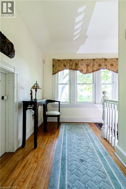 With a wraparound porch you’ll never want to leave, 55 Cayley is the one you’ve been waiting for. This victorian cottage is perfectly located in one of Dundas’ most desirable neighbourhoods, the home is steps from Dundas Driving Park, close to trails, schools, and the vibrant shops and cafés of Downtown Dundas. Accented by original coal gas fixtures, detailed carpentry, and warm woodwork, it radiates charm and character throughout. Inside, soaring 10’ ceilings, oak hardwood floors, and oversized windows create a bright natural flow. The main floor offers true one-floor living with a spacious front hall, elegant living room or office, sprawling family room with ornate gas fireplace, generous bedroom, and full bath. A butler’s pantry leads into the kitchen, filled with original character and framed by garden views. From here, step into the bright sun porch with walkout to the rear gardens. The separate dining room opens out to the side garden, where a 1920s gazebo and stonework create an enchanting, secret-garden setting—perfect for intimate gatherings or quiet reflection. Separate staircases lead to the 2nd floor, where you’ll find a rear bedroom or den, full bath, ample storage, and a generous primary retreat with dormer windows, electric fireplace, and walkout to an enclosed terrace overlooking the streetscape and treetops beyond. The lower level provides laundry, storage, and walk-up access to the yard. Outdoors, mature gardens, multiple sitting areas, a powered garage and separate studio space, long driveway, and versatile outbuilding add practicality and flexibility. Set on a rare double-wide lot of more than 0.25 acre, this property offers space, privacy, and presence rarely found in Dundas. (id:64974)