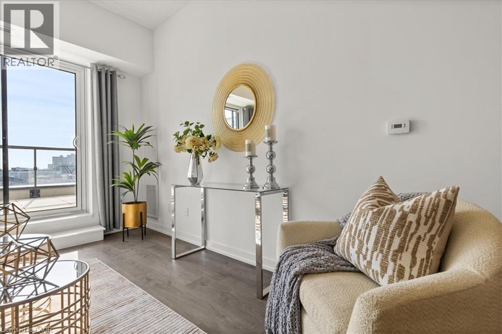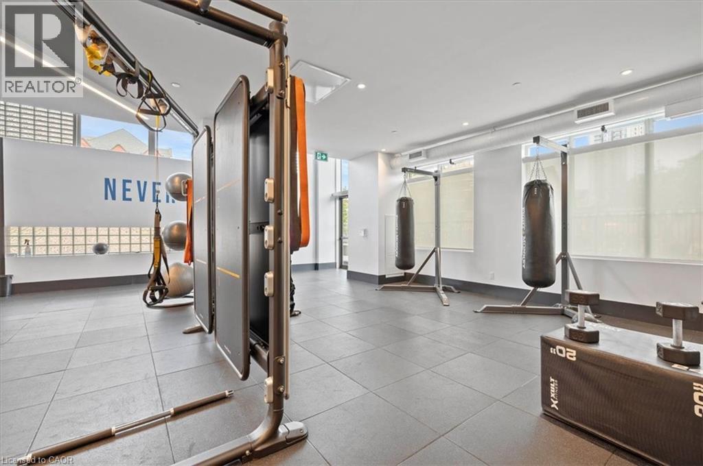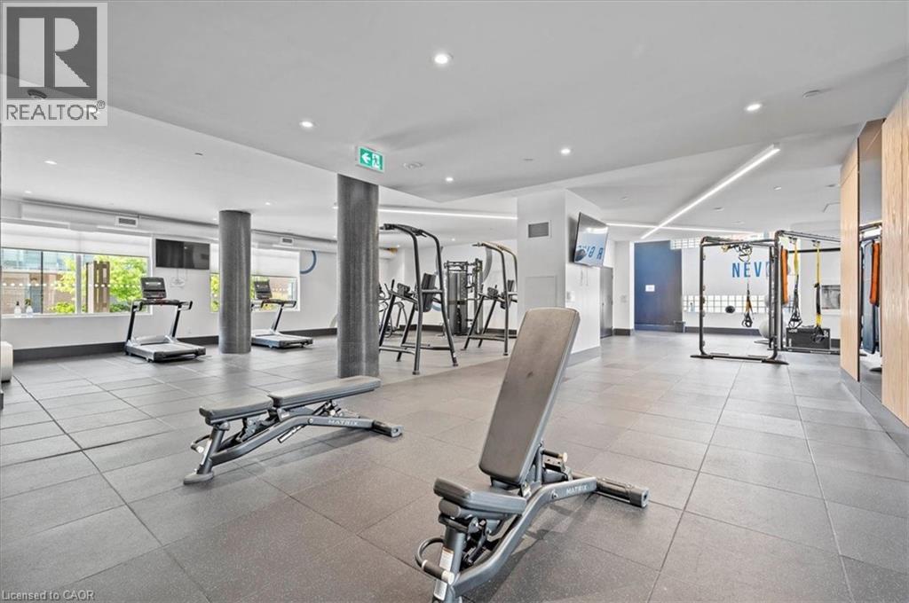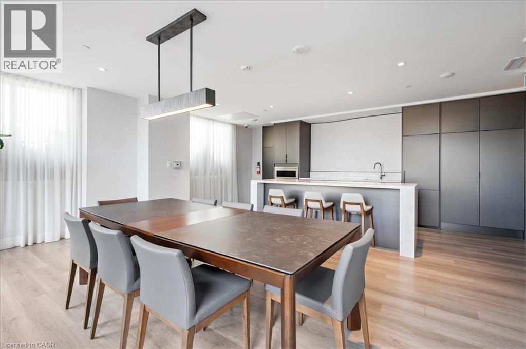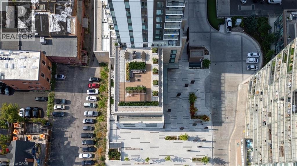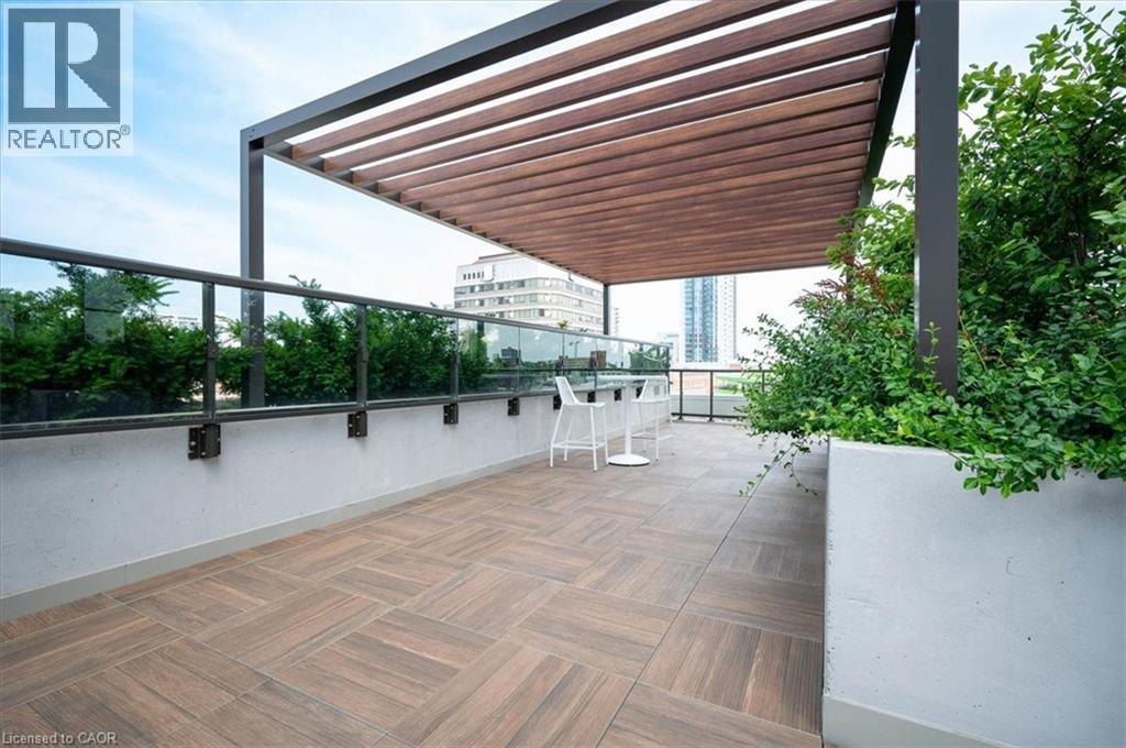 Elite DTK condo! 505 maximizes utility of the space and achieves a grand feel with the tall ceilings, open concept layout, and unobstructed easterly Kitchener skyline views. This unit sits at the same level as the roof top patio with BBQ access just down the hall. The eat in kitchen with center island, contemporary cabinetry, stainless steel appliances, and quartz countertops is open to the versatile living room space, which sits parallel to the bedroom and both overlook the 204 sq ft private terrace, bringing the total indoor/outdoor size of the unit to 675 sq ft. Click flooring flows throughout the unit. One of the most successfully integrated condo buildings in the downtown core, reconstructing the John Forsyth Shirt Company, Duke Street level façade & capturing the historic landmark while moving the city forward with urban renewal. The building amenities are impressive; a clean and modern lobby with a full-time concierge service, comfortable sitting spaces and open to the ground level state of the art fitness center, complete with heavy bags and exercise bikes surrounded by windows connecting you to the outdoors. Truly unique is your ability to take your fitness journey outside to the 25th floor, roof top running track while you enjoy the stunning 360-degree views. When its time to relax or entertain larger groups, take advantage of the 5th floor, furnished patio and party room, overlooking the Duke Street forecourt. The building also includes car wash station, dog wash station, and artificial turf dog walk. Short walking distance to Victoria park, charming cafés, popular restaurants, boutique shops, and LRT. Downtown Kitchener is changing to become a popular urban center and now is the time to take advantage. Don’t miss out! (id:64974)