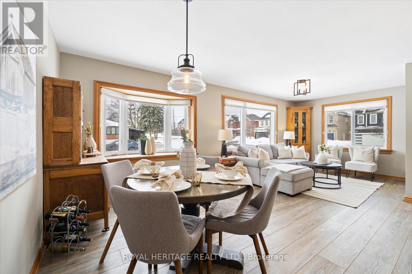 Highly sought after Meadowcrest neighbourhood in Old Brooklin! Steps to the downtown shops & restaurants, schools, parks, transit, library, rec centre & hwy 407! First time offered in almost 40 years! Very charming, sparkling clean, 3+2 bedroom, 1040 sq ft, 2 bath, brick bungalow with huge double wide driveway offering parking for 6+ vehicles. Mature, prime lot of 75 x 110 ft, 0.19 of an acre! Lovingly cared for & maintained. 2022 Green Energy Audit reports that include high efficiency furnace & Central air 2019, Energy Star Nordik windows 2022, Custom blinds 2011 on main floor, R60 Insulation, New Eavestroughs & downspouts 2018, Leaf gutter guards 2018, Roof 2014, Luxury widestrip Vinyl plank flooring on main floor 2021. Sunfilled Living & Dining Rooms offering exceptional wrap around picture & bay windows! Custom designed, retro style, 'Binns Kitchen' with plenty of cabinetry, pot drawers, breakfast bar, built-in pantry & wine rack! Separate entrance to fully finished basement offering tons of natural light with above grade windows! Open concept lower level family room, 2 large bedrooms, updated pc bath, workshop, and spacious laundry room with potential +++! Large, country feeling backyard with huge back deck & gas bbq hook up. Come make this very special home in sought after Brooklin yours today! Please enjoy the Virtual Tour. Pre-listing home inspection available. (id:64974)