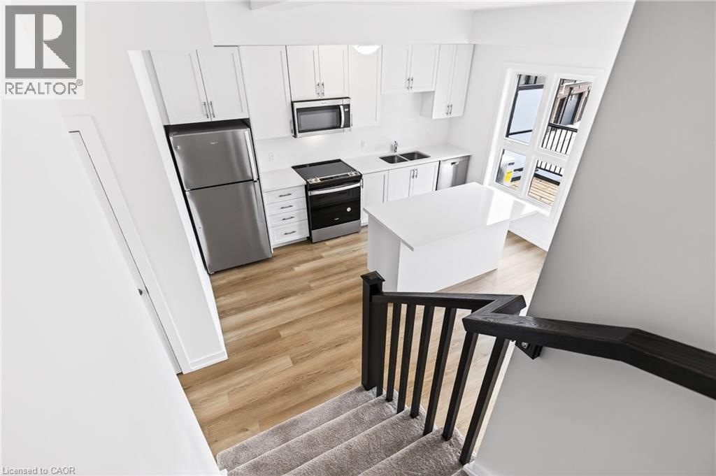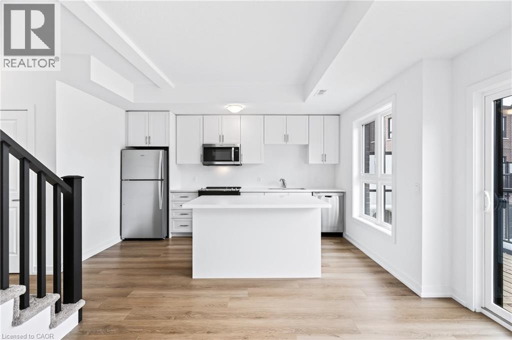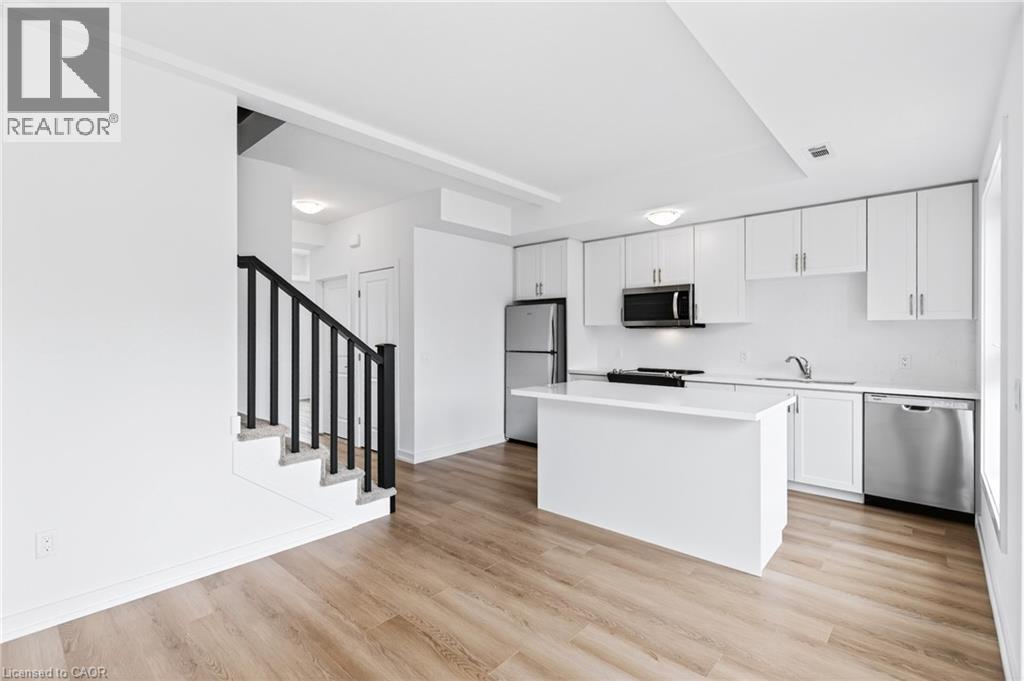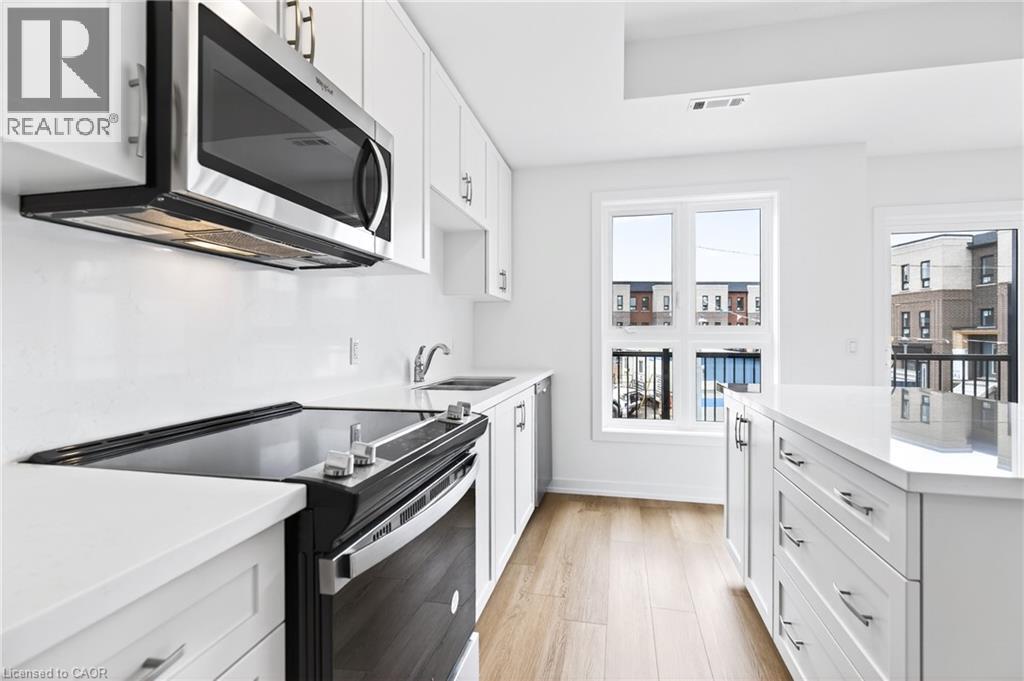 Brand new stacked townhome by award-winning developer New Horizon Development Group! This stunning 1,362 sq ft unit offers 3 bedrooms and 2.5 bathrooms, featuring a spacious 160 sq ft private terrace, a single-car garage, and a bright open-concept layout. The upgraded kitchen showcases Level 3 quartz countertops and backsplash, a double basin undermount sink, and added pot and pan drawers for extra functionality. Both the main and ensuite bathrooms are finished with Level 3 quartz counters and elegant oval undermount sinks, while the ensuite also features an upgraded vanity colour and a 4-piece layout with glass shower in the principal bedroom. Additional highlights include a high-efficiency 14 SEER 1.5-ton A/C unit for year-round comfort. Located just minutes from vibrant downtown Waterdown, you’ll enjoy boutique shopping, diverse dining, and scenic hiking trails. With easy access to major highways and transit, including Aldershot GO Station, you’re never far from Burlington, Hamilton, or Toronto (id:64974)