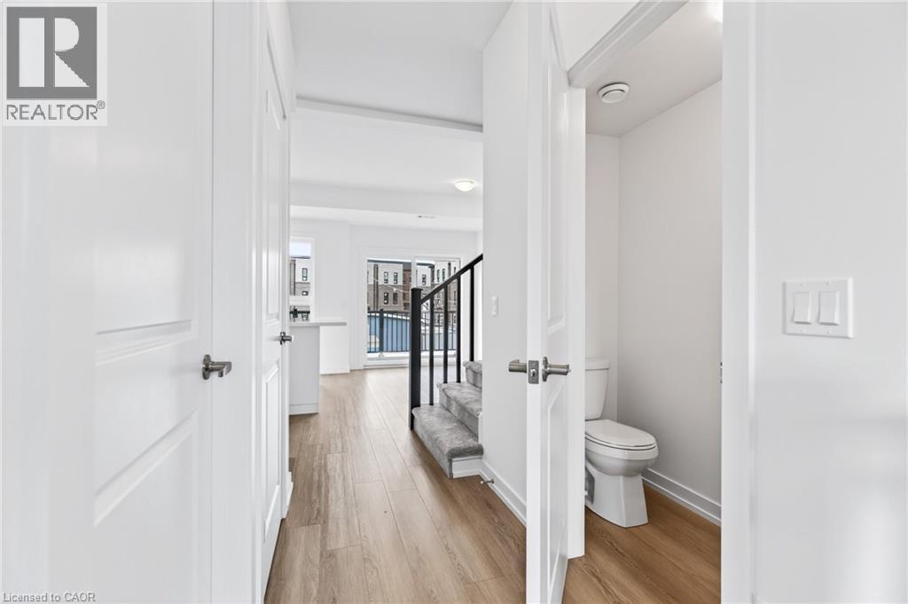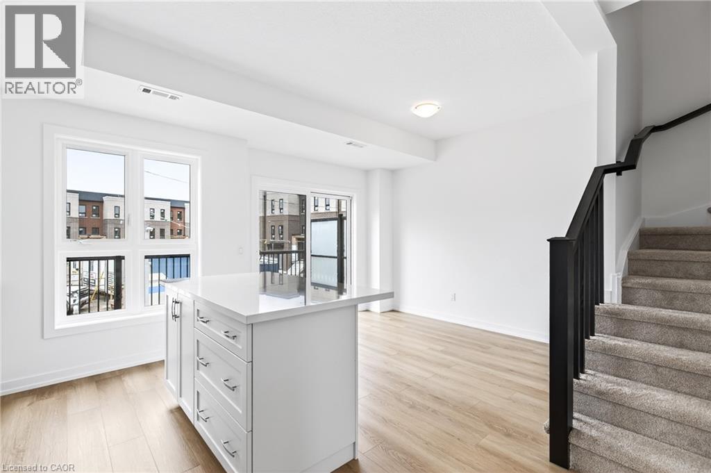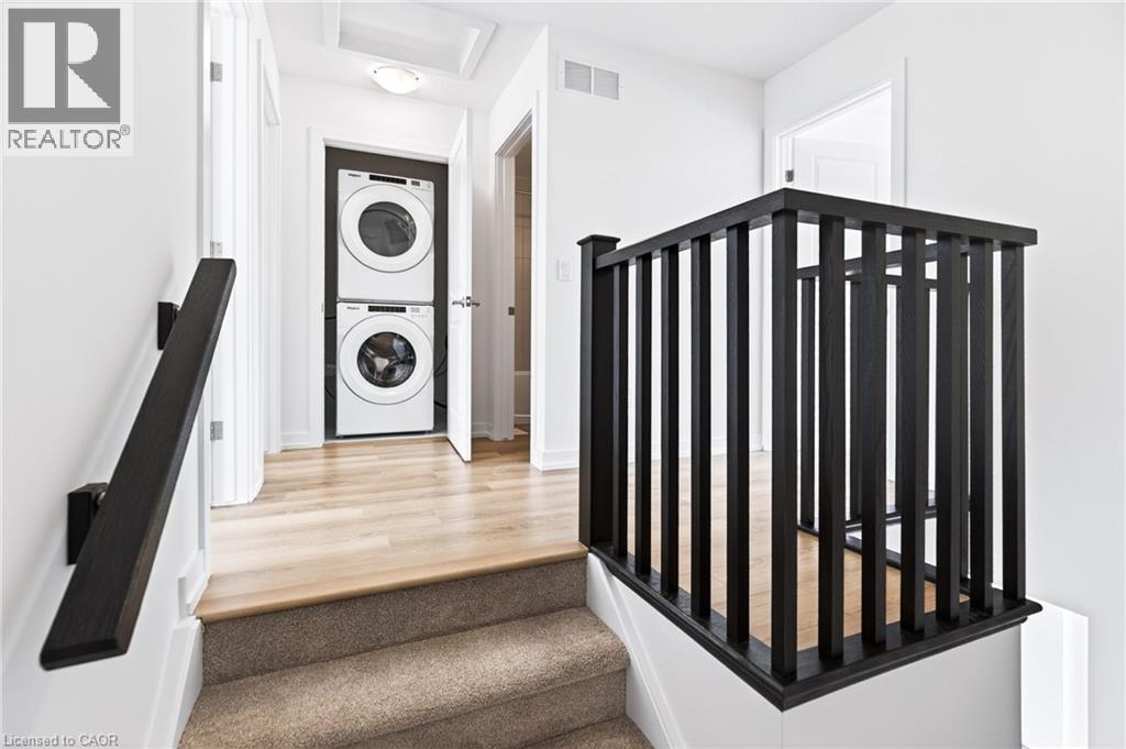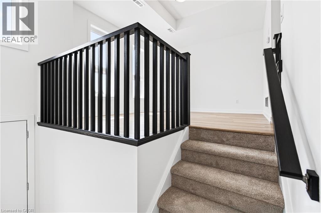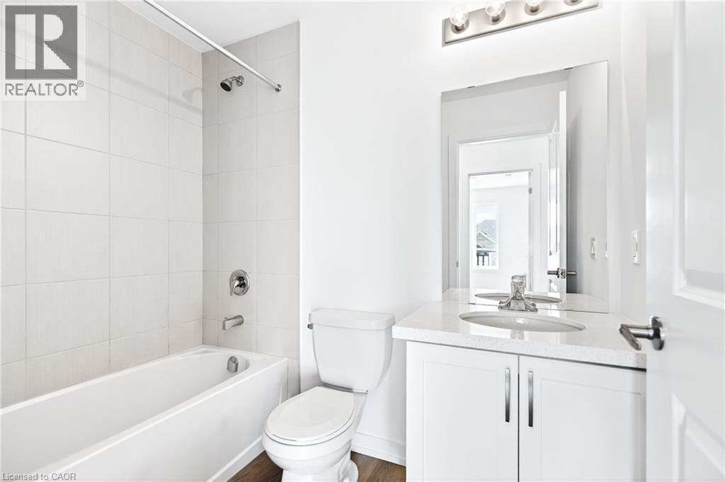 Brand new stacked townhome by award-winning developer New Horizon Development Group! This stunning 1,362 sq ft unit offers 3 bedrooms and 2.5 bathrooms, featuring a spacious 160 sq ft private terrace, a single-car garage, and a bright open-concept layout. The upgraded kitchen showcases Level 3 quartz countertops and backsplash, a double basin undermount sink, and added pot and pan drawers for extra functionality. Both the main and ensuite bathrooms are finished with Level 3 quartz counters and elegant oval undermount sinks, while the ensuite also features an upgraded vanity colour and a 4-piece layout with glass shower in the principal bedroom. Additional highlights include a high-efficiency 14 SEER 1.5-ton A/C unit for year-round comfort. Located just minutes from vibrant downtown Waterdown, you’ll enjoy boutique shopping, diverse dining, and scenic hiking trails. With easy access to major highways and transit, including Aldershot GO Station, you’re never far from Burlington, Hamilton, or Toronto (id:64974)