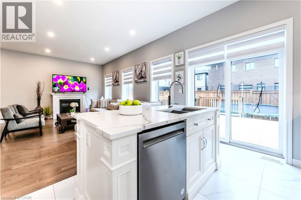 Dare to be impressed in The “Rahi” Model boasting over 3444sqft of finished living space w/a 3 bed + 2 bed, 3 1/2 bath floor plan w/upper family room and a host of premium features. IMPRESSIVE 8 FOOT TALL FRONT ENTRY DOOR, setting the tone for the lavish interiors that await. The designer kitchen is adorned with upgraded Heirloom-style maple cabinetry, soft-close cabinets, and a QUARTZ COUNTERTOP & BACKSPLASH THAT EXUDE SOPHISTICATION. Enhancing its allure is the island w/upgraded corner posts, a wine fridge, gas stove with an upgraded stainless chimney hood fan, and in-floor heating. A 6 ft patio door featuring a transom window above, inviting natural light and seamless indoor-outdoor living. Gather around the NAPOLEON GAS FIREPLACE IN THE GREAT ROOM, illuminated by pot lights strategically added for ambiance. The opulence extends to every bathroom, where UPGRADED QUARTZ COUNTERTOPS AND MAPLE SHAKER CABINETS create a spa-like atmosphere. Revel in the luxury of a 10 ft main floor ceiling height, 12x24 CERAMIC TILE FLOORING in the foyer, kitchen, and bathrooms, alongside maple hardwood flooring in the Great room, dining room, family room, and upper hallway. Ascend the MAPLE HARDWOOD STEPS ADORNED WITH BLACK WROUGHT IRON SPINDLES, leading to an upper family room for additional relaxation and leisure. Retreat to the generously sized primary bedroom which features a walk-in closet. The master ensuite, a sanctuary featuring DOUBLE VESSEL SINKS, A FREESTANDING TUB, AND A GLASS-ENCLOSED SHOWER with a rain shower head, EPITOMIZING INDULGENCE AND STYLE. Professionally finished by the builder, the basement offers additional living space with a 9 ft ceiling, two bedrooms, and a 3 pc bathroom, illuminated by two Egress windows that flood the space with natural light. Outside, unwind in the fully fenced backyard, complete with a retractable awning and deck, perfect for dining and entertaining. (id:64974)