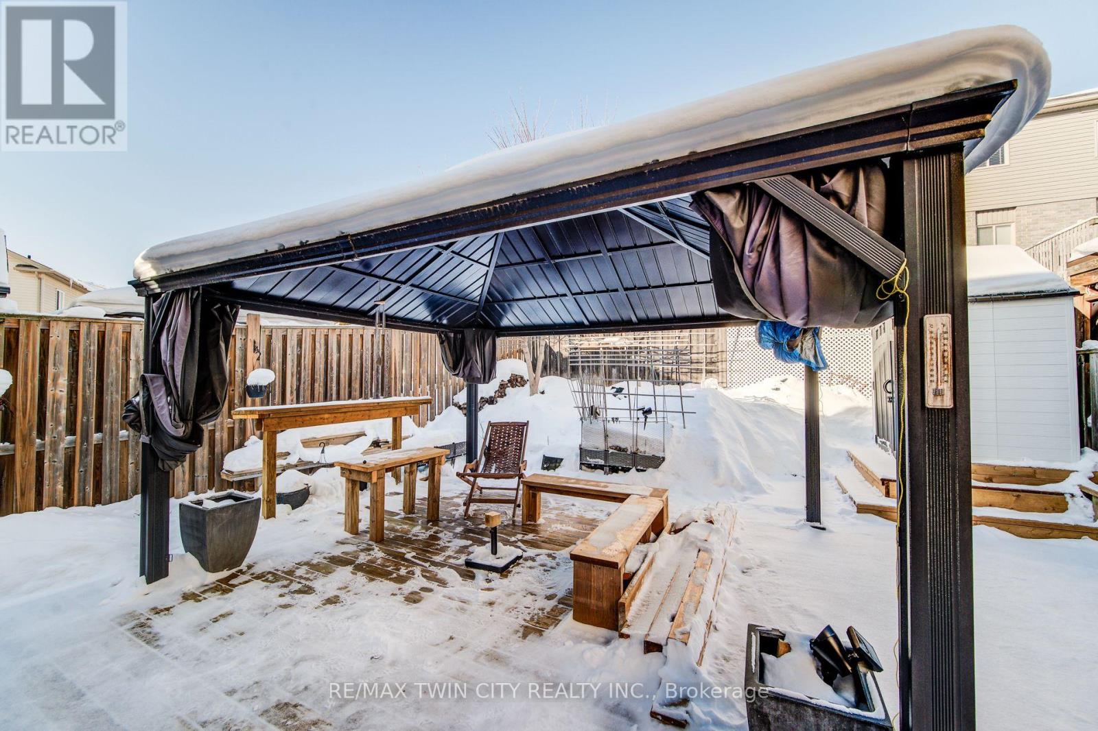 Welcome to this beautifully maintained and spacious 3 bedroom, two-storey open-concept detached family home ideally situated on a fully landscaped and fenced lot in the highly desirable Lackner Woods/Idlewood neighbourhood of Kitchener. Nestled in a family-friendly community, this home offers the perfect blend of comfort, convenience and lifestyle. Enjoy easy access to Highway 401, the Expressway, Fairview Park Mall, grocery stores, excellent schools, Chicopee Ski Hill, restaurants, and countless amenities. Step onto your inviting front porch and take in the scenic views of nearby walking and hiking trails - perfect for the outdoor enthusiasts. The single car garage & double driveway provide ample parking for your vehicles. Inside the carpet-free main floor features a bright and spacious open-concept layout designed for modern family living. The kitchen boasts newer quartz countertops (2025) , abundant cabinetry, a functional island and stainless-steel appliances (fridge, stove, built-in microwave & dishwasher). The adjacent dining area is ideal for family dinners and entertaining guests. The bright family room offers generous space for relaxing with the family or entertaining family or friends. Sliding doors lead to the fully fenced backyard oasis, complete with an extended deck (2021) and gazebo (2022) and a newer outdoor shed (2025) for additional storage - perfect for enjoying outdoor living. Upstairs, you'll find a large primary bedroom featuring double entry doors, private ensuite with an oversized shower, a walk-in closet, & an additional bonus closet for additional storage. Two spacious secondary bedrooms and a 4- piece bathroom complete the upper level. The unspoiled lower level awaits your personal touch and offers endless possibilities for customization. Additional features include central air conditioning, washer and dryer and a newer water softener (2023). Don't miss your opportunity to own this wonderful family home - book your private showing today! (id:64974)