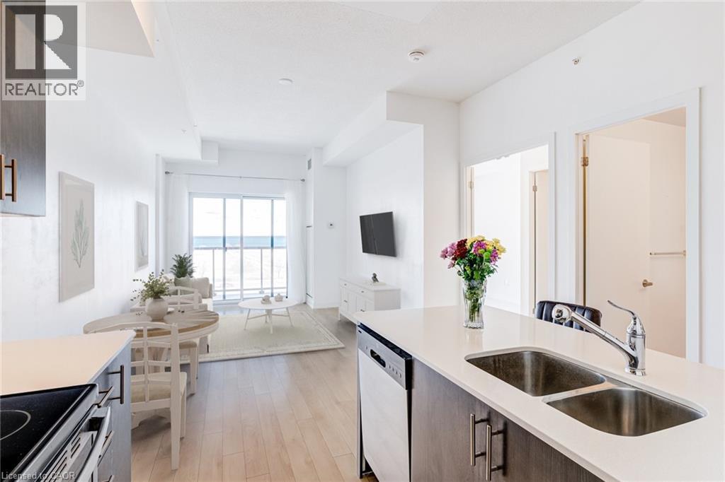 Welcome to Grimsby on the Lake. This move-in ready 1 bedroom plus den unit with an unobstructed view of Lake Ontario has lots of natural light. Features include stainless steel appliances, kitchen island and in-suite washer and dryer. Also included are heated underground parking and one storage locker. Concierge on duty daily. Close to waterfront trails, the Niagara Escarpment, wineries, shopping, Niagara Outlet Mall, restaurants and cafes. schools, place of worship, and library. Quick and easy access to the QEW. (id:64974)