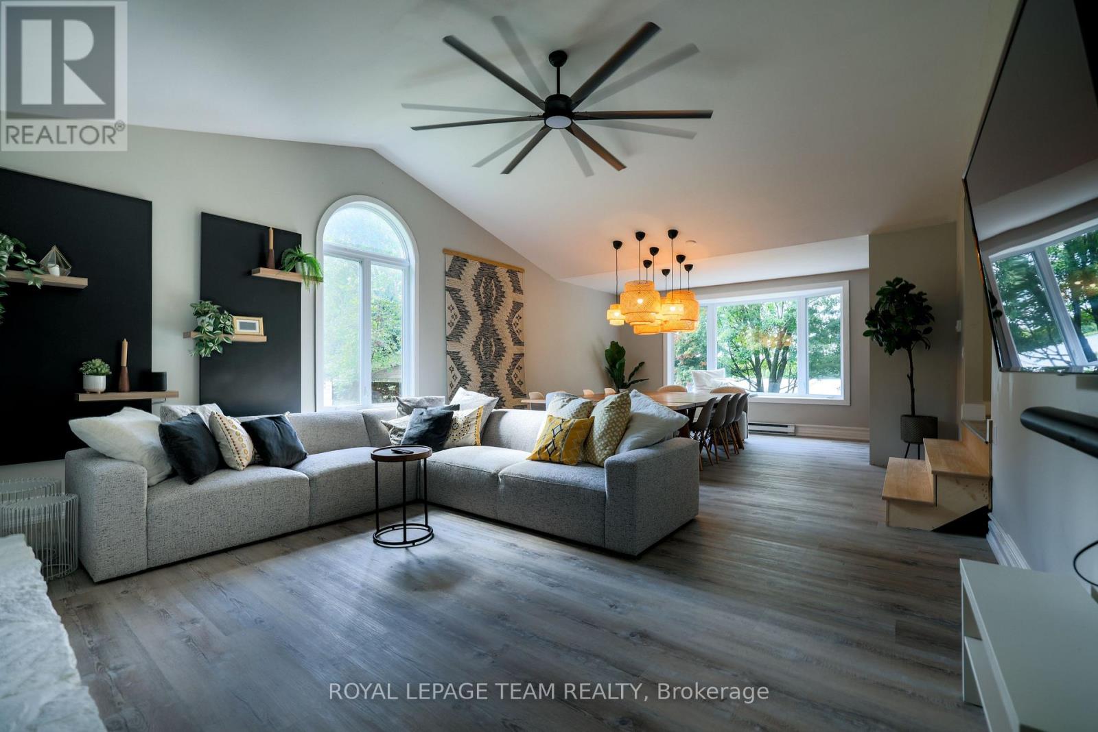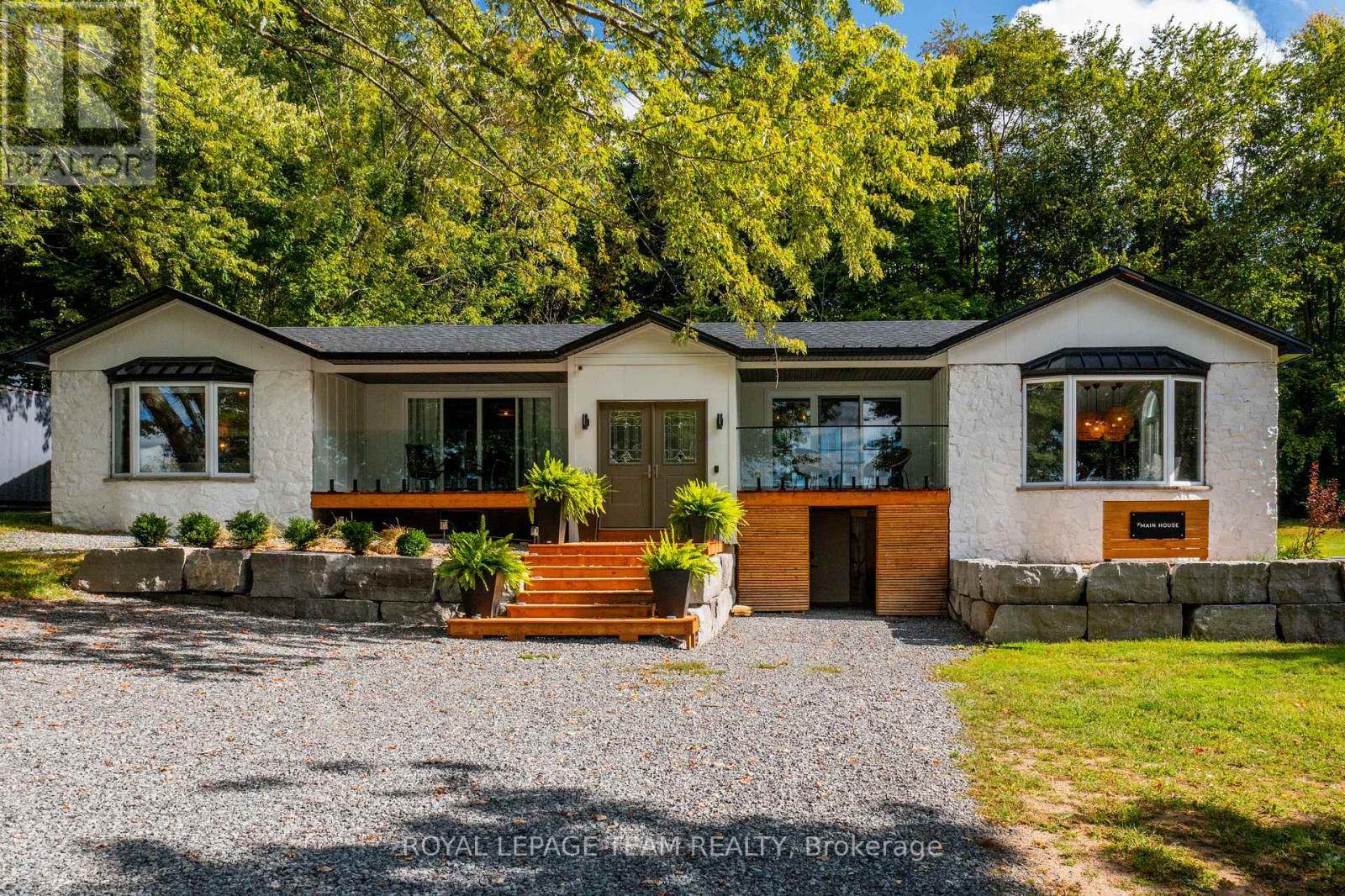 Introducing The West - a rare and captivating waterfront estate set along the highly sought-after shores of Upper Rideau Lake. Spanning over 2.6 acres of level, west-facing land with an impressive 570 feet of pristine shoreline, this remarkable property offers uninterrupted sunset views and a stunning outlook toward the charming village of Westport. Designed for both lifestyle and opportunity, the estate blends refined lakeside living with exceptional income potential. The fully renovated main residence offers over 2,000 square feet of thoughtfully designed space, featuring four spacious bedrooms and two bathrooms, all finished with comfort and style in mind. Complementing the main home are five private two-bedroom lake houses, each complete with its own kitchen and bathroom-ideal for hosting guests, accommodating extended family, or operating a boutique rental experience. A 1,000 sq. ft. garage/workshop adds versatility, while recent upgrades-including a new roof and windows on the main house, along with updated decks and windows on the cabins (2024)-ensure a turnkey transition into ownership. What truly sets this offering apart is its future potential. With valuable grandfathered rights in place, the opportunity exists to expand with three additional lake houses and a waterfront gazebo, allowing you to further elevate the property into a premier lakeside destination. More than a home, The West is a legacy property-an opportunity to create unforgettable experiences, establish a thriving waterfront retreat, and embrace the very best of lakeside living. (id:64974)
