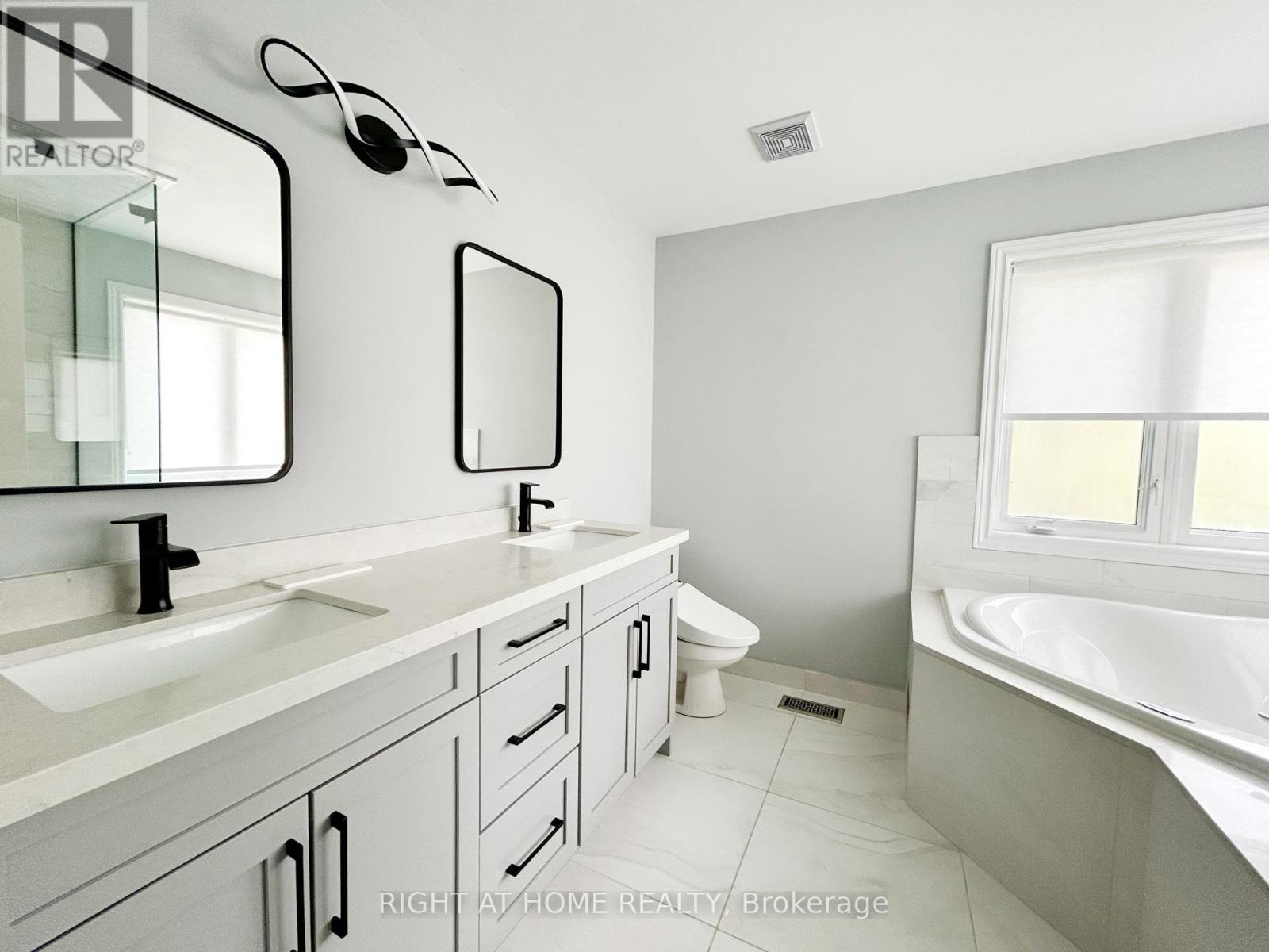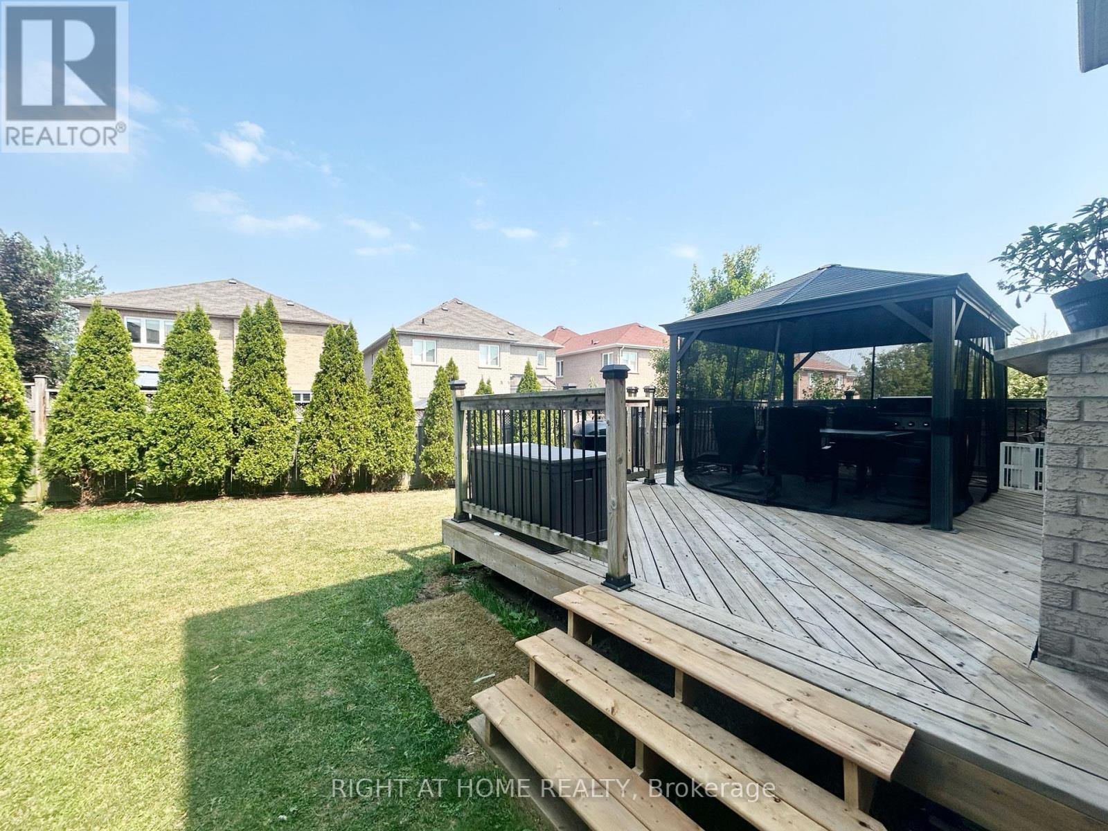 Luxurious and beautifully upgraded 4-bedroom executive home in Mississauga's prestigious Churchill Meadows. Offering timeless elegance with modern functionality, this residence has been freshly painted throughout and showcases premium hardwood floors, a redesigned staircase, and the removal of popcorn ceilings for a bright, contemporary feel. The chef-inspired kitchen features refaced cabinetry with quartz countertops, stainless steel appliances, and a breakfast area with walk-out access to an extra-large private backyard perfect for entertaining or family gatherings. The family room, complete with fireplace, flows seamlessly into formal living and dining areas for effortless hosting. Upstairs, the grand primary retreat boasts dual walk-in closets, a fully renovated spa-like 5-piece ensuite, and a serene sitting area. Each additional bedroom is generously sized with ensuite or semi-ensuite access. Bathrooms throughout the home feature quartz countertops for a cohesive, luxurious touch. The basement, has a separate private entrance, is framed and ready to be completed as an in-law suite or income property much of the expense already done. A rare no-sidewalk lot allows for parking of up to 4 cars on the driveway, in addition to a double garage. Ideally located near top-rated schools (Stephen Lewis SS), parks, Churchill Meadows Community Centre, places of worship, Credit Valley Hospital, shopping, and major highways (403/401/407), this property combines convenience, comfort, and modern upgrades. Truly move-in ready and a rare find in one of Mississauga's most family-friendly neighborhoods. (id:64974)