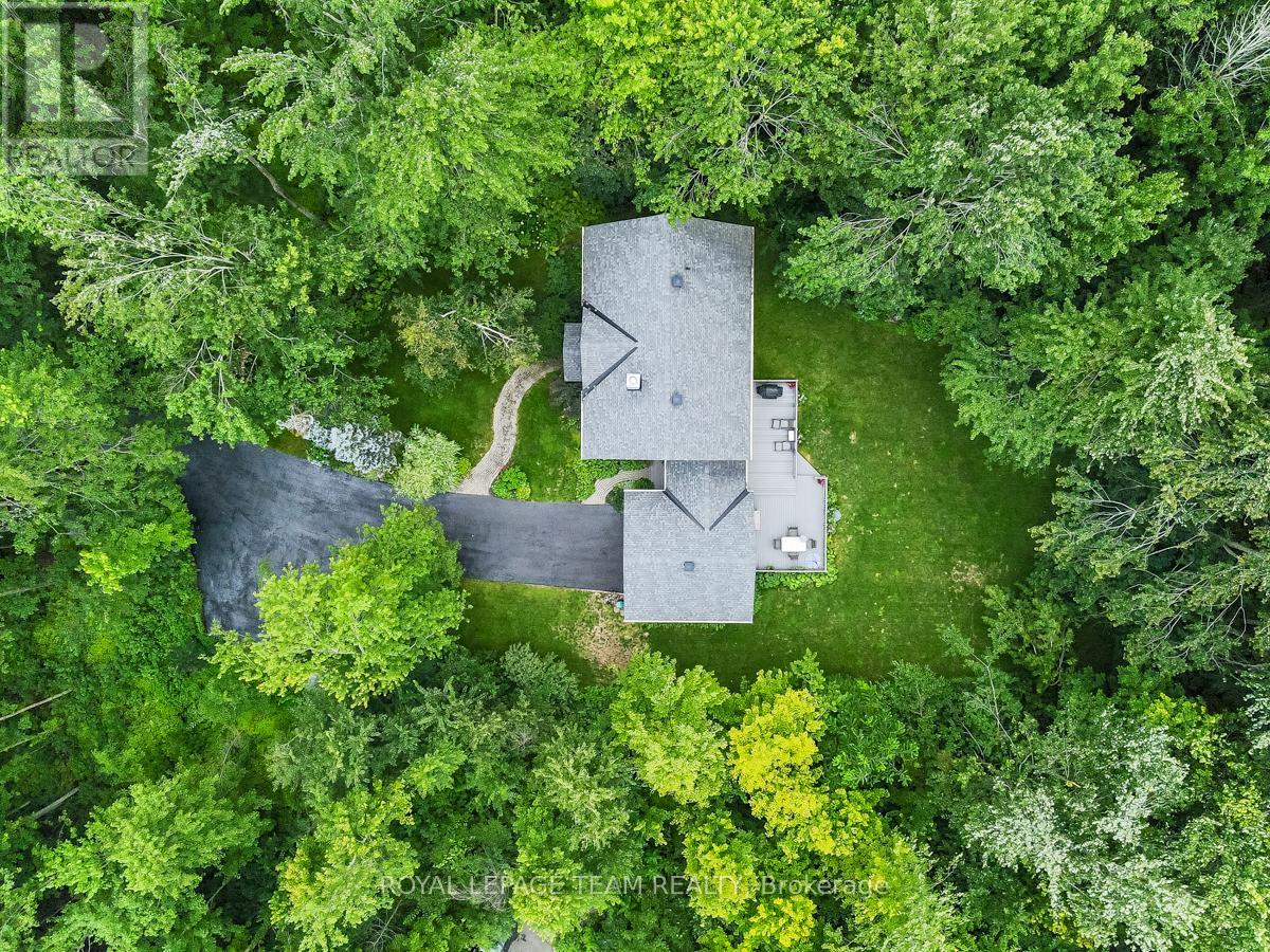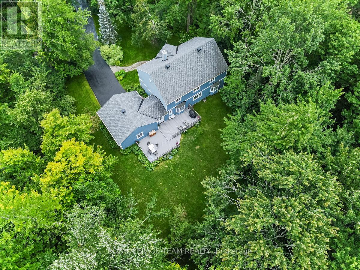 Set within an established subdivision in Manotick South, this well-maintained home is situated on a treed estate lot of just over two acres. Positioned well back from the road, it offers a quiet, private setting just minutes from the Rideau River and the family-oriented amenities of Manotick Village. This energy-efficient, airtight home was designed by Bruce Gough of Energy Building Group and features triple-glazed windows, R40 insulation in the exterior walls, R60 insulation in the attic, and the basement wrapped in R20 styrofoam to ensure excellent thermal performance. Designed with everyday living in mind, the interior offers a thoughtful layout with light-filled rooms, four bedrooms, and four bathrooms. The main floor includes inviting living areas accented by decorative mouldings, a kitchen with quartz countertops, a dedicated laundry room, and a practical family entrance with direct access to the attached two-car garage. A fireplace adds warmth and character to the home, while the finished lower level provides additional versatile space to accommodate a range of uses. On the second level, you will find four generously sized bedrooms and a main bathroom. The primary suite features a walk-in closet and an ensuite bathroom. Outdoors, a spacious, low-maintenance composite deck with a natural gas hookup for a barbecue creates an ideal area for entertaining. Surrounded by mature trees and natural landscaping, this welcoming exterior space offers a quiet and relaxing retreat. (id:64974)