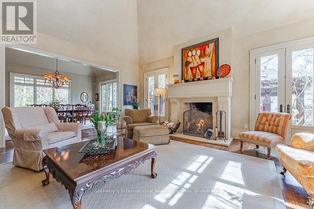This Rattray Park Estate home offers one-floor living at its finest! Steps from the lake, Rattray Marsh, creeks, & trails. The outdoor spaces have been meticulously designed. Mature trees were thoughtfully placed, a striking rock-boulder water feature blends seamlessly into the landscape, pristine gardens showcase carefully selected blooms that fill the property w/stunning seasonal color & fragrance. Pergolas provide quiet shade beneath the trees, beside an outdoor wood-burning fireplace, generous seating areas surrounding the pool & sunken hot tub, & the rear Muskoka rm offers the perfect place to take it all in. Approaching the front, natural stone & Douglas Fir beams beautifully complement the surrounding landscape. The spacious foyer welcomes you w/a large dining room w/garden access on one side & an office w/peaceful garden views on the other. Moving forward, you arrive at the heart of the home. The great room features vaulted ceilings, dramatic stone-surround fireplace w/mantle, 2 sets of double doors leading to the rear gardens, creating a warm & inviting atmosphere. Open to the great room is a chef's dream kitchen w/custom cabinetry, state-of-the-art appliances & a large island offering seating for four, with direct access to the Muskoka rm. The hall off the kitchen features a pantry with wall-to-wall custom cabinetry, built-in freezer & bar. Across the hall is a 3 pc bath w/beautiful decor. The Muskoka rm is a standout feature, complete w/fireplace & ample space for both a lounge area & harvest table casual dining. Private double doors lead to a spacious primary bedroom w/garden views, Muskoka rm access, a large walk-in closet w/built-ins, & a spa-inspired 5-piece ensuite. The second level offers 2 generous bedrooms & a 5-piece bath. The lower level features a games room (easily converted into two large bedrooms), a recreation room with fireplace, gym, den & 4-piece bath. Nothing to do but move in! Games rm could be 2 lrg bdrms making this a 3+2 bdrm home (id:64974)