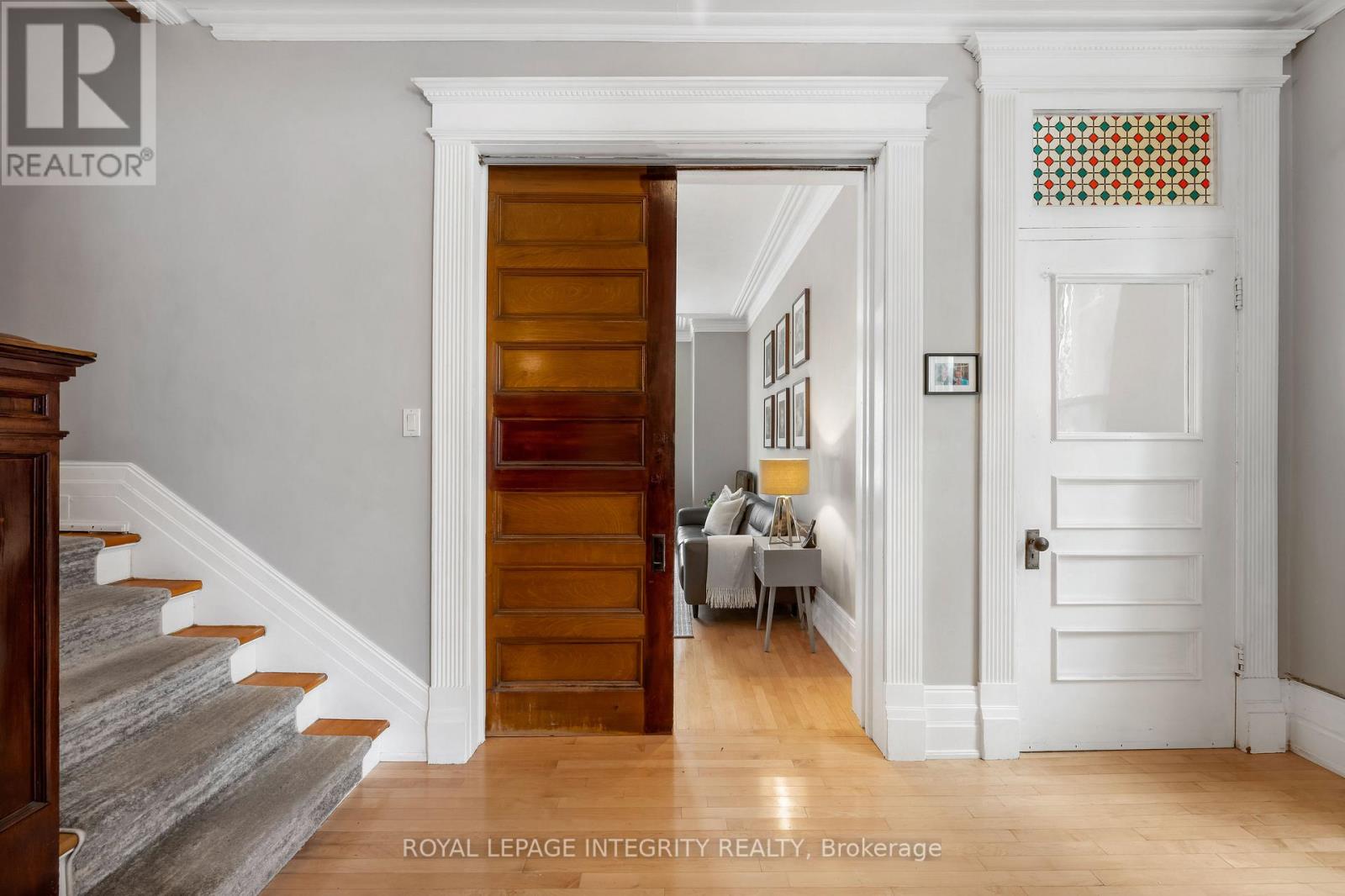 Welcome to 553 Gilmour Street, a rare & remarkable 6-bed, 2.5-bath home in the heart of Centretown, combining timeless charm w/ generous living spaces across 3 beautifully appointed levels. From the moment you step into the expansive foyer, this home sets a memorable tone. To one side, a grand living room welcomes you w/ soaring ceilings, a large picture window framing the charming streetscape & a cozy gas fireplace.Across the hall, the formal dining room offers an impressively sized space, truly a host's dream! The spacious kitchen features SS appliances, abundant cabinetry & ample counter space for cooking and entertaining. Just off the kitchen, a second set of stairs provides additional access to the upper level. The rear of the home features a mudroom, adding everyday convenience with direct access to the backyard & parking.Beneath the main staircase is a charming, multi-purpose nook, perfect for outerwear storage or a cozy reading corner. Upstairs, the 2nd floor offers 3 generously sized bedrooms (one w/ a private balcony!), each filled with natural light from the home's beautiful windows. An updated 3-piece bathroom completes this level. The 3rd level truly elevates the home's character, w/ stunning hardwood floors & charming architectural lines. Here, you'll find two additional bdrms, incl. the primary suite, complete w/ a spacious walk-in closet. A beautifully renovated 4-piece bath, ft. dual sinks, a freestanding tub & a large walk-in shower. The finished basement provides valuable additional living space, perfect as a family room, or flex space. Outside, the private backyard offers a quiet escape ideal for summer gatherings or simply relaxing. Situated moments fromOttawa's most vibrant neighbourhoods and countless shops & restaurants, this location offers unmatched walkability. A truly rare opportunity to own a grand, character-filled home in one of Ottawa's most well-connected communities. (id:64974)