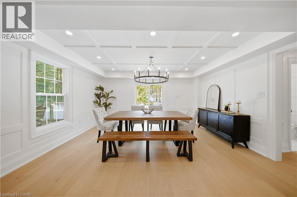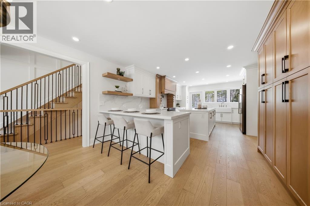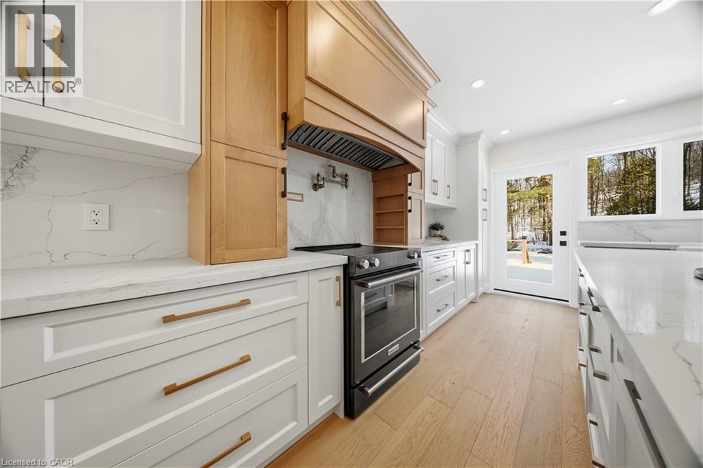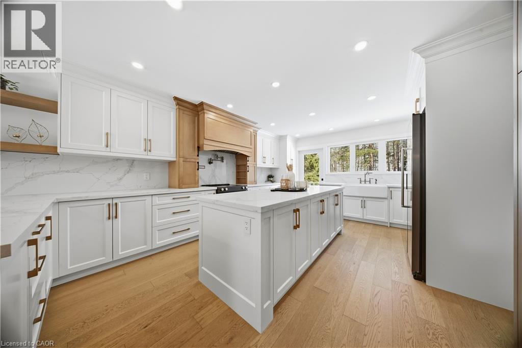 Welcome to this exceptional 5-bedroom estate offering over 6,000 sq. ft. of total refined living space, perfectly positioned on a breathtaking 3/4 acre property backing onto forest for ultimate privacy and serenity. Set well back from the road, this impressive residence delivers a true estate-like presence with a long approach and captivating natural surroundings. Inside, luxury and craftsmanship are showcased at every turn. The stunning chef’s kitchen is a true showpiece, complete with quartz countertops, an oversized island, pot fillers, built-in refrigeration drawers, premium appliances, and custom cabinetry designed for both beauty and function. Ideal for entertaining, the expansive principal rooms flow seamlessly together, enhanced by elegant wall paneling, designer lighting, and an abundance of pot lights that create a warm yet sophisticated ambiance. The spacious bedrooms offer comfort and retreat, each featuring custom walk-in closets, while the primary suite elevates everyday living with spa-inspired finishes and elevated detailing. Every bathroom is appointed with heated floors, delivering everyday comfort and a true spa-like experience throughout the home. The exterior glass railings, and countless high-end upgrades throughout reflect thoughtful design and uncompromising quality. Adding to the home’s charm and exclusivity, a picturesque creek with a tranquil pond runs across the front of the property, enhancing the natural beauty of the setting. Backing onto lush forest, this private oasis provides stunning views from every window. A seamless connection between indoor luxury and outdoor serenity. Cozy yet grand, elegant yet inviting, this is a rare opportunity to own a remarkable estate property where refined living meets breathtaking nature. Come and fall in love. (id:64974)