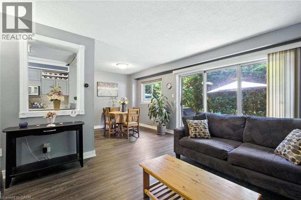 Welcome to 554 Pinedale Avenue—a charming 3-bedroom END UNIT townhome with Rare DRIVEWAY PARKING for 2 CARS nestled amongst mature trees in a high-demand, family-friendly neighbourhood in south-east Burlington. Enjoy added privacy with neighbours on only one side. Inside, natural light streams through the large living room window & patio doors, offering a lovely view of the very private and quaint tree-lined patio with access to side yard common area - a perfect space for relaxing or entertaining, complete with a gas line for your BBQ. Large kitchen provides abundant cupboard space and additional pantry cupboard. Thoughtful updates include newer flooring on the main level, along with updated cabinetry and lighting in the bathrooms. Additional living space in the basement includes a family room, office space, laundry, and ample storage. Spacious garage includes workbenches, and don’t miss the separate convenient outdoor storage closet for recycling and garbage bins. All this in a fantastic location close to parks, trails, schools, transit, and shopping. (id:64974)
