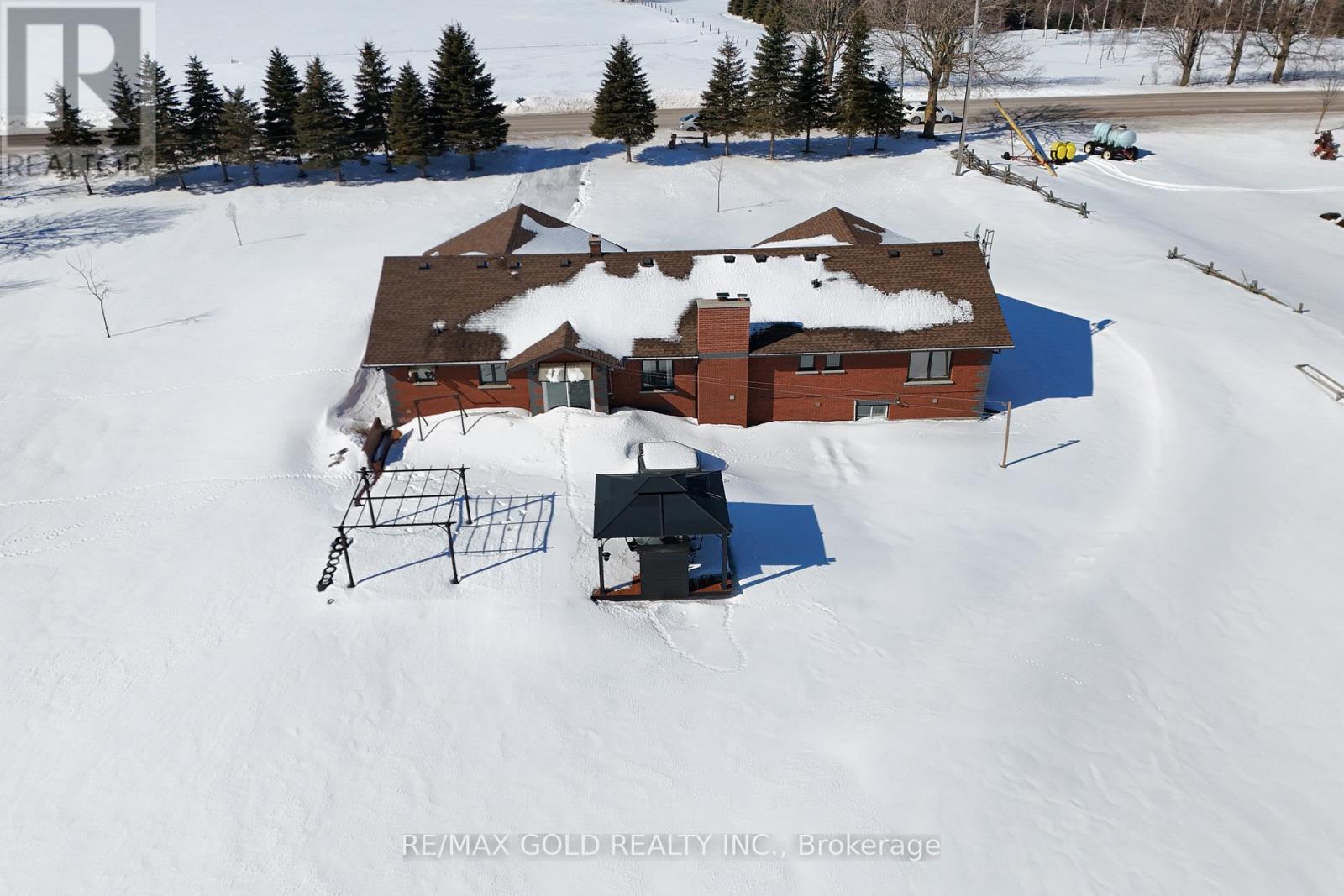 Stunning 3+1 Bedroom Bungalow on 2 Scenic Acres with Pool, Workshop & In-Law Potential Experience the best of country living just minutes from Orangeville and Shelburne. This beautifully maintained 3+1 bedroom, 3-bath bungalow sits on a picturesque 2-acre lot, offering privacy, space, and exceptional versatility. Step inside to a bright open-concept living and dining area featuring gleaming hardwood floors and a cozy fireplace perfect for entertaining or relaxing evenings at home. The updated eat-in kitchen boasts granite countertops, stainless steel appliances, and a walkout to your private backyard retreat. Outdoors, enjoy a spectacular multi-level deck designed for both entertaining and everyday living. Soak in the hot tub, host summer BBQs, relax under the gazebo, or spend sunny afternoons by the heated in-ground pool surrounded by manicured landscaping and open green space. The fully finished lower level offers incredible flexibility with a spacious rec room, fourth bedroom, and full bath ideal for guests, extended family, or in-law suite potential. Car enthusiasts and hobbyists will appreciate the impressive detached workshop with two roll-up garage doors. Additional sheds and a fenced garden provide even more functionality and storage. A rare opportunity to own a move-in ready country property that perfectly balances lifestyle, comfort, and convenience. (id:64974)