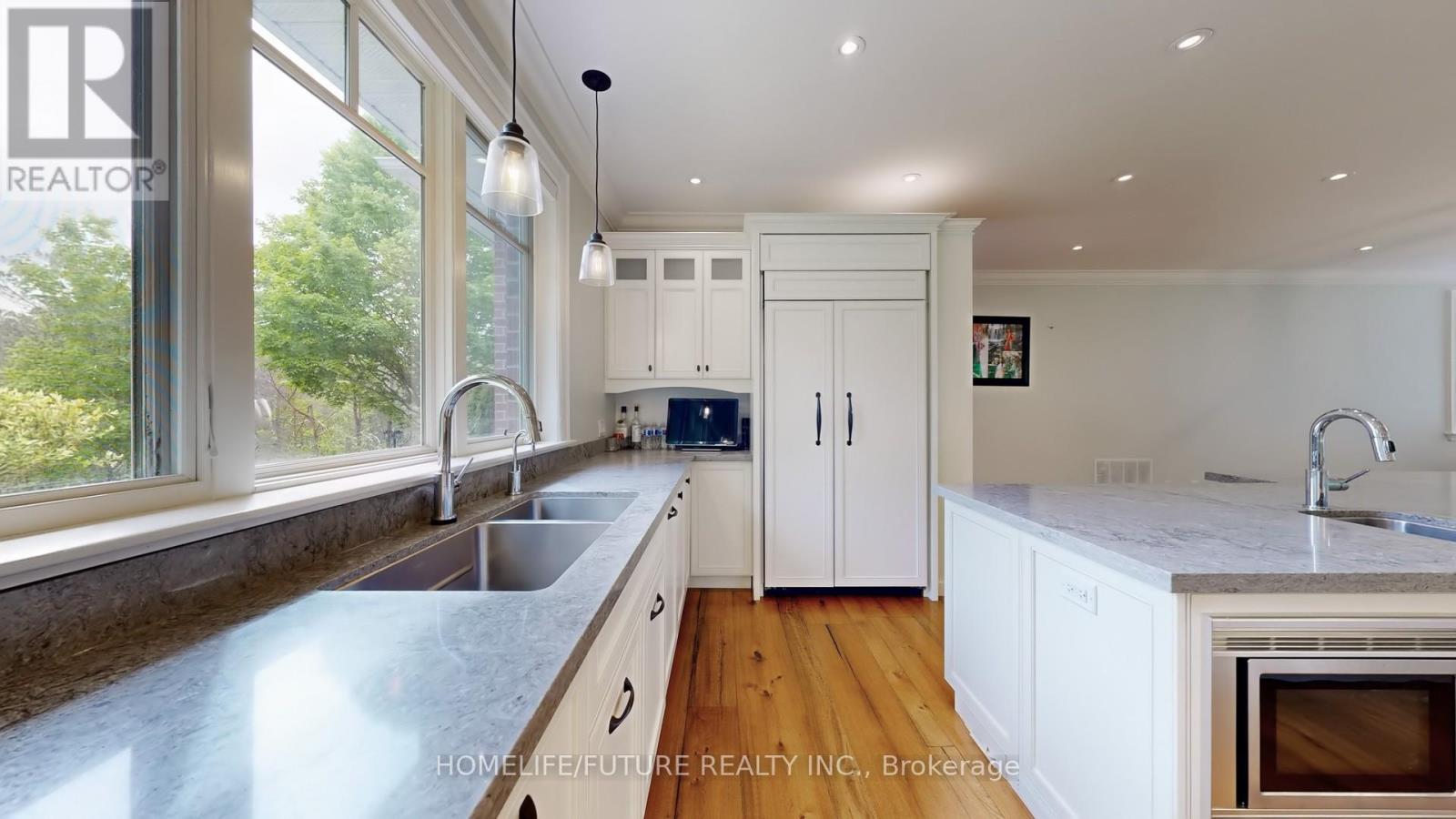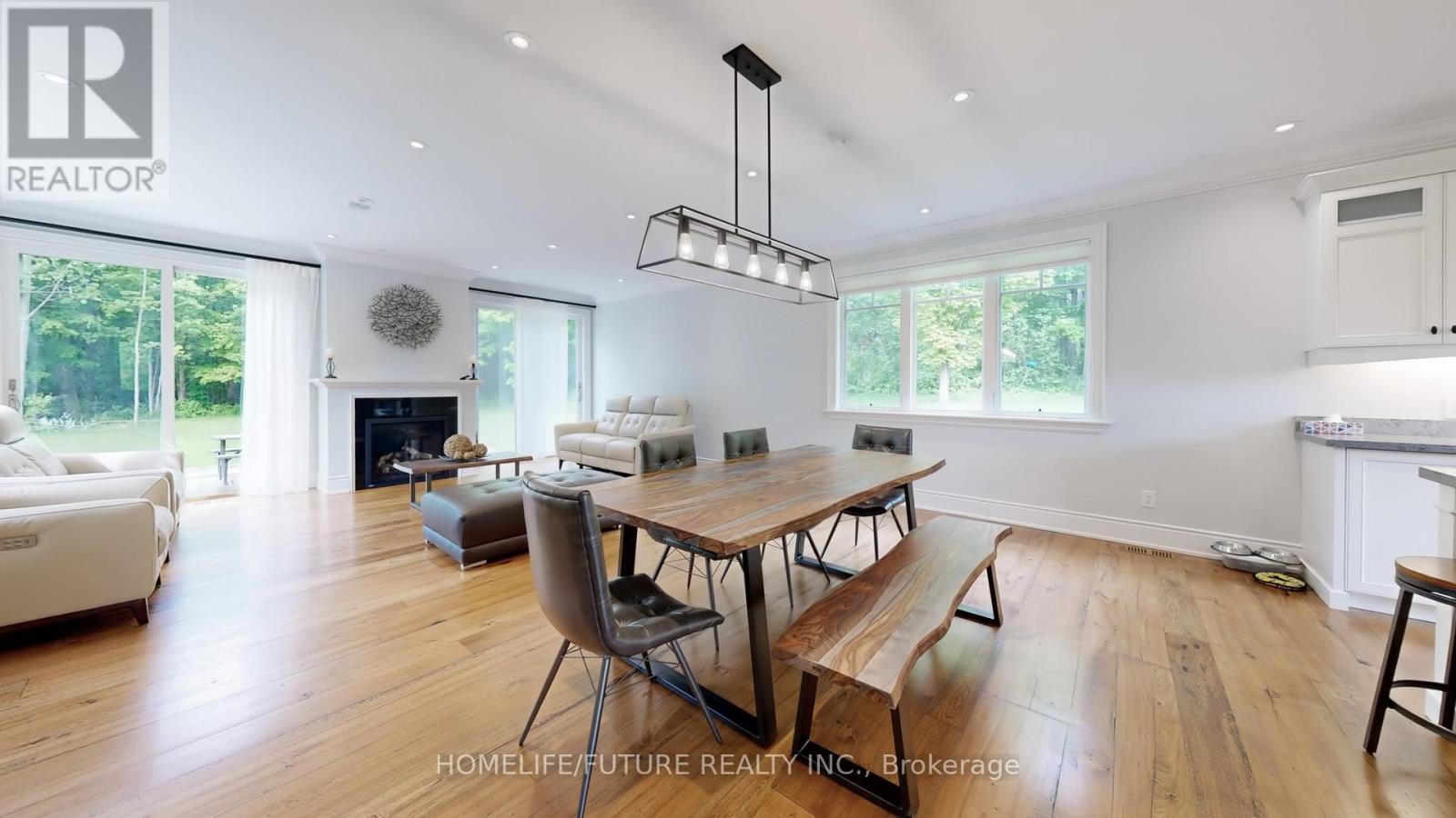 Welcome To Your Private Woodland Oasis, This Beautifully Renovated Home With A Spacious Extended Driveway Offers 11 Parking Spaces, Ideal For Hosting Family And Friends. Step Inside To Discover A Cozy Family Room Complete With A Fireplace And Serene Views Of The Backyard. Pot Lights Throughout The Main Level Add Warmth And Modern Flair. The Heart Of The Home Is The Open-Concept Chefs Kitchen, Featuring A Large Center Island, High-End Finishes, And A Seamless Flow Into The Dining And Family Rooms, All Overlooking A Stone Patio And Stunning Forest Views. Upstairs, You'll Find Spacious Bedrooms, Each Filled With Natural Light Through Large Windows. The Home Features Wide Plank Elm Floors And Modern Bathrooms, Designed For Both Comfort And Style. A Nanny Or Teenage Suite On The Ground Floor Offers Flexible Living Arrangements, While The Lower Level Includes A Second Family Room Perfect For Entertaining Or Relaxing. An Oversized Mudroom With A Separate Entrance And Ample Storage Adds Everyday Convenience. The Grounds Are Beautifully Landscaped. (id:64974)