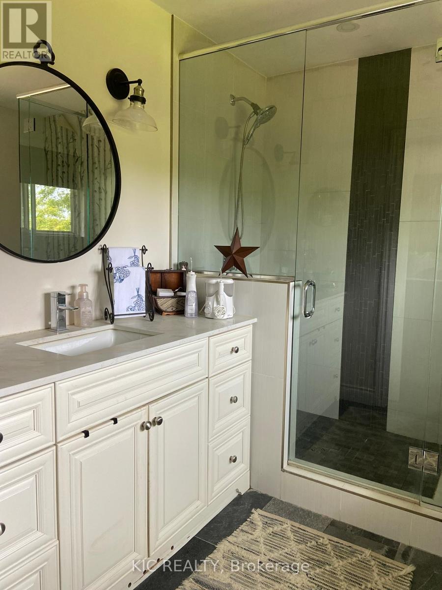 Welcome to your private country paradise set on 103.78 acres of picturesque countryside, nestled on a quiet cul-de-sac. This beautifully renovated 3-bedroom home offers the perfect blend of modern comfort, natural beauty, and exceptional potential. Extensively updated with the upper level completed in 2018 and the lower level in 2023, the home features engineered hardwood flooring on the main level and quality laminate on the lower level. The bright, open-concept layout is highlighted by a modern kitchen with quartz countertops, stainless steel appliances, and a spacious dining area that flows seamlessly into the inviting living room with a propane fireplace (2022).Step outside through glass patio doors to expansive decks, a stamped concrete patio, and professionally landscaped gardens complete with large limestone accents, a firepit, water feature, and hot tub (2019), creating an ideal space for entertaining or relaxing in a serene setting. The attached garage has been thoughtfully converted into a versatile family/entertaining space, featuring a WETT-certified wood stove and overhead heaters for year-round enjoyment. The primary suite offers a generous walk-in closet with convenient in-suite laundry and a well-appointed 4-piece ensuite .Additional features include a propane furnace (2020), updated shingles (2014), and a paved driveway (2022).The property offers approximately 70 acres of workable farmland, 5 acres of wooded area, two ponds, and a large cleared section suitable for a future shop, barn, or hobby farm use. A Rogers communication tower provides approximately $12,000 in annual income. This exceptional property presents a rare opportunity to enjoy peaceful rural living with income potential and future possibilities. Cell tower brings in $12k annually contract for 25 years, view it up road from home to green gates (id:64974)