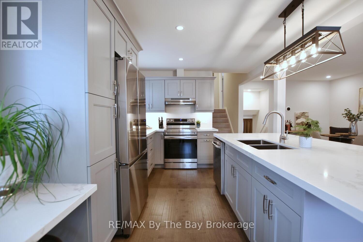 Welcome to this fully renovated (2021) Collingwood home featuring a self-contained , legal one-bedroom apartment-an incredible opportunity for income potential, multi-generational living, or private guest suite.The legal apartment offers its own separate living space with an open-concept kitchen and living room, complete with stainless steel appliances, an electric fireplace, and in-suite laundry. The bright bedroom features a large window, and the 3-piece bathroom includes a separate shower-providing comfort, privacy, and a true independence from the main home.The main residence has been beautifully updated and showcases a modern open-concept with an upscale Kitchen featuring quartz countertops, stainless steel appliances , and a large centre island perfect for entertaining. This space flows seamlessly into the living an dining areas, creating a warm, and inviting atmosphere, The main home includes two bedrooms, a full bathroom, convenient laundry, and a finished lower-level rec room with a 2-piece bath-ideal for additional living space, a home office or media room.Located close to scenic trails and just a short drive to Blue Mountain or beautiful Main street of Collingwood, this property offers the perfect blend of lifestyle and investment.Additional features include upgraded windows, a gas furnace, and central air conditioning for year round comfort. Shingles 2021 (id:64974)