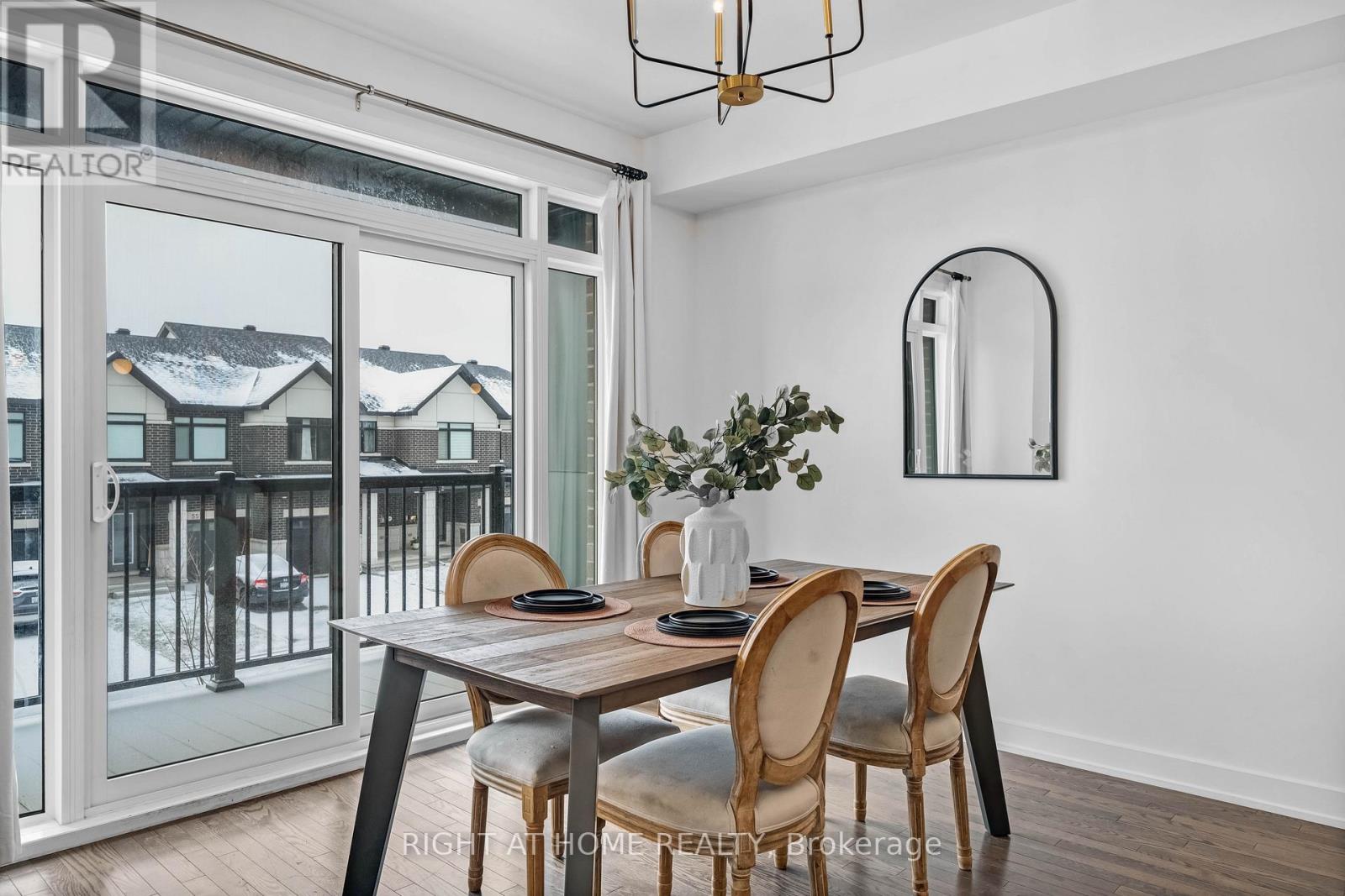 ***OPEN HOUSE SUNDAY APRIL 12TH 2-4 P.M*** Vacant and ready to move in Modern End-Unit Townhome in Sought-After Findlay Creek!Welcome to this stunning December 2023-built, 3-storey end unit located in the vibrant and growing community of Findlay Creek! This bright and spacious home features 2 generously sized bedrooms, including a primary suite with a private ensuite, plus an additional full bathroom and convenient powder room.The second level living and dining area with a sleek modern fireplace, boasts beautiful hardwood flooring and a modern open-concept layout, perfect for entertaining. Enjoy a sleek kitchen with quartz countertops throughout, upgraded cabinetry, and plenty of space for cooking and hosting. Large windows on every level flood the home with natural light thanks to its end unit location.Additional highlights include a single-car garage with automatic garage door opener, plenty of storage, and the peace of mind that comes with full Tarion warranty coverage. Located close to top-rated schools, parks, shopping, and with even more major amenities on the way, this is an ideal opportunity for homeowners and investors alike. Don't miss out on this incredible home in one of Ottawa's most desirable neighbourhoods! (id:64974)