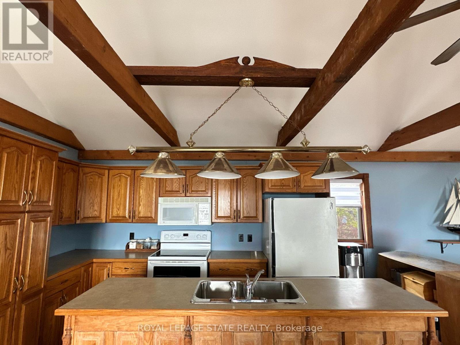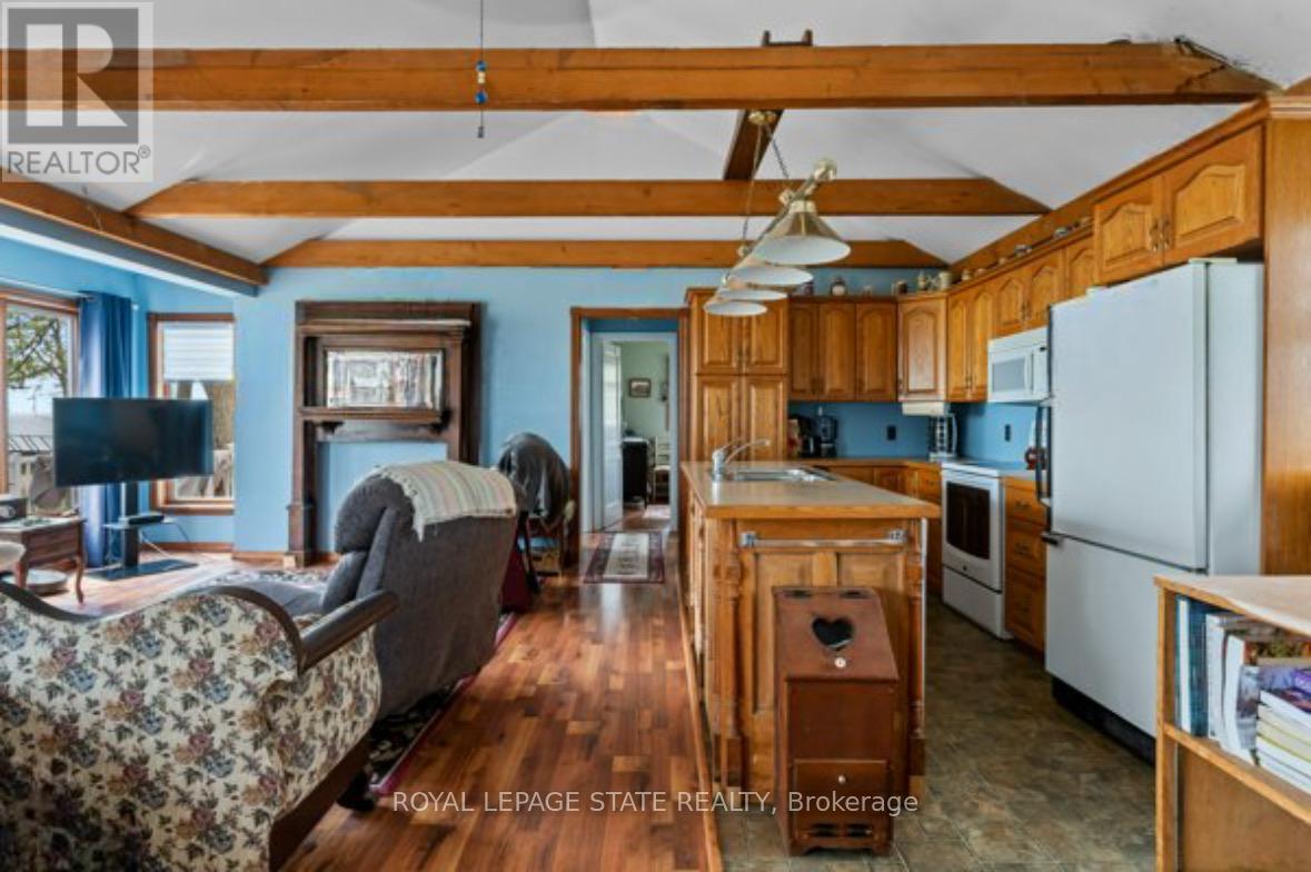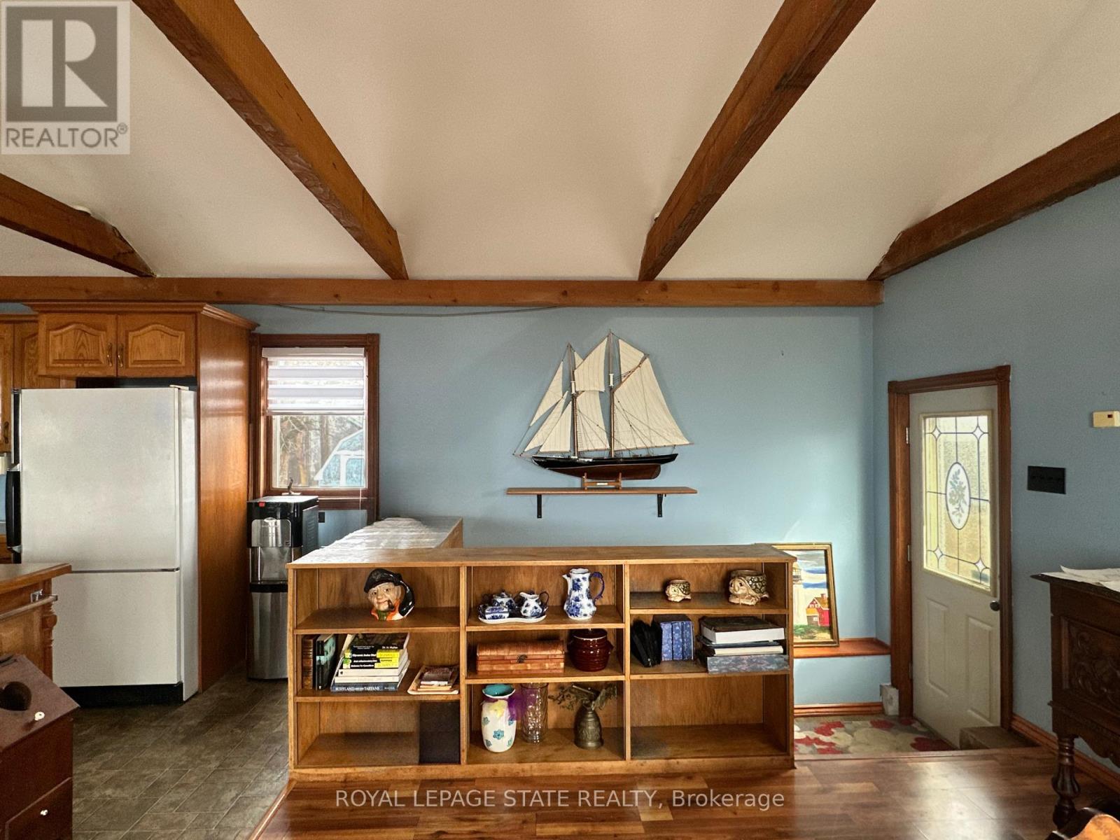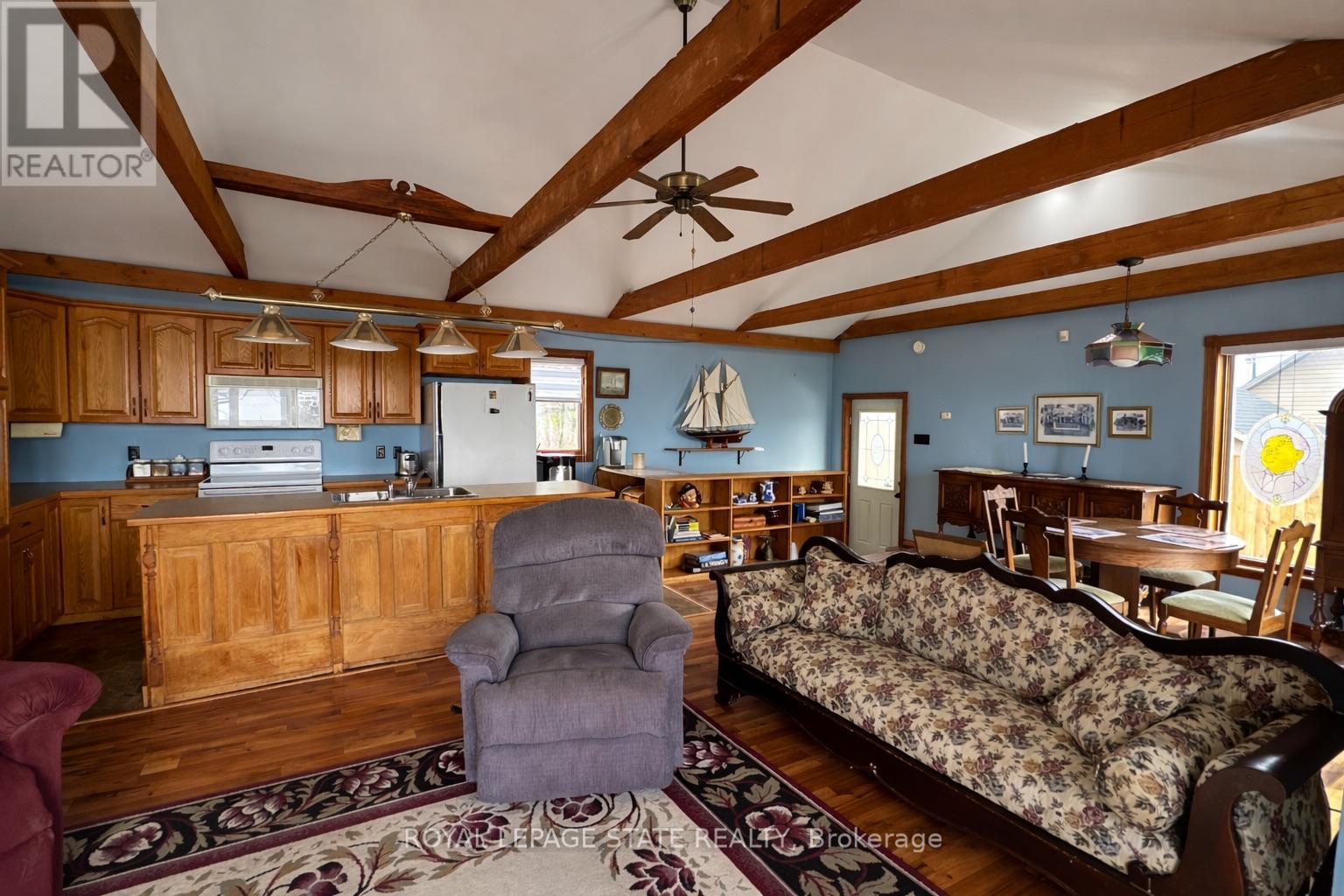 Waterfront retreat on a quiet road owning the north and south (waterside) of the road. This year-round 2-bedroom home offers the perfect blend of relaxation and recreation, featuring just over 70 feet of Lake Erie water frontage and 2022 Wilkinson built break wall, plus a natural sand and pebble beach for endless summer enjoyment. Step inside to a bright, open-concept living/dining/kitchen space highlighted by vaulted, beamed ceilings and a wall of windows showcasing lake views and awesome sunsets. The inviting layout is ideal for both everyday living and entertaining. The home includes a basement (1992) providing ample storage space and development potential, while the expansive deck is perfect for morning coffee or hosting family and friends against a beautiful waterfront backdrop. Plenty of driveway parking accommodates all your vehicles and recreational toys. Additional updates include roof shingles and the added peace of mind of a backup generator. A rare opportunity to own a lakeside escape-perfect as a year-round residence or weekend getaway! (id:64974)