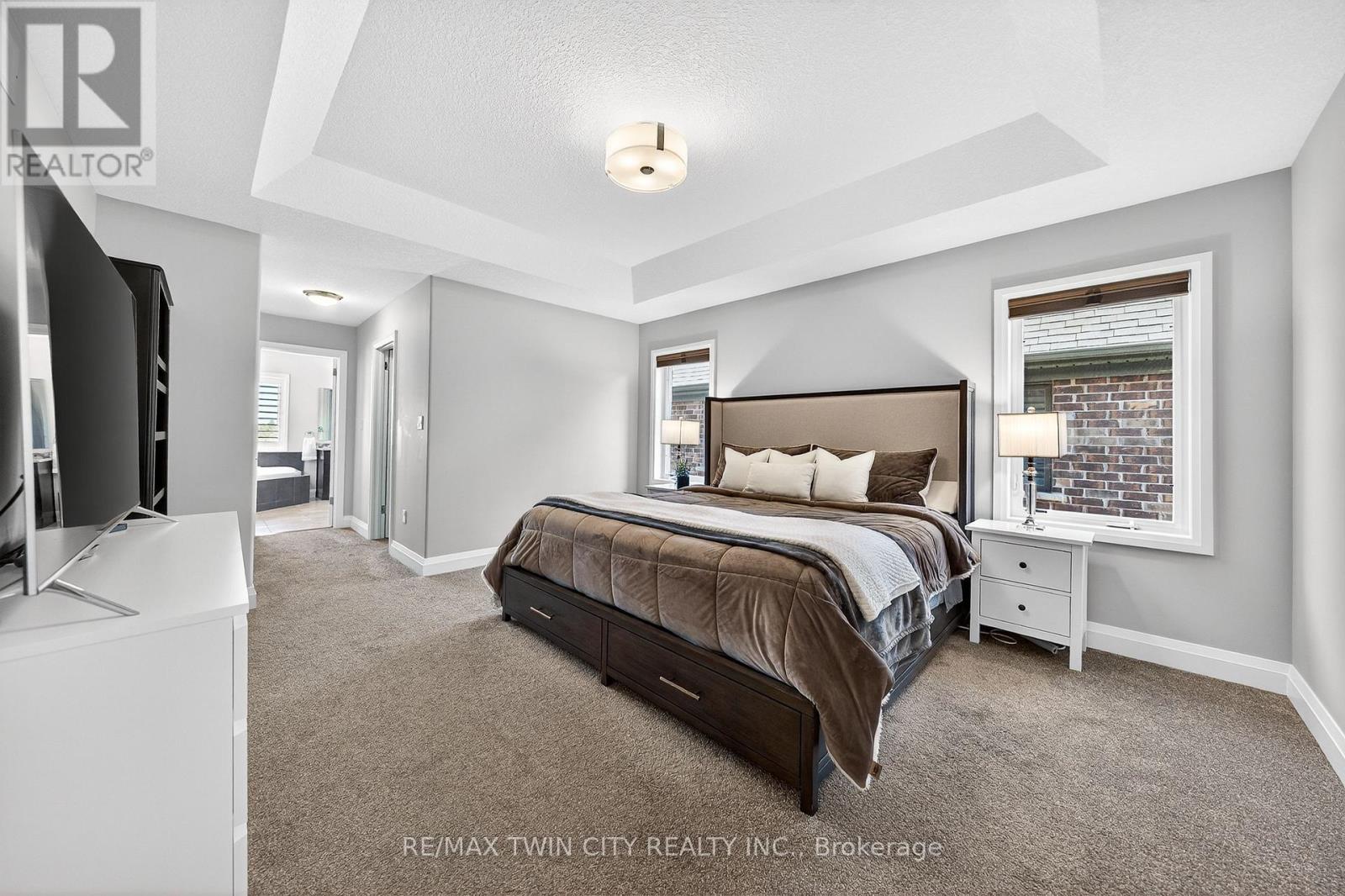 This is your Carriage Crossing dream home. Nestled in one of Waterloo's most prestigious neighbourhoods, this stunning custom-built executive home is loaded with upgrades & designer finishes throughout. Offering 3+1 bedrms, 4 bathrms, & 3,860+ SF of finished living space, this impressive home provides exceptional space for family living & entertaining. The bright open-concept main level is highlighted by a stunning 2-storey great rm featuring a gas fireplace & expansive windows that fill the space with natural light. The modern kitchen offers decorative transom windows, quartz counters & backsplash, premium appliances, a lrg centre island, & an oversized walk-in pantry with convenient garage access. The kitchen flows seamlessly into the integrated dining area, where sliding doors lead to the backyard & patio-perfect for indoor-outdoor entertaining. The main level is completed by a 2-pc bathrm & a functional mudrm/laundry rm. Upstairs features 3 spacious bedrms including a luxurious primary suite with double door entry, tray ceiling, dual closets including a walk-in closet with custom built-ins, & a spa-like 5-pc ensuite with tiled glass shower, dual vanities, & whirlpool tub. The upper level also offers two additional sizable bedrooms, & a 5-pc main bathrm with tub/shower combo & versatile loft space-ideal for a play area, home office, or lounge. The fully finished lower level provides even more living space with a lrg rec rm/home gym, additional bedrm, 3-pc bathrm, home office niche, & plenty of storage. Outside is equally impressive-fully landscaped with interlocking driveway, fully fenced backyard with patio, & beautiful green space views. Located in the highly sought-after Carriage Crossing community close to top-rated schools, major employers, universities, RIM Park, Grey Silo Golf Club, the Walter Bean Trail, St. Jacobs Farmers' Market, & all popular amenities. Enjoy quick & convenient HWY access while living in one of Waterloo's most desirable neighbourhoods. (id:64974)