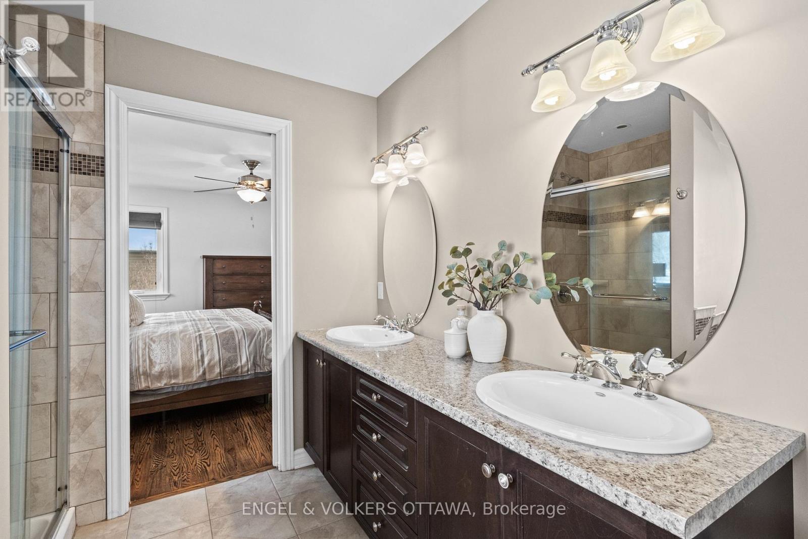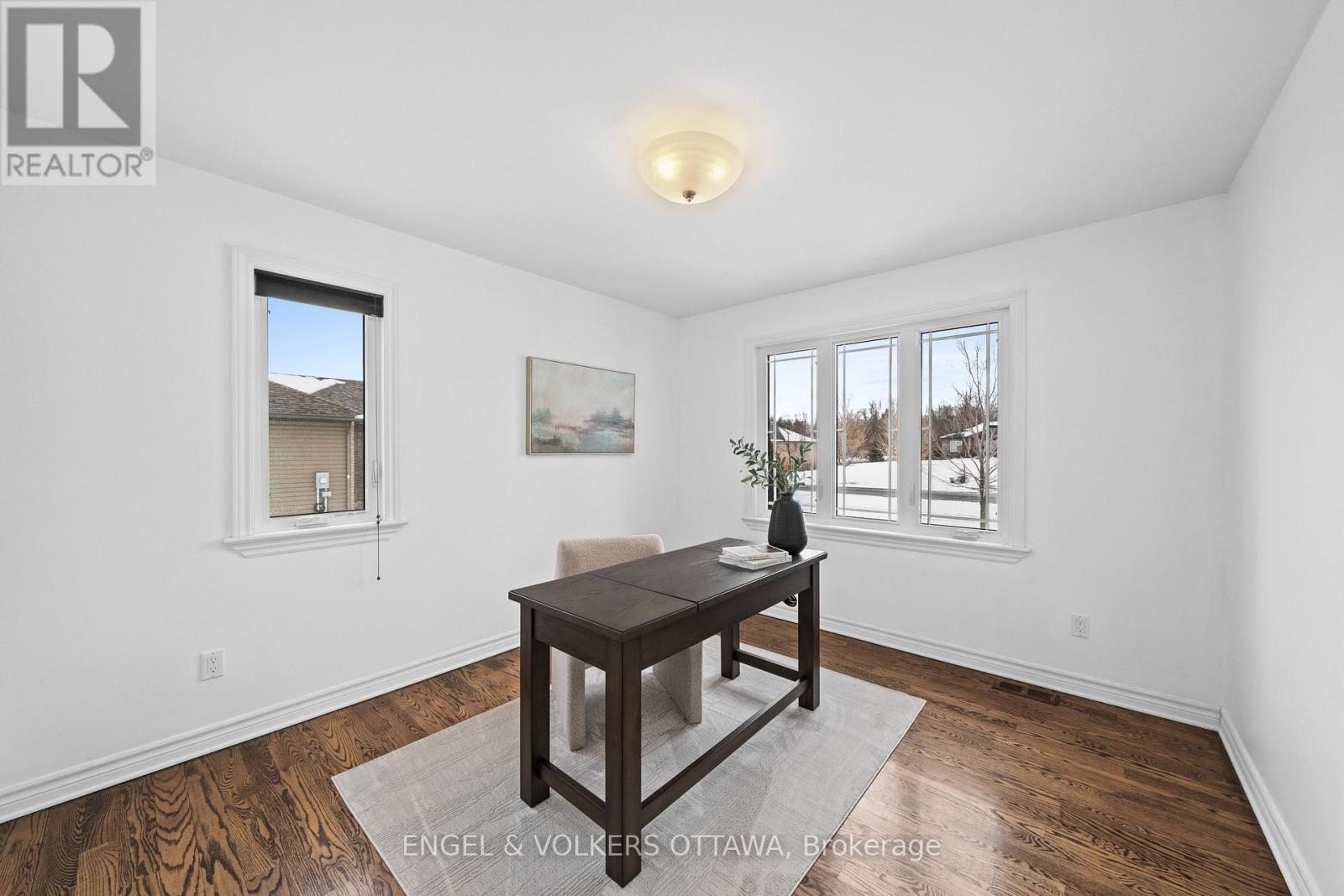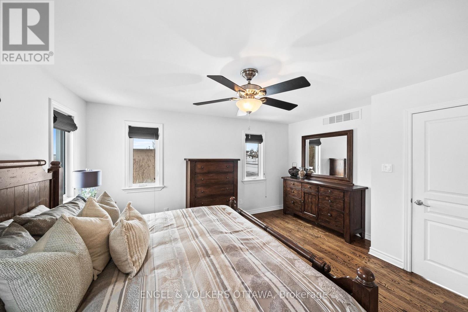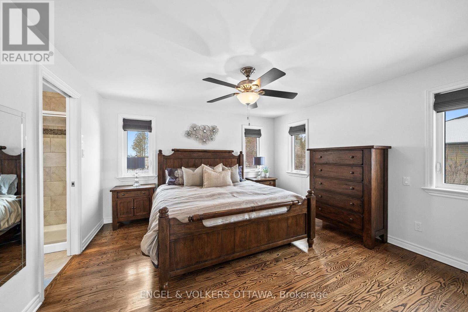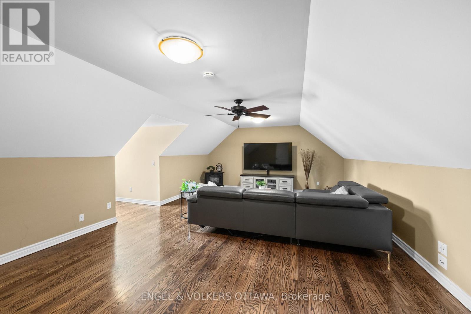 Welcome to this exceptional custom Ian Drew home, perfectly positioned on an exclusive cul-de-sac with no rear neighbours, offering privacy and refined living. Impeccably maintained, the property features elegant front landscaping with a stone walkway, raised garden beds, and an oversized paved driveway with additional side parking. Designed for elevated outdoor living, the impressive 30' x 16' covered rear deck showcases a vaulted cedar ceiling and low-maintenance composite decking, an ideal space for entertaining or relaxing in total privacy. The backyard also includes a premium storage/work shed and a RainBird 9-zone irrigation system. Inside, 9-foot ceilings enhance the open-concept living, dining, and kitchen areas, complemented by hardwood floors, granite countertops, and a cozy gas fireplace anchoring the space. The primary suite offers a spacious walk-in closet and a luxurious ensuite with a walk-in shower and soaker tub. Two additional bedrooms, one featuring a vaulted ceiling, are serviced by a full bath, while the main level is completed by a laundry/mudroom and powder room. A versatile loft provides the perfect space for a media room, home office, or additional lounge area. The lower level provides a wide-open canvas, whether for recreation, fitness, or future finishing. The oversized 3-car garage is insulated and drywalled, featuring a full rear garage door for backyard access and hot/cold water taps. Extensive mechanical upgrades include a Kinetico water system, updated hot water tank and pressure tank, and a fully serviced system with recent water testing available. A GenerLink 240V connection offers whole-home generator capability. A rare offering combining quality craftsmanship, thoughtful design, and upscale features, tailored for the most discerning buyer. Walking distance to Foodland, No Go Coffee, Red Dot Cafe and the Osgoode Link Pathway, a trail over 20 km long, connecting Osgoode to Leitrim Road and the new LRT station. (id:64974)