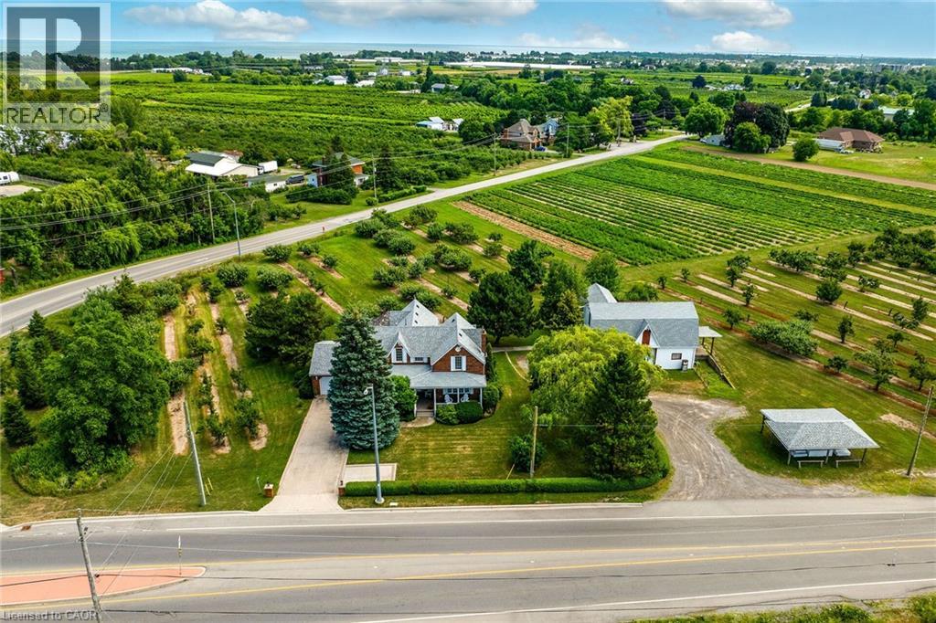 Desirable 9.14 acre multi-purpose rural property located on the eastern outskirts of Beamsville in the heart of Niagara renowned & world famous wine region - offering close proximity to Grimsby, Jordon, St. Catharines, Niagara Falls & QEW w/several award winning Wineries literally down the road. Positioned proudly on this large parcel is 1890 built century home, totally gutted to studs & re-built in 1990 + 1949 built 1440sf versatile barn/shop reflecting pride of lengthy ownership enjoying 2 road frontages -surrounded w/8 acres of tender fruit orchards & fertile vegetable soil. Follow King St E & take round-about into triple car concrete driveway - leads to quaint covered porch providing stately access to this lovingly cared for home introducing 2774sf of timeless décor highlighted w/ornate mouldings & original wood work. Ftrs grand front foyer entering central vestibule incs multiple French doors accessing formal dining room, living room enhanced w/picture window & n/g fireplace, sunken family room incs patio door WO & 2pc bath - continues to “country sized” kitchen incs roomy dinette - completed w/convenient MF laundry room, 4pc bath & direct entry to attached 1.5 car garage incs staircase to 1188sf unfinished basement. Classic period wood staircase ascends to spacious upper level opulent hallway offering entry to elegant primary bedroom w/private 14x14 balcony walk-out, 2 additional bedrooms & lavish 4pc bath. Gleaming hardwood flooring, coved ceiling & multiple walk-outs to impressive paver stone pavilion entertainment court yard compliment the home w/distinguished flair. Separate driveway leads to solid post & beam built barn boasting 3 roll-up doors, concrete flooring, hydro, produce cooler (not operational), 2nd bay & full functional loft. Extras: roof-2025, furnace-2015, AC-2019, 200 amp hydro, quality windows. Spectacular, diverse property appeals to Investors, Expanding Tender Fruit Farmers, Winery Entrepreneurs or Perfect Place to Live & Raise a Family. (id:64974)