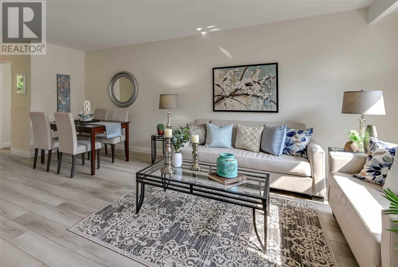 End-unit townhome offering tons of extra green space and privacy in a prime South London complex! Fully renovated in June 2021, this move-in-ready gem features 3 large bedrooms, 1.5 baths, and a handy carport out front. The modern kitchen shines with quartz countertops, new Frigidaire appliances, stylish subway tile backsplash, and a beautiful bay window overlooking your private backyard courtyard. Enjoy laminate flooring throughout, a fresh 4-piece bathroom upstairs, and a 2-piece powder room on the main level. Low condo fees add to the appeal, making it perfect for investors seeking strong income potential, first-time buyers, or families wanting a welcoming, community-oriented neighbourhood in London's desirable south end. (Please note pics are from when property was staged) (id:64974)