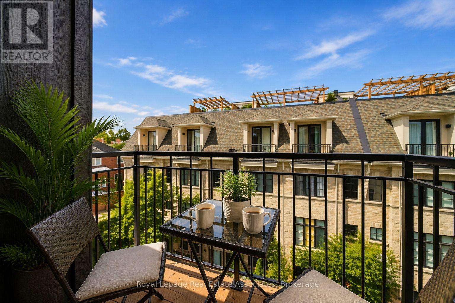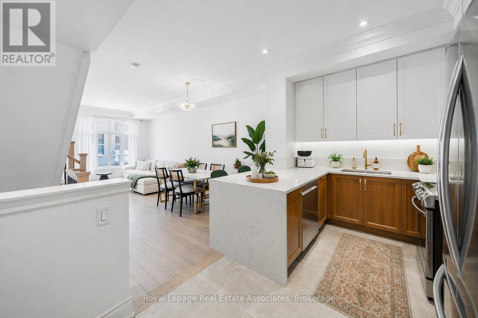 A refined luxury townhome by Dunpar Homes, nestled in the heart of vibrant Streetsville. This thoughtfully upgraded 1517 sq ft 3-bedroom, 2-bathroom residence delivers premium finishes, thoughtful design, and exceptional indoor-outdoor living in a prime, walkable location. The interior is bright and open, featuring soaring 9.5-foot ceilings and numerous skylights that flood the home with natural light. Wide plank hardwood flooring, smooth ceilings, LED pot lights, and solid oak stairs with iron pickets create an elegant and cohesive feel throughout. A natural gas fireplace with an upgraded Regency-style mantel and custom built-in shelving anchors the main living space, adding both warmth and functional design. The custom two-toned kitchen is a chef's delight, finished with quartz counters, a waterfall island, crown mouldings, premium stainless-steel appliances, and elevated cabinetry details. Bathrooms feature luxurious marble counters. Additional upgrades include a central steam humidifier and an electric vehicle charger rough-in. The primary suite functions as a private retreat, complete with crown moulding, a walkout to a private balcony, and an oversized walk-in closet with a fully integrated custom organization system. Outside, an expansive south-facing 268 sq ft rooftop terrace offers a gas BBQ line, water hookup, and a pergola-ideal for effortless, sun-filled entertaining. Enjoy an unparalleled level of convenience. The home is steps to GO transit, dining, trails, parks, top-rated schools, a recreation centre, and charming village shops, all with quick access to major highways. Set within an exclusive, family-friendly community known for its timeless architecture and modern design, this townhome offers the perfect blend of luxury, convenience, and low-maintenance living. Extensively upgraded, generously sized, and offering exceptional value, this turnkey home delivers luxury without compromise. (id:64974)