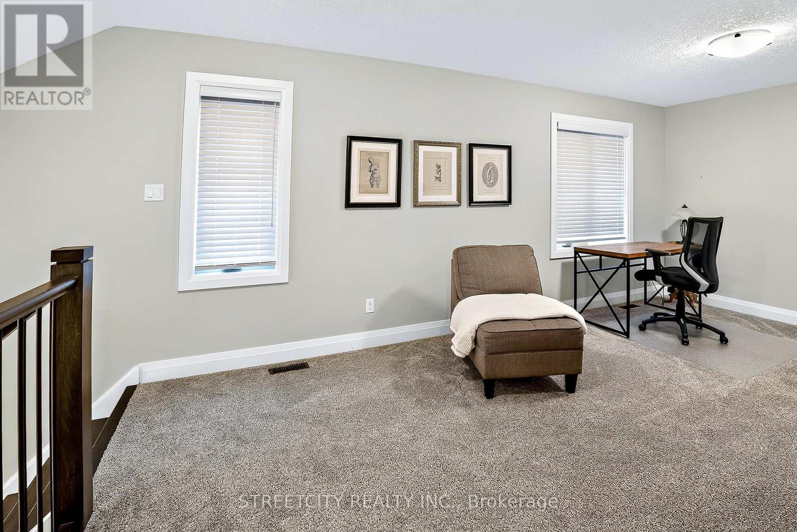 Welcome to this stunning 4-bedroom, 3-bathroom semi-detached home nestled in the highly sought-after beach town of Port Stanley. Offering exceptional curb appeal, this property features a double-wide interlocking brick driveway with parking for 2 vehicles, along with a spacious 2-car garage. Step inside to a bright and inviting open-concept main floor, perfect for modern living and entertaining. The kitchen is a true centerpiece, complete with elegant stone countertops, stylish backsplash, a generous island, and ample space for a full-sized dining table. The living room impresses with vaulted ceilings and patio doors that lead out to a large deck, ideal for summer gatherings, featuring a charming pergola and a convenient storage shed. The main floor also hosts a luxurious primary suite, boasting a beautiful 4-piece ensuite with double sinks and a stunning walk-in tiled shower. Upstairs, you'll find a versatile second family room-perfect as a kids' hangout, media space, or home office-along with two spacious bedrooms and a stylish 3-piece bathroom highlighted by a freestanding soaker tub. The fully finished lower level offers even more living space, including a generous family room, a fourth bedroom, and a 4-piece bathroom. An additional exercise room with laundry completes this level, providing both functionality and flexibility. This home blends comfort, style, and practicality in one of Ontario's most charming lakeside communities-an incredible opportunity you won't want to miss. (id:64974)