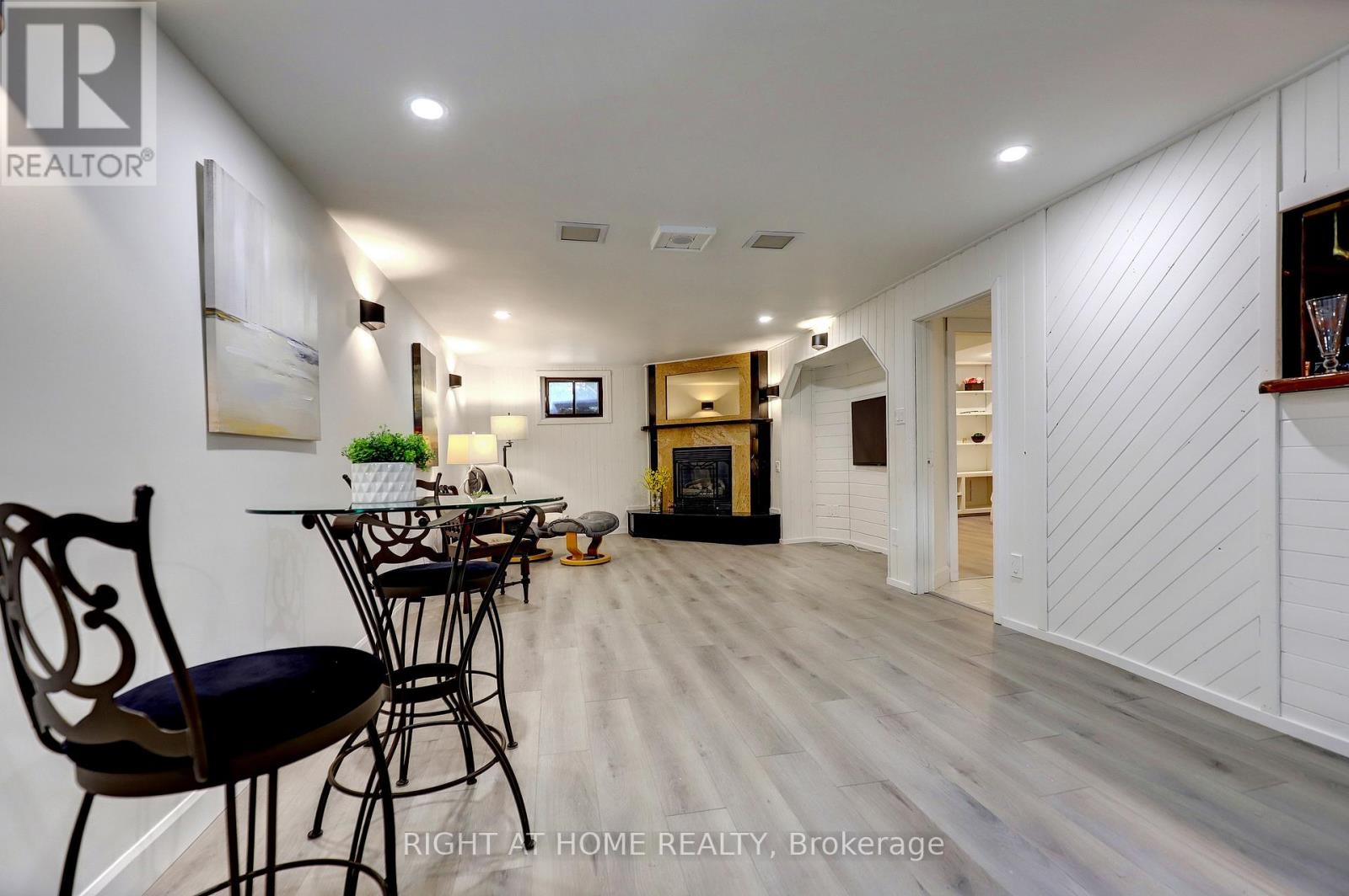 How would you like to live life on the edge of a golf course? 56 Cynthia Road, in the Roseland area of Toronto, backs onto the 5th hole of Scarlet Woods Golf Course. This lovely, brick 2+1 Bedroom, 2+1 Bathroom raised bungalow is move in ready. The large bay window, in the living room, brings tons of natural light into the space showcasing the gleaming hardwood floors that run throughout the living room and bedrooms. An open concept kitchen and dining room has enough space for entertaining family and friends. A door leads out to the backyard where you will find a great private, interlock patio. Two generous size bedrooms and a 4-pc bathroom completes this level of the home. Make your way down to the renovated recreation room and bathroom and 3rd bedroom. The 3-pc bathroom has a new shower stall and vanity. All living spaces have been freshly painted and new flooring installed throughout. In the backyard you will find mature gardens that provide great privacy. A single car garage currently used for storage could become useable for a vehicle by simply extending the driveway. Through the fence, you look upon the manicured 5th and 17th holes of Scarlett Wood Golf Course. This home is on a dead-end street making it a great area for kids. Roselands Public School is just a short walk away. (id:64974)