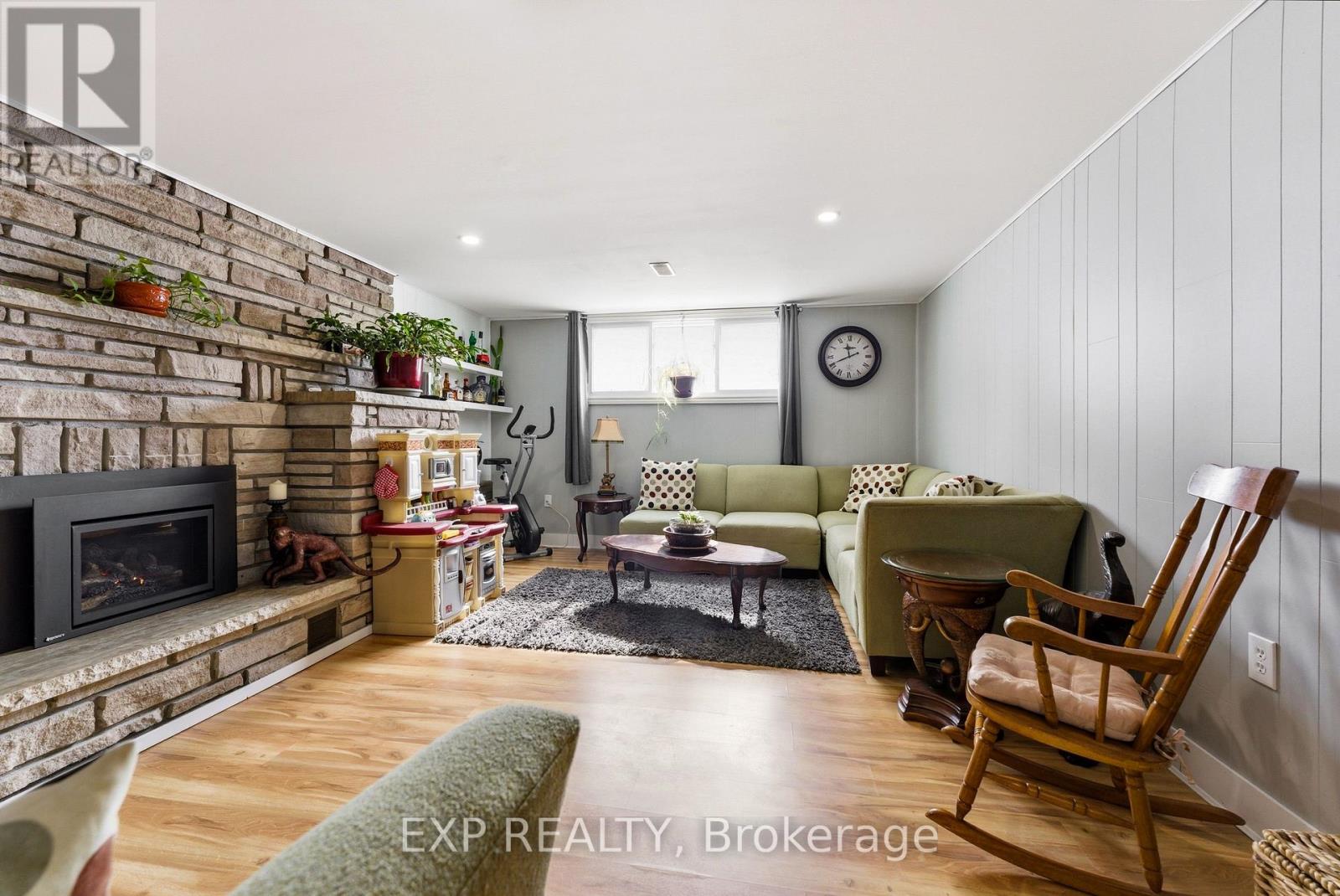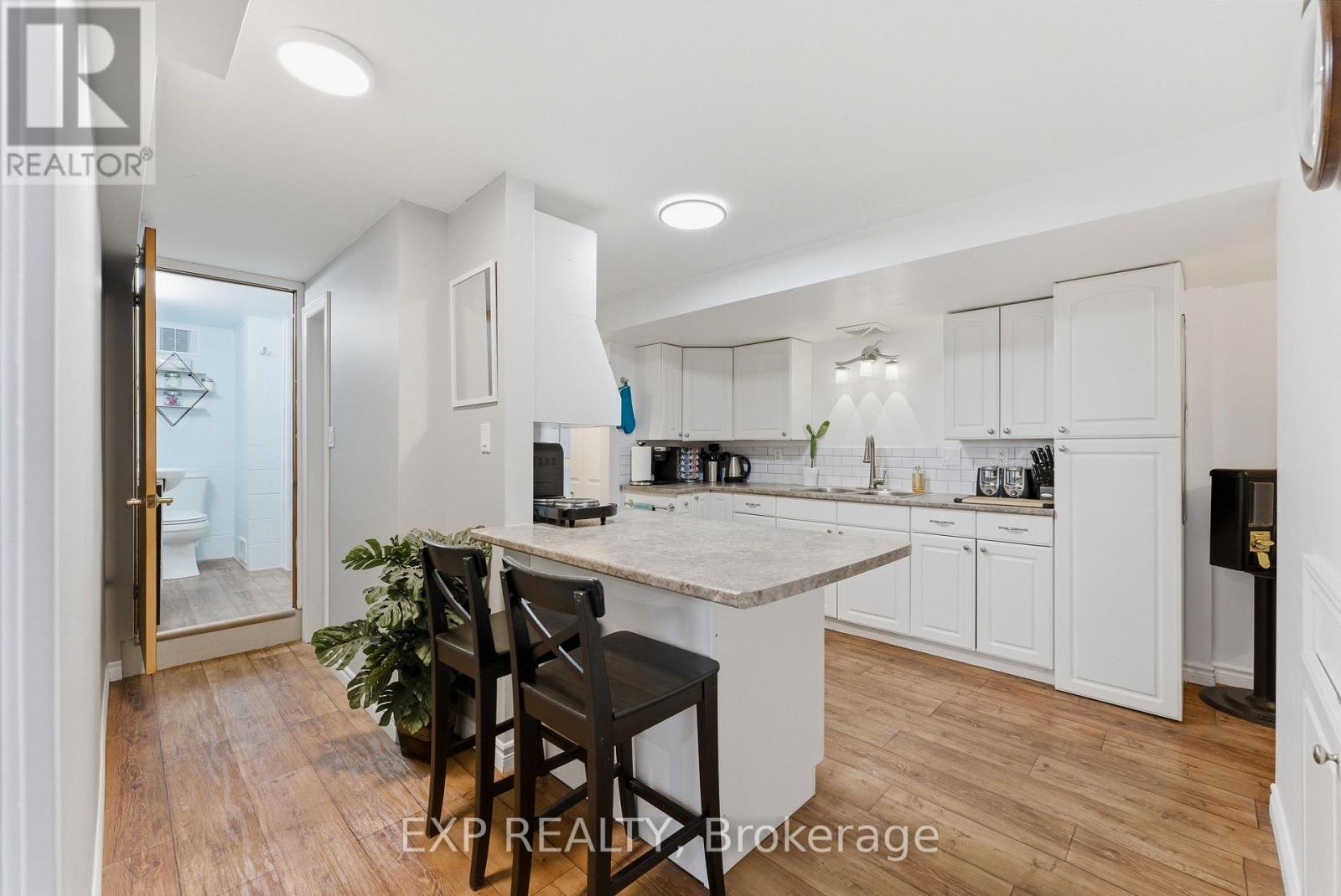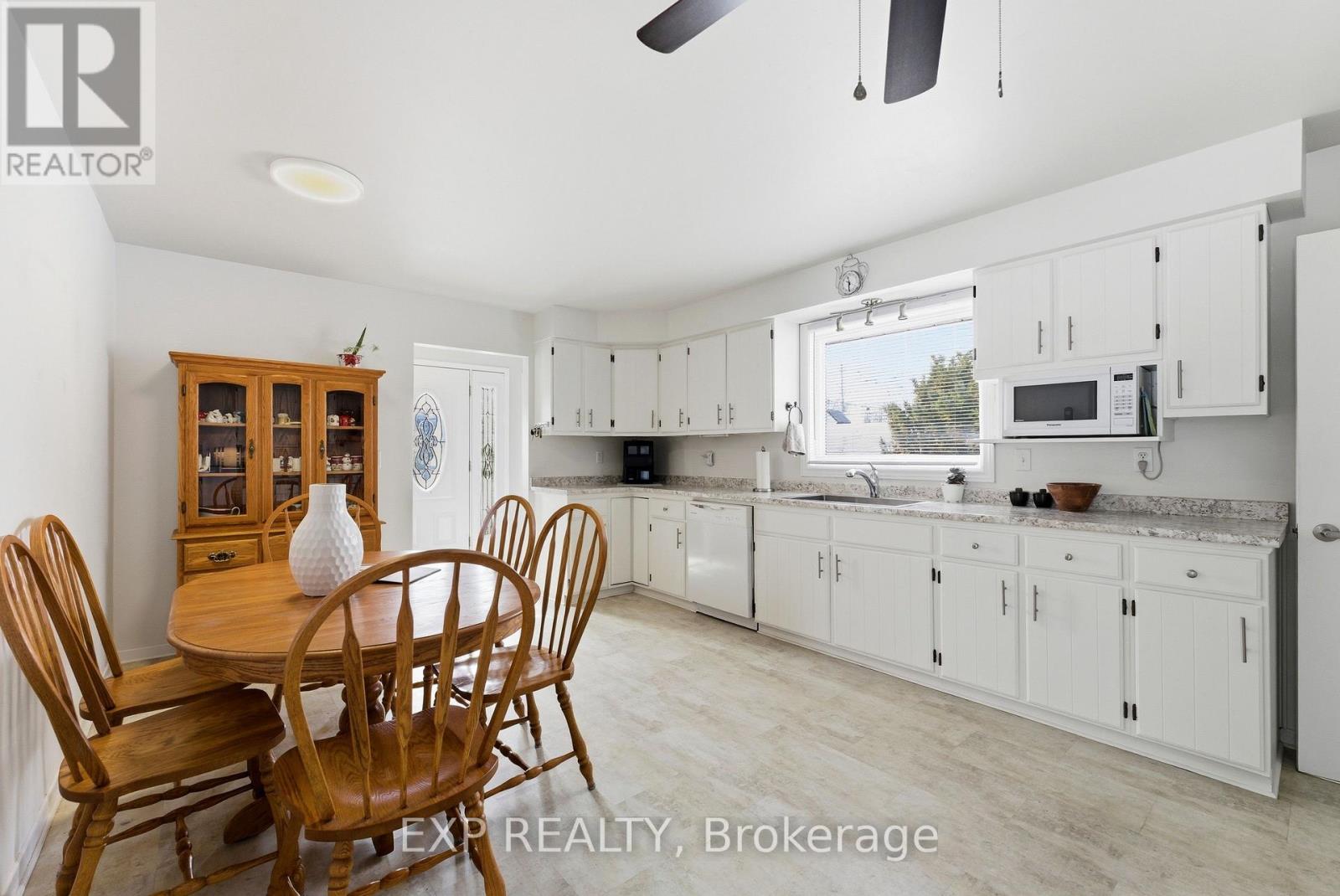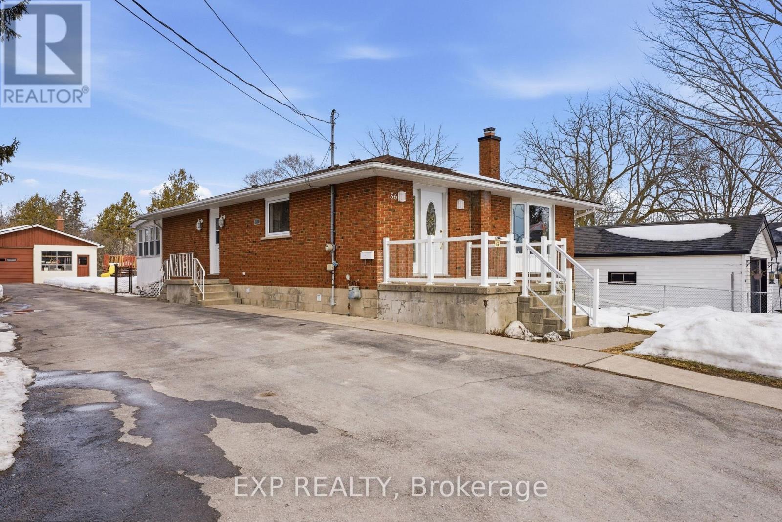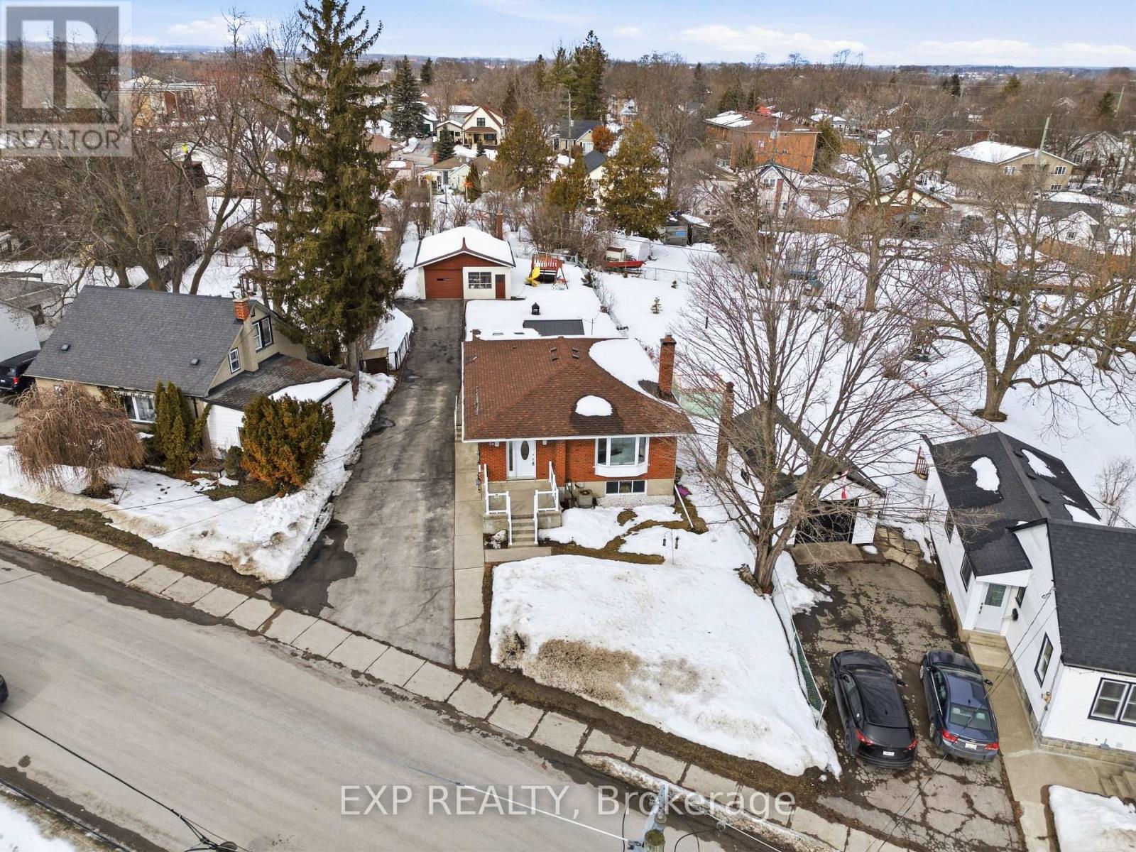Welcome to 56 Graham Street, a beautiful brick bungalow set on a deep lot in an established Belleville neighbourhood. Built in 1976 and offering over 2,200 sq. ft. of finished living space, this well-maintained home provides exceptional flexibility with a fully finished lower level that presents excellent in-law suite potential or rental opportunities. The main floor features a bright and spacious layout designed for comfortable everyday living. A welcoming foyer opens into a large living room filled with natural light, creating an inviting space for relaxing or entertaining. The kitchen offers generous cabinetry and workspace and flows seamlessly into the adjoining dining space, making family meals easy and enjoyable. Two well-sized bedrooms are located on the main level, along with a three-piece bathroom. A bright sunroom off one of the bedrooms provides added living space and a cozy spot to unwind while enjoying views of the backyard. Downstairs, the fully finished basement significantly expands the home's living potential. With its own kitchen, spacious family room with a fireplace, three additional bedrooms, and a four-piece bathroom, the lower level is well suited for an in-law suite, extended family living, or the possibility of generating rental income. The layout provides excellent separation between levels while still maintaining easy access throughout the home. Outside, the property sits on a generous lot, offering a large backyard with plenty of room for gardening and outdoor entertaining. The detached garage/workshop offers added outdoor storage space, while the expansive driveway provides plenty of parking spaces, adding exceptional convenience for residents and guests alike. Located close to schools, shopping, parks, and everyday amenities, this property offers both space and versatility in a desirable location. This is the perfect home for those searching for a family home with room to grow or a property with income or multi-generational potential! (id:64974)