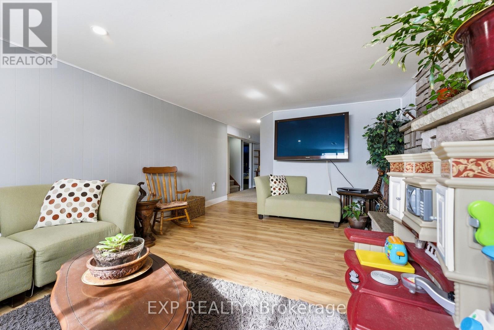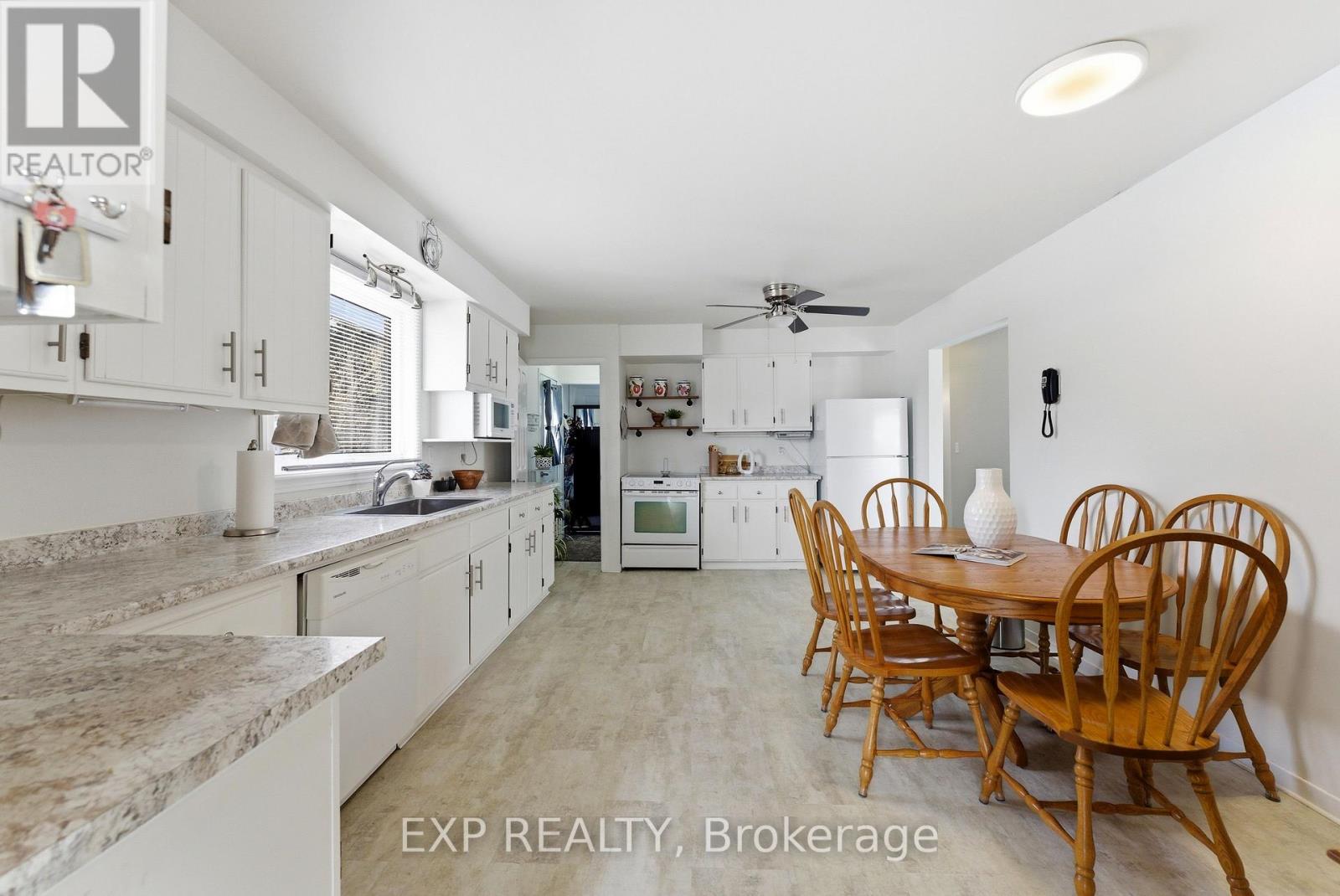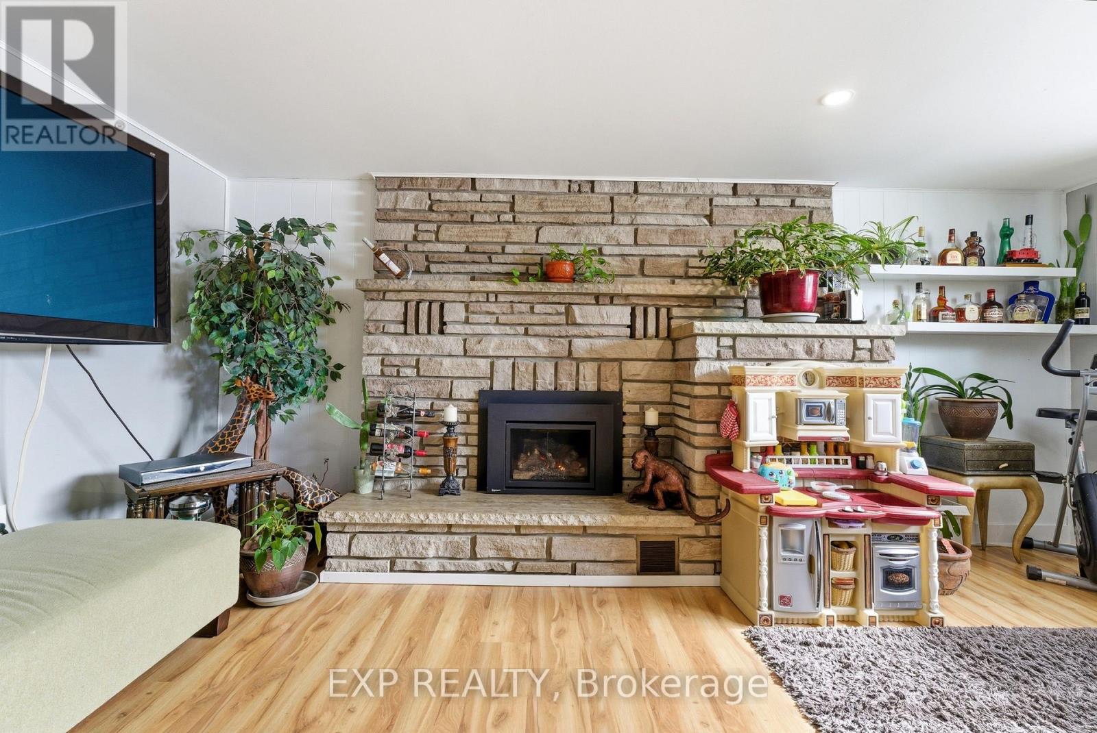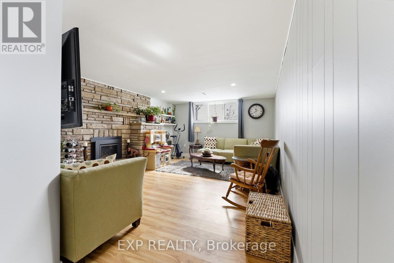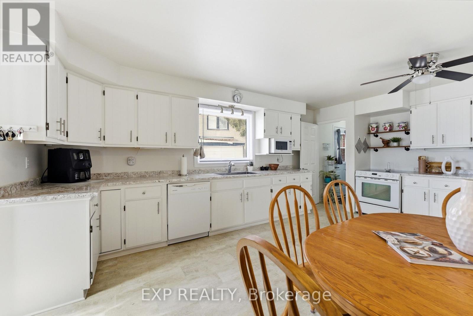 Welcome to 56 Graham Street, a beautiful brick bungalow set on a deep lot in an established Belleville neighbourhood. Built in 1976 and offering over 2,200 sq. ft. of finished living space, this well-maintained home provides exceptional flexibility with a fully finished lower level that presents excellent in-law suite potential or rental opportunities. The main floor features a bright and spacious layout designed for comfortable everyday living. A welcoming foyer opens into a large living room filled with natural light, creating an inviting space for relaxing or entertaining. The kitchen offers generous cabinetry and workspace and flows seamlessly into the adjoining dining space, making family meals easy and enjoyable. Two well-sized bedrooms are located on the main level, along with a three-piece bathroom. A bright sunroom off one of the bedrooms provides added living space and a cozy spot to unwind while enjoying views of the backyard. Downstairs, the fully finished basement significantly expands the home's living potential. With its own kitchen, spacious family room with a fireplace, three additional bedrooms, and a four-piece bathroom, the lower level is well suited for an in-law suite, extended family living, or the possibility of generating rental income. The layout provides excellent separation between levels while still maintaining easy access throughout the home. Outside, the property sits on a generous lot, offering a large backyard with plenty of room for gardening and outdoor entertaining. The detached garage/workshop offers added outdoor storage space, while the expansive driveway provides plenty of parking spaces, adding exceptional convenience for residents and guests alike. Located close to schools, shopping, parks, and everyday amenities, this property offers both space and versatility in a desirable location. This is the perfect home for those searching for a family home with room to grow or a property with income or multi-generational potential! (id:64974)