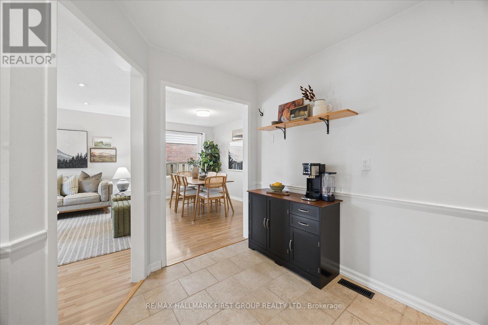 Welcome to this well-maintained bungalow in Ajax's desirable Central community, offering a practical layout and comfortable living space for a variety of buyers. Situated on a fenced lot with private extended driveway, two car parking and an attached garage. This home features a bright, open-concept living and dining area with laminate flooring, pot lights, and a large bay window that fills the space with natural light. The kitchen is functional and updated with stainless steel appliances, tile flooring, and a stylish backsplash. The main level offers three bedrooms, including a primary with semi-ensuite access, while one of the secondary bedrooms features a walk-out to the yard - perfect for added convenience. The finished basement expands the living space with a large recreation area, additional room or office, and a full bathroom, providing flexibility for extended family or work-from-home needs. Located close to schools, transit, and everyday amenities, this is a solid opportunity in a family-friendly neighbourhood. (id:64974)