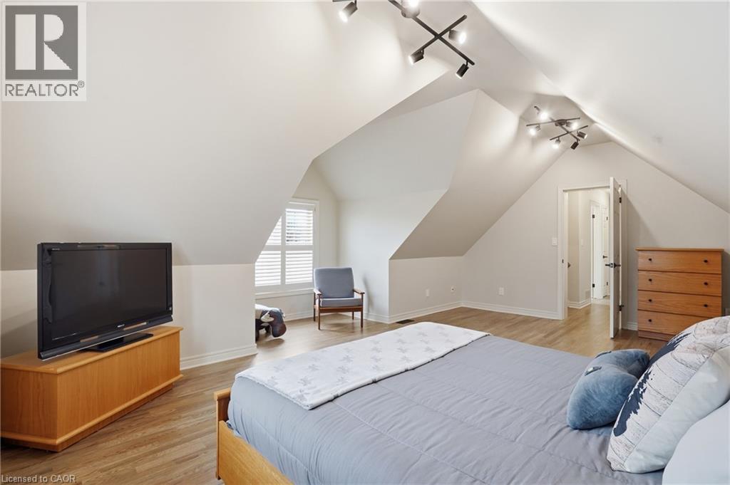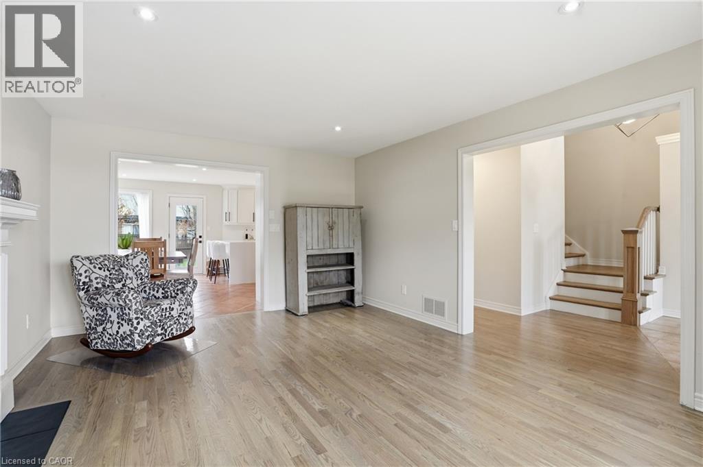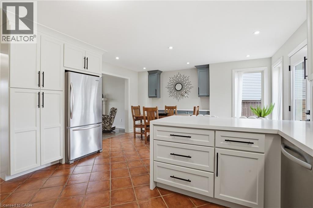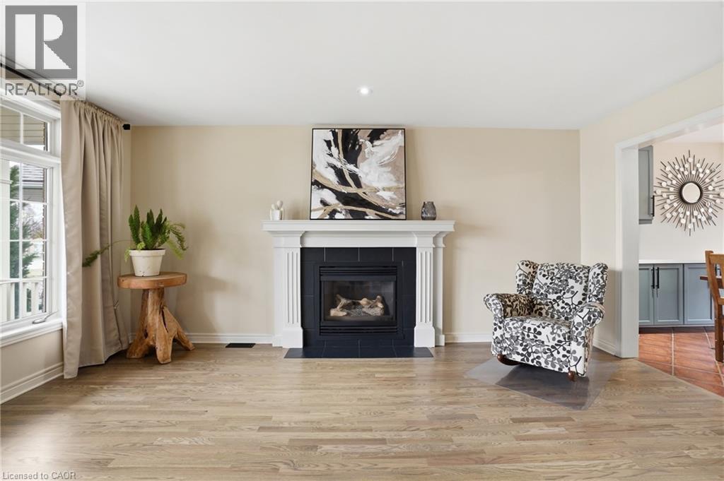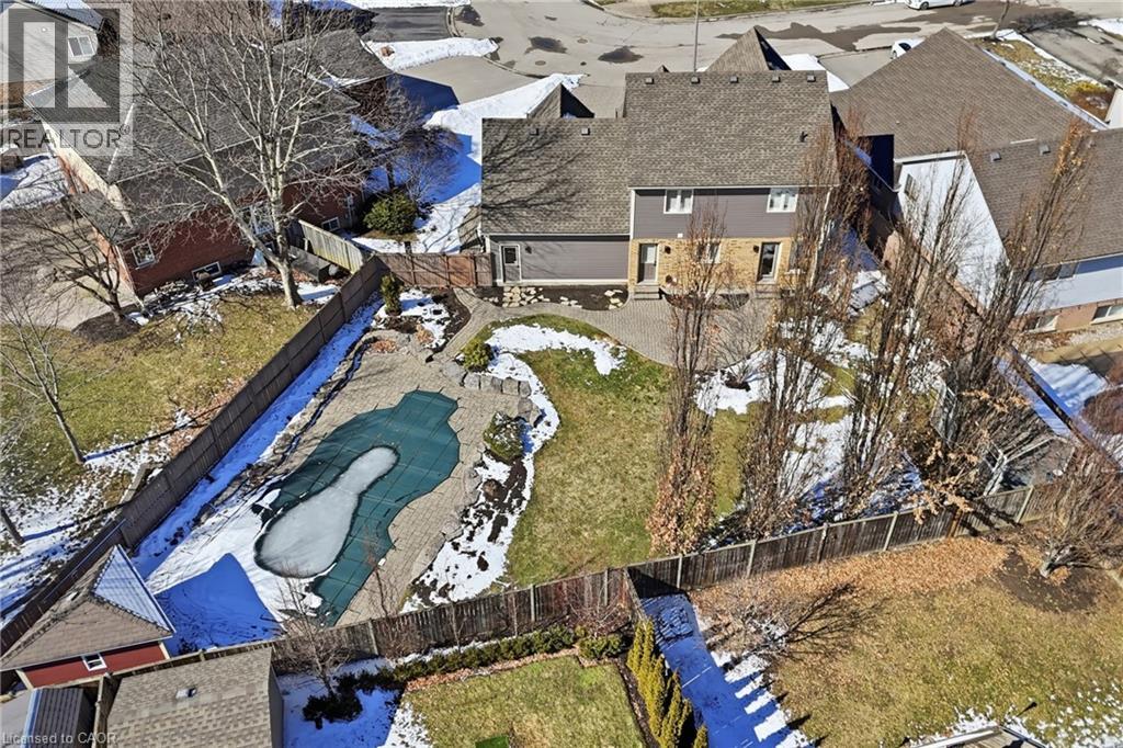 Located in the highly sought-after Vansickle neighbourhood of St. Catharines, this Rinaldi custom-built two-storey home sits on a picturesque pie-shaped lot surrounded by mature trees and beautifully landscaped grounds. Offering a total of 4 bedrooms and 3.5 bathrooms, this home has been thoughtfully updated and meticulously maintained. The bright main floor welcomes you with expansive windows that fill the spacious living room with natural light, highlighted by a cozy gas fireplace. The stunning new kitchen (2024) features quartz countertops, an undermount sink and an eat-in area overlooking the private backyard. Newer flooring runs throughout the main and second floors, complemented by fresh paint throughout the entire home (2024), creating a clean modern feel. Updated bathroom vanities on the main floor and upper level add to the home’s stylish upgrades. Upstairs, the primary suite offers vaulted ceilings, a 3-piece ensuite, and a walk-in closet, along with three additional bedrooms, including a versatile bonus room over the garage that can serve as a fourth bedroom or home office. The fully finished basement provides additional living space with a large recreation room, bar area, 3-piece bathroom, cold cellar and ample storage. Step outside to your private backyard oasis featuring a large in-ground pool, mature landscaping and a spacious patio perfect for entertaining. A shed adds extra storage, while the impressive 6+ car driveway enhances the home’s curb appeal. The home also features a maintenance-free exterior paint completed in 2025, offering added peace of mind and long-term durability. A rare opportunity to own a beautifully updated family home in one of St. Catharines’ most desirable communities. (id:64974)