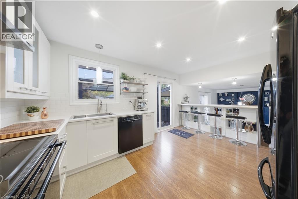 OPEN HOUSE SAT APRIL 11th between 1:00-3:00pm . Welcome to this bright and spacious 3-bedroom, 2-bath sidesplit, ideally situated on a quiet street in a highly sought-after, family-oriented neighborhood. This home offers the perfect blend of comfort, style, and functionality. The main floor boasts a large, sun-filled living room and a fully renovated eat-in kitchen (2013) featuring modern finishes and a walkout to a stunning two-tiered deck—perfect for indoor-outdoor living. The adjacent family room, currently used as a dining area, provides flexible space and can easily be converted back to its original layout. Both the kitchen and family room feature sliding glass doors that open to a beautifully landscaped backyard. Upstairs, you’ll find three generously sized bedrooms and an updated bathroom. The primary bedroom includes a convenient walk-in closet, adding to the home’s thoughtful design. The fully finished basement offers excellent in-law suite potential, complete with a separate walkout entrance, above-grade windows, a modern 3-piece bathroom, dedicated office space, and a laundry area. Recent updates include an ESA-certified electrical panel (2018) and a new high-efficiency furnace (2024), ensuring peace of mind for years to come. Step outside to enjoy a professionally landscaped yard with mature perennial gardens and a fully fenced backyard—ideal for children, pets, or entertaining. Freshly painted throughout, this home is bright, clean, and truly move-in ready. (id:64974)