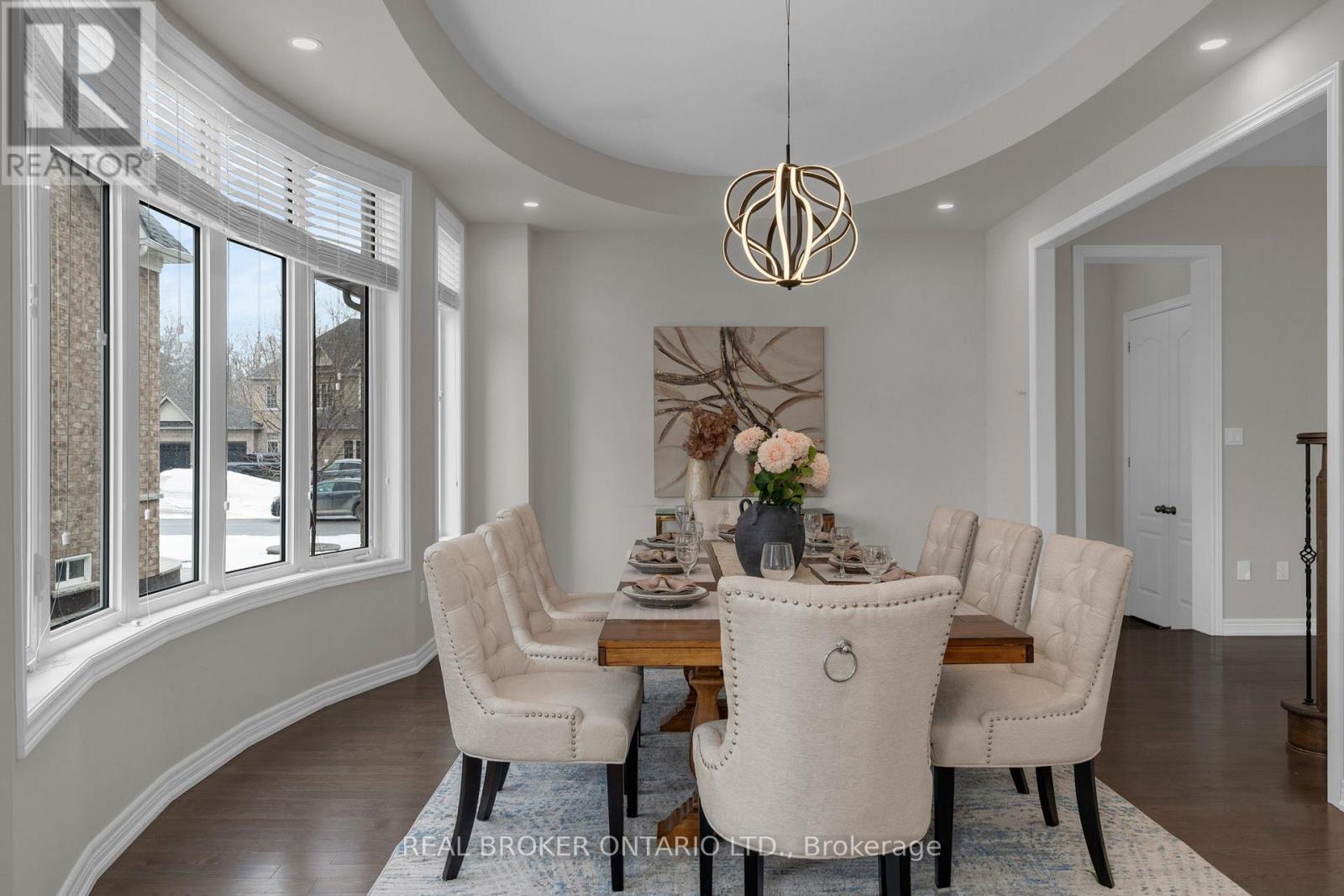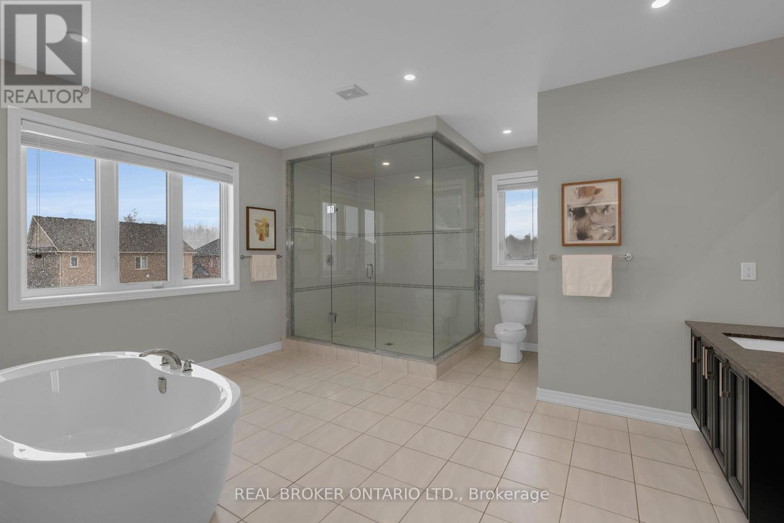 Set within the prestigious Stonemanor Woods community, this home stands out for its scale, layout, and level of finish. 5 bedrooms, 4 car garage and offering over 4,000 square feet, the design is both expansive and intentional, with a rare layout where each bedroom features its own ensuite, creating a level of privacy and comfort that's hard to find. The 10ft ceiling main floor offers a natural flow between principal rooms, anchored by a well-appointed kitchen with granite countertops, extended cabinetry, and a large island, opening to a bright family room with fireplace. A main floor office with french doors and a functional mudroom add to the everyday convenience. Situated on a wide, pool-sized lot, the property offers space to grow, while the four car garage split into two separate double bays provides flexibility rarely seen. The unfinished basement offers future potential for additional living space or an in-law suite. Ideally located just minutes to Barrie, Snow Valley, trails, parks, and everyday amenities, offering a balance of space, privacy, and accessibility. (id:64974)