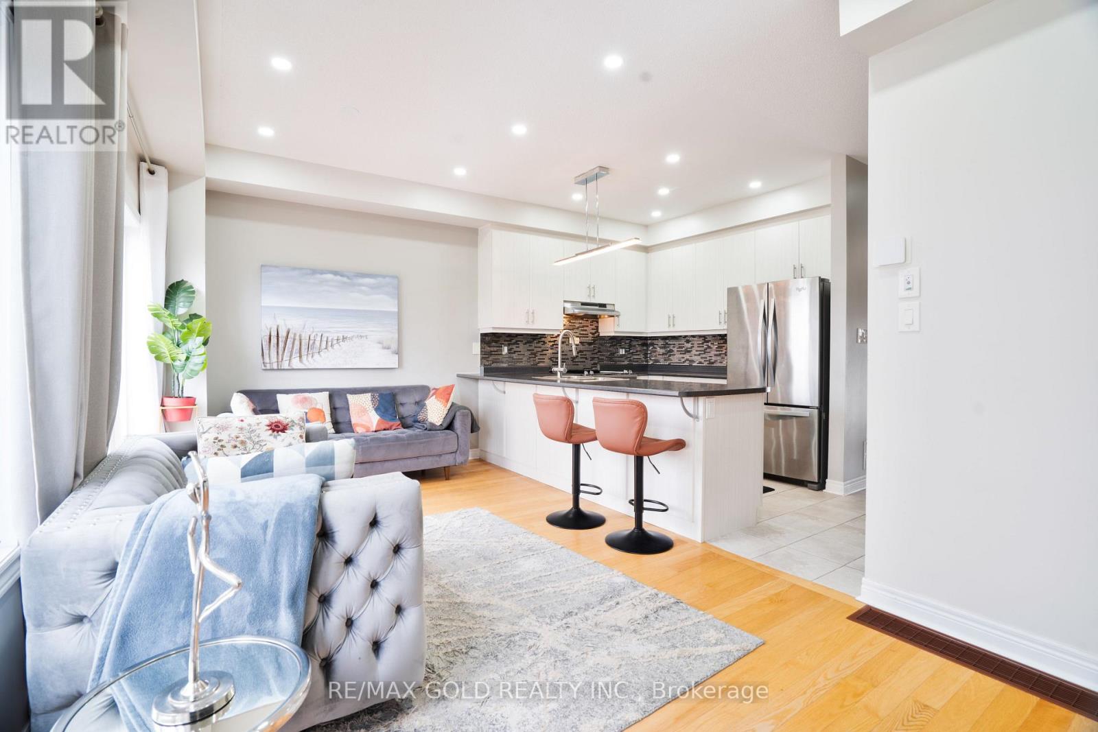 Shows A++! Approx. 2,015 sq. ft. of total living space in this immaculate all-brick North End Barrie townhouse in a prime and very convenient location, just off Bayfield St. Quick highway access, close to Simcoe County Forest trails, East Bayfield Community Centre, schools, and all major amenities. 3 bed, 2.5 bath with finished basement and primary ensuite. Open-concept main floor with 9' ceilings, hardwood floors, 42" cabinetry, breakfast bar, inside garage access, and walkout to 16' x 16' deck & fenced yard. Updates include pot lights throughout, exterior pot lights, and security cameras. (id:64974)