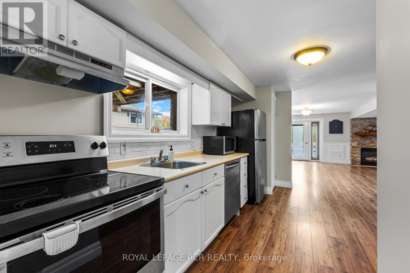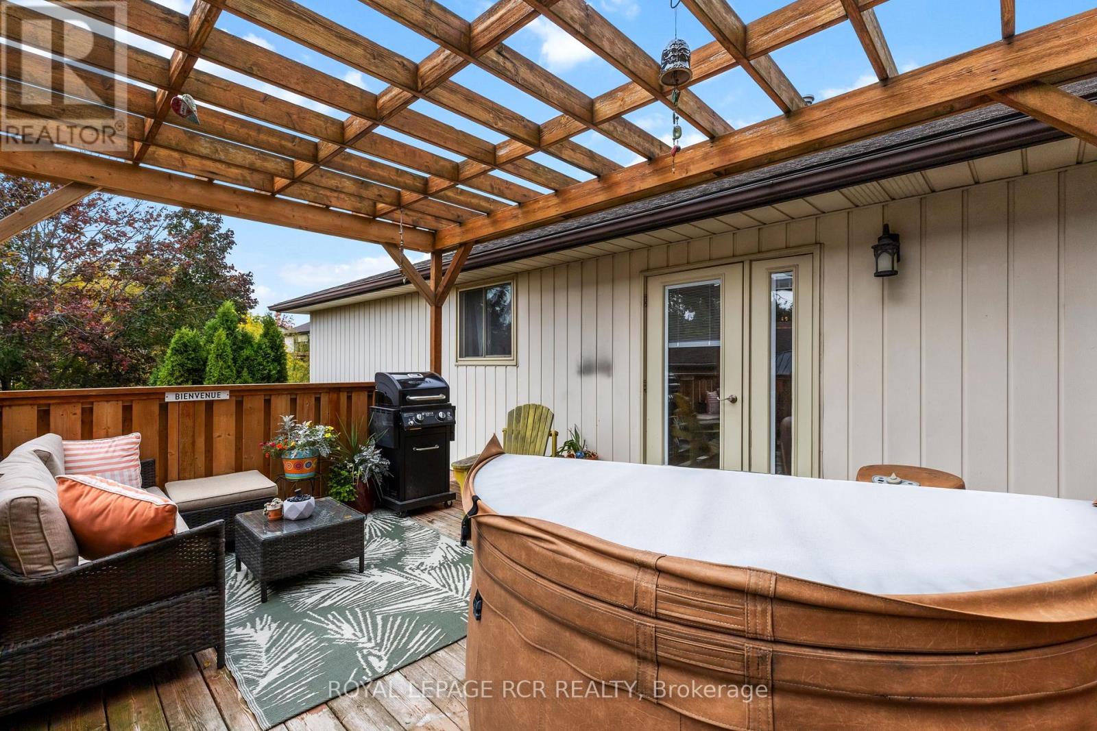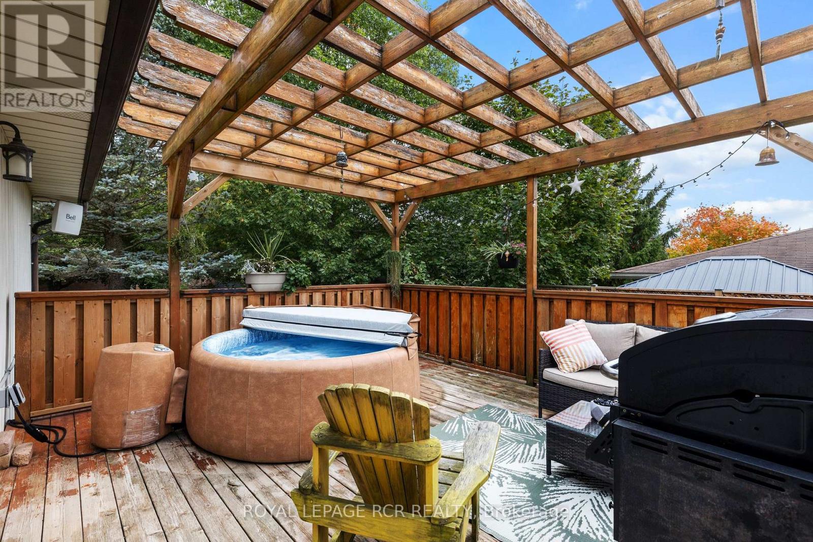 Welcome to this beautifully maintained raised bungalow nestled on a quiet crescent just steps from local amenities and the scenic Elora Cataract Trail. This home exudes pride of ownership throughout with elegant crown molding accenting the main living spaces and a functional layout designed for family living. The main level offers three bedrooms (one bedroom conveniently features the second laundry) and a tastefully updated semi-ensuite featuring porcelain tile flooring and a granite topped vanity. You will appreciate the fresh neutral paint tones recently applied to the primary bedroom and the upper level washroom which provide a bright and modern feel. The principal rooms feature durable easy-care flooring and a walkout from the dining area to a large deck with an open pergola perfect for outdoor relaxation. The lower level presents an excellent opportunity for in-law or multigenerational living as it comes complete with a kitchenette, a spacious recreation room with a gas fireplace, and a separate laundry area. This level also features a ground-level walkout to the beautifully landscaped backyard which serves as a private summer oasis. You can enjoy endless summer days entertaining by the above-ground saltwater pool (with a sand filtration system) or relaxing on the flagstone patio beside the fire pit. The large fenced lot provides plenty of space for family enjoyment and outdoor activities. Additional highlights include an attached insulated single-car garage and a double-wide concrete driveway for ample parking. Numerous thoughtful updates have been completed recently including a new upper level electrical panel with a separate meter, a new heat pump HVAC system, and an owned tankless water heater all installed in 2024. This exceptional home offers the perfect blend of comfort and style in a family-friendly neighbourhood and represents a true gem in the heart of Elora. (id:64974)