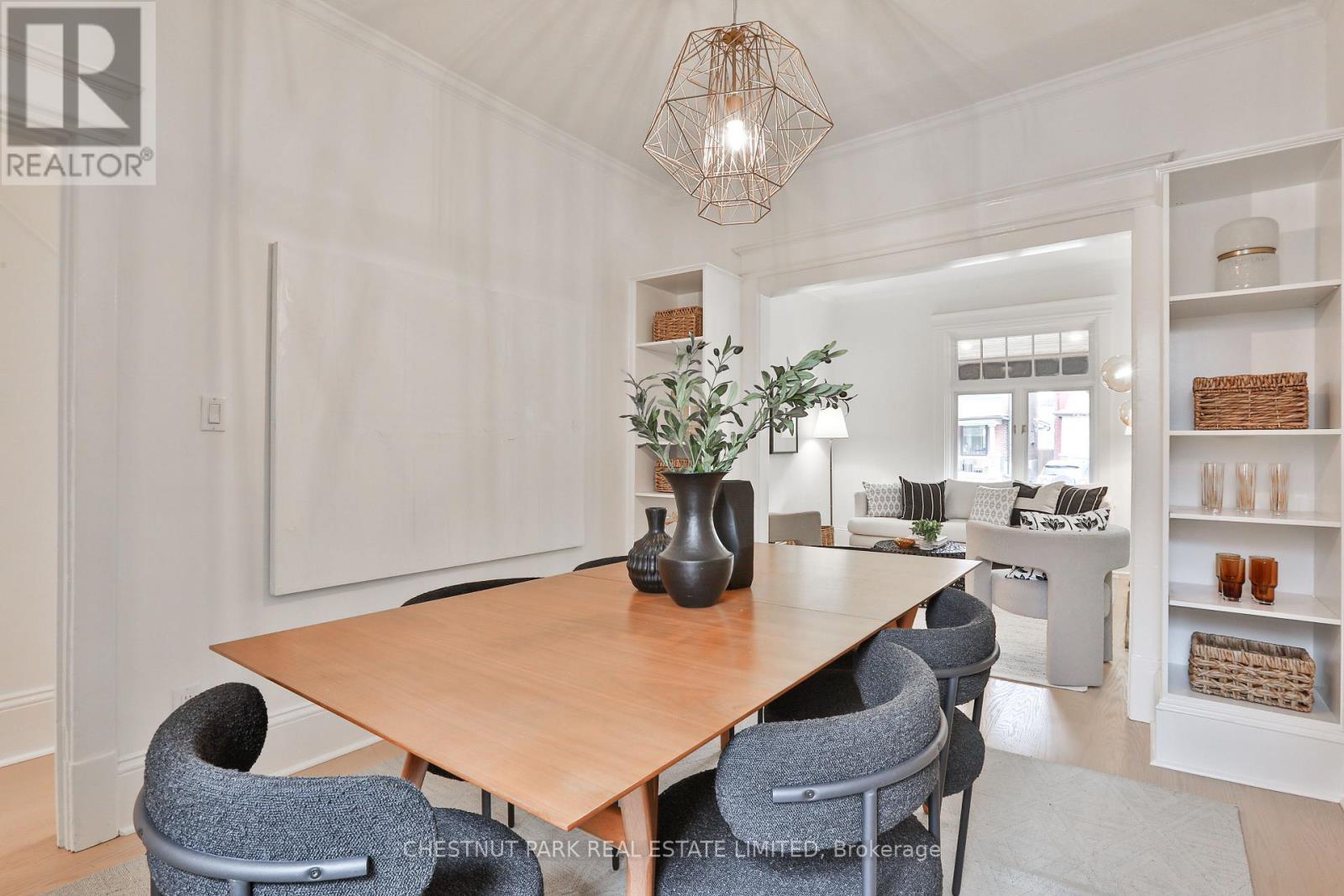 Welcome to 560 Gladstone Ave - a renovated family home where classic Victorian charm meets modern upgrades! Located on a quiet one-way, tree-lined street in the heart of Toronto's west end. From the large covered cedar porch to the spacious interior and lush perennial rear garden, this home perfectly blends comfort, character & convenience! The bright main floor features newer engineered hardwood flooring and a separate entrance vestibule which leads to a charming living room with a functioning wood-burning fireplace and large windows overlooking the generous front porch. Host your family and friends in the formal dining room, spacious enough for a large dining table. The renovated eat-in kitchen features stunning quartz countertops, ample custom cabinetry, a moveable butcher block island and newer stainless steel appliances, including a wine fridge! Separate sun-filled breakfast room with walk-out to rear deck & deep landscaped rear garden with garden shed. The primary bedroom retreat features excellent closet space with custom wall-to-wall closets & a built-in window bench with more storage. Two additional well-proportioned bedrooms with windows overlooking the rear garden. The renovated family bathroom features a large glass-enclosed shower with rain head & bench, plus a built-in vanity. Separate 2nd floor linen closet. The lower level offers a versatile space perfect as a recreation room and/or office, playroom or bedrm. Stunning 4-piece bathroom with bathtub & heated flooring. Stacking washer & dryer and additional storage closet. Lower level walk-out to rear garden. Enjoy an unbeatable location just steps to the Dufferin subway station and the desirable shops and restaurants on Bloor & nearby Geary Street strip. An exceptional family-friendly location minutes to the Gladstone Public Library, Dufferin Mall, newly built Bloor Collegiate High School, Dovercourt Park and the brand new Wallace-Emerson Community Centre & pool. A rare offering not to be missed! (id:64974)