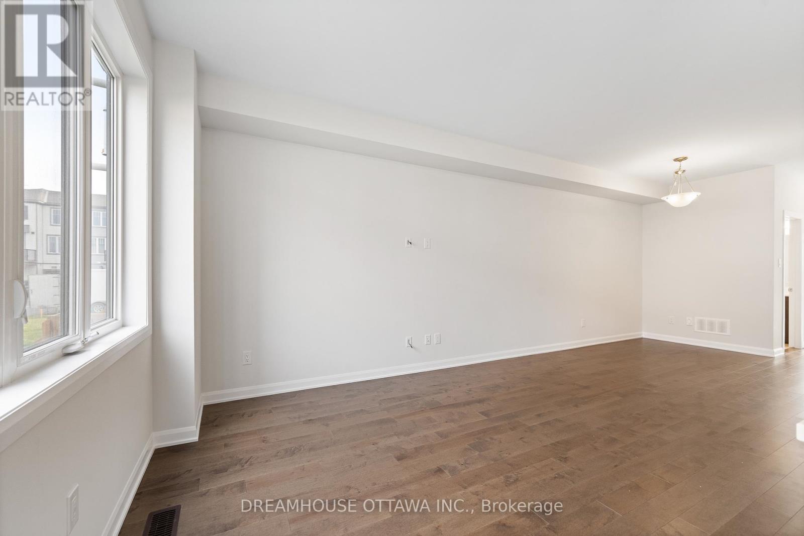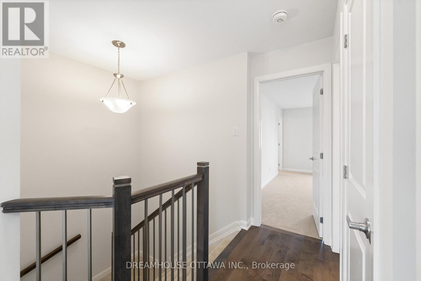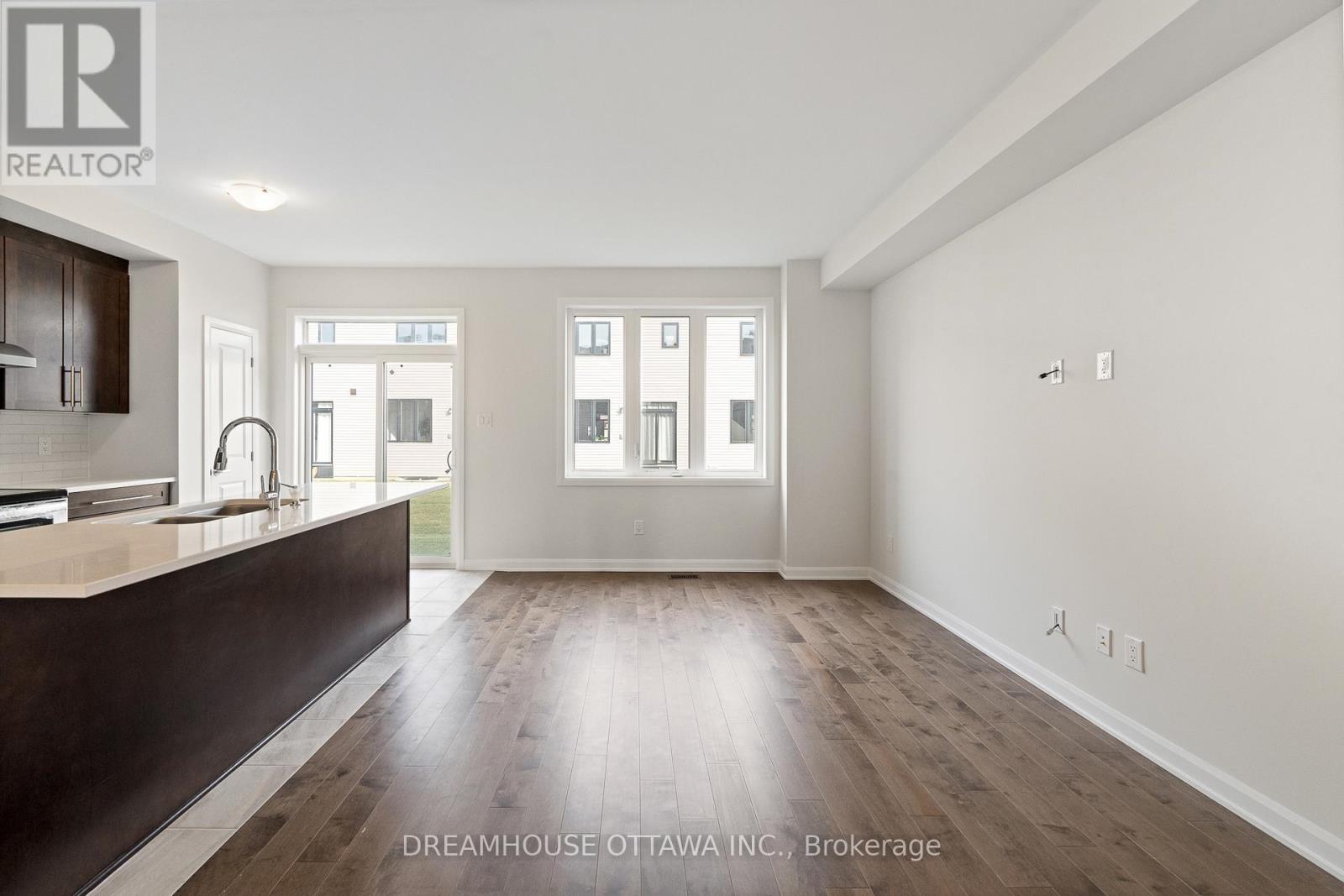 Welcome to this beautifully upgraded townhouse in the sought-after Quinn's Pointe community in Barrhaven. Nestled in a vibrant, family-friendly neighbourhood, this home is just steps from parks and scenic greenspace and within close proximity to the Minto Recreation Complex, shopping, schools, and everyday amenities. This elegant Minto-built home showcases quality upgrades and modern finishes throughout. The bright open-concept main level features rich hardwood flooring, upgraded railings, and a designer kitchen complete with quartz countertops, stainless steel appliances, a large island, additional cabinetry, and soft-close cabinets, perfect for both everyday living and entertaining. The spacious dining and living areas offer a welcoming atmosphere for gatherings with family and friends. Upstairs, you'll find three well appointed bedrooms, including a comfortable primary retreat, along with 2.5 bathrooms and smooth ceilings on the second level that add a refined touch. The fully finished basement extends the living space and features a cozy gas fireplace, creating the perfect setting for a family room, media space, or home retreat. Step outside to enjoy the fully fenced backyard, offering privacy and a great space for outdoor relaxation, entertaining, or family activities. Additional highlights include Window Blinds, Central Vacuum with accessories, garage door opener, upgraded railings and ample storage throughout. Flooring includes hardwood, ceramic, and wall-to-wall carpeting. Pictures taken prior to Tenant's occupancy. (id:64974)