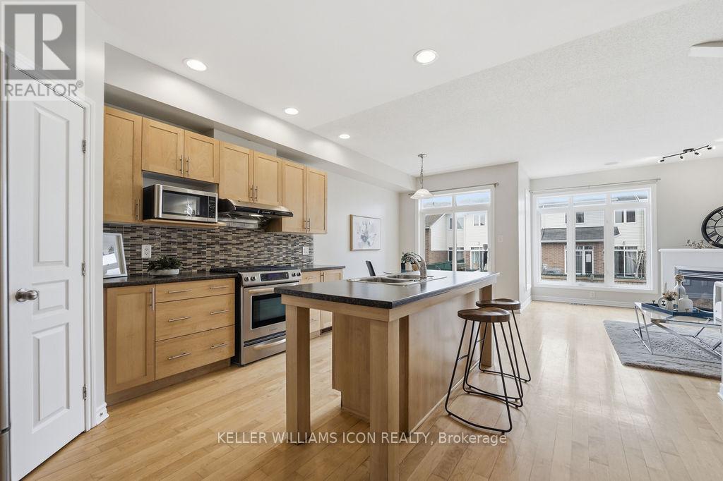 Rarely offered and impeccably updated, this spacious 4-bedroom, 4-bathroom home with a main-floor den is perfectly situated in the prestigious Kanata Lakes community, just steps from top-rated schools. The interior has been extensively refreshed in 2026 with professional paint throughout, brand-new laminate flooring on the second level and basement, new carpeting on the stairs, and a newly installed range hood fan. Designed for modern living, the main level features elegant hardwood floors, a dedicated home office, and an open-concept living and dining area that flows into a gourmet chef's kitchen equipped with a walk-in pantry, stainless steel appliances, and a convenient breakfast bar. The upper level hosts a serene primary suite with a walk-in closet and private 4-piece ensuite, three additional spacious bedrooms, and a laundry room for ultimate convenience. The fully finished lower level offers a flexible recreational space and an additional full bathroom, providing the perfect setup for a guest suite or family media room. Set on a quiet street with a fully fenced yard, a single-car garage, and an extended driveway for two-car parking, this home offers an unmatched lifestyle near parks, transit, and premium shopping. (id:64974)