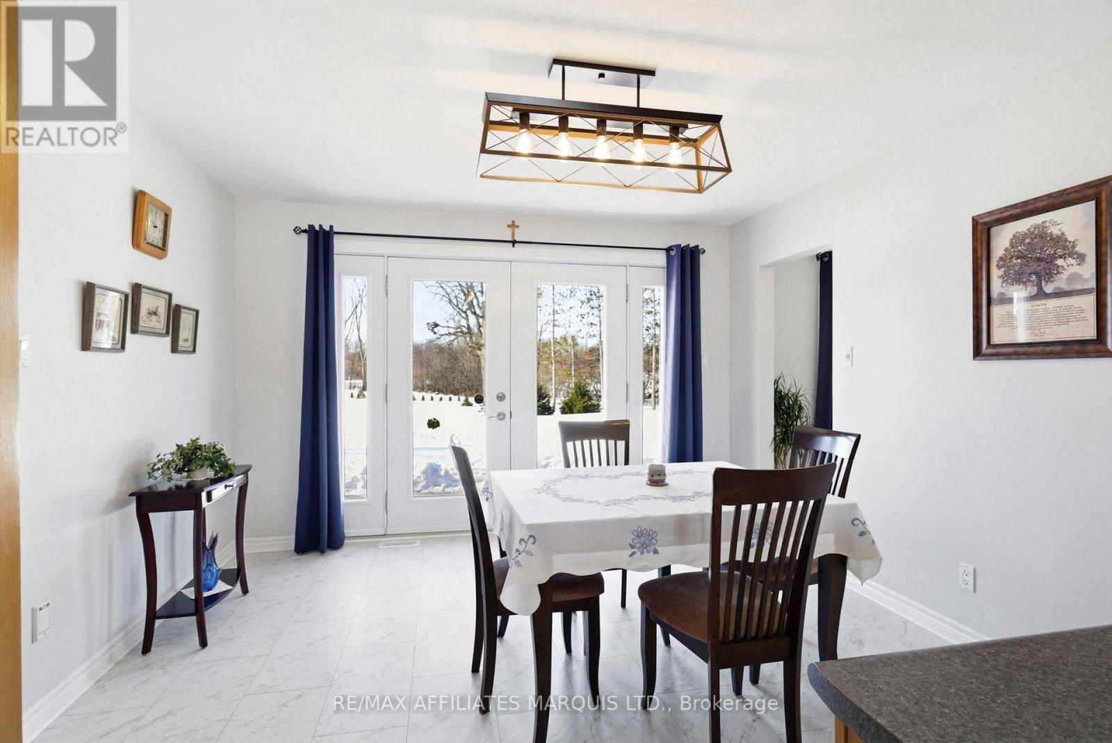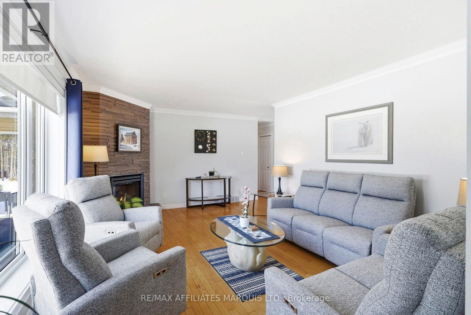 Located in the desirable Sandywood Estates, just minutes from Cornwall, this beautifully maintained executive bungalow offers the perfect balance of quiet country living and convenient access to town. From the moment you arrive, it's clear this home has been meticulously cared for, with every update and improvement completed with thoughtful attention to detail. The main level offers over 1,700 square feet of well-designed living space, creating a layout that is both comfortable and functional. The bright eat-in kitchen provides plenty of cabinetry and workspace, with French doors leading directly to a private backyard patio, making outdoor dining and entertaining effortless. A formal dining area with vaulted ceilings adds character and openness to the living space, while the adjoining living room offers a warm and inviting atmosphere with a cozy fireplace as its centerpiece. The main floor features three bedrooms, including a spacious primary bedroom with a walk-in closet and convenient access to the main bathroom. A two-piece powder room and a mudroom off the attached double garage add everyday convenience. The basement includes a large finished recreation room along with an expansive unfinished section that offers excellent potential for additional bedrooms, a home office, or extended living space.The exterior is equally impressive with its all-brick construction and durable metal shingle roof designed for long-term peace of mind. The backyard showcases a large interlocking stone patio and a beautiful pavilion-style seating area, creating a perfect setting for relaxing or hosting family and friends. Set on approximately 1.5 acres, the property also features a paved driveway and beautifully landscaped grounds, completing this exceptional and well-cared-for home. (id:64974)