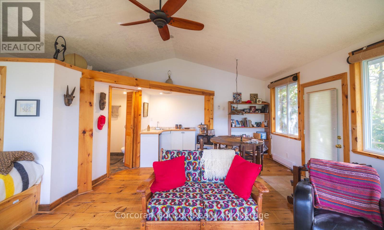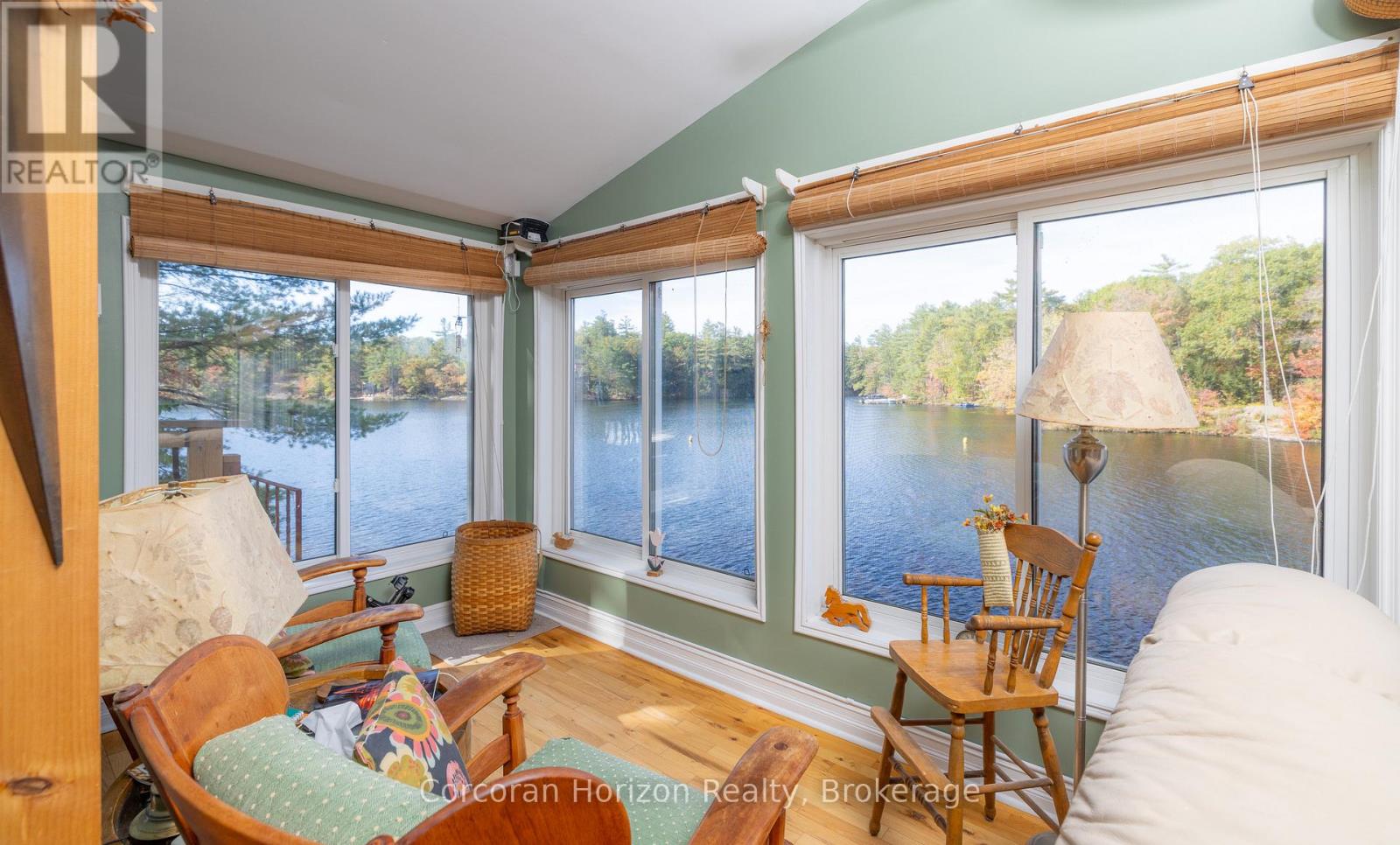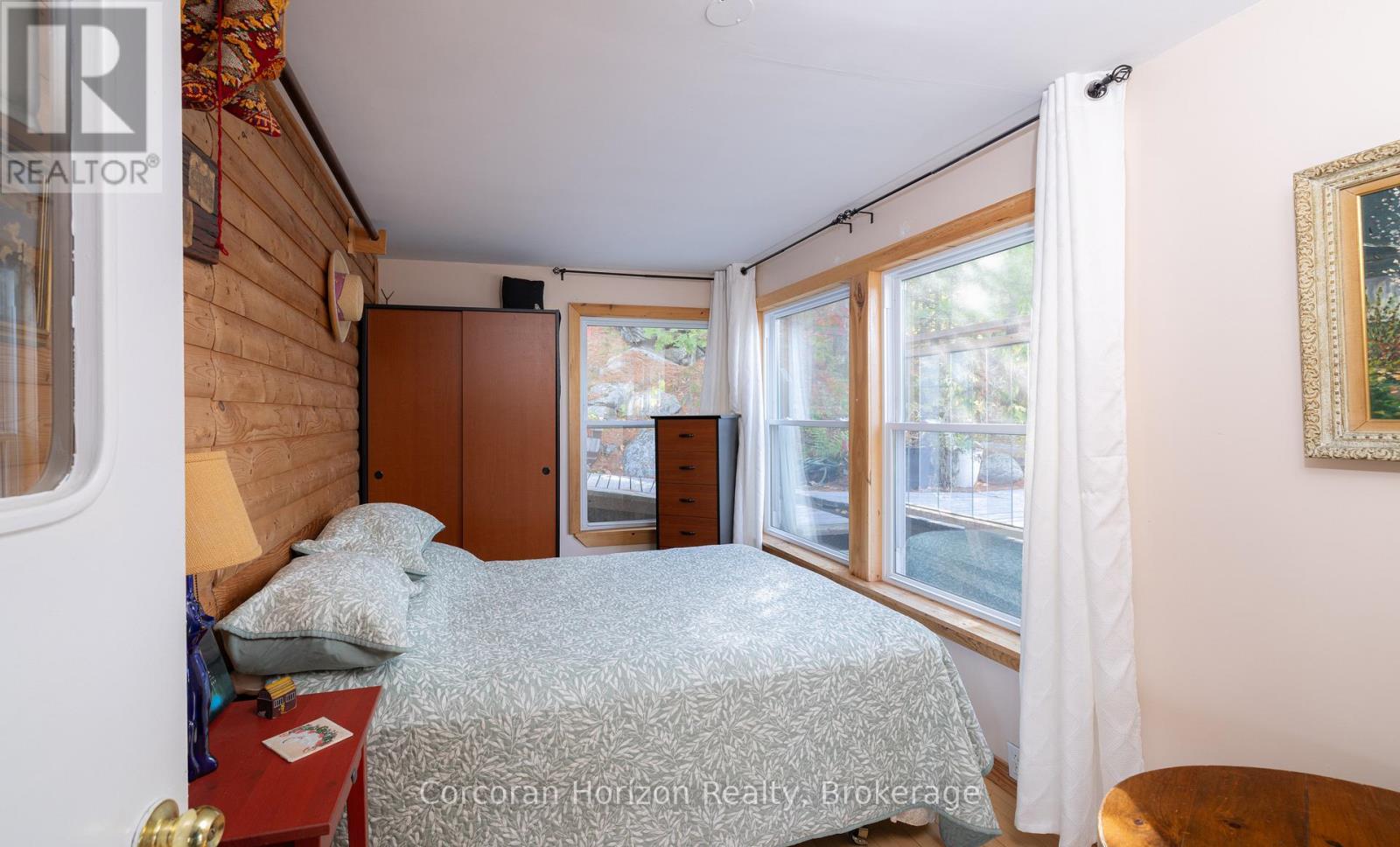 Welcome to your dream lakeside escape! This 3-bedroom, 1-bath cottage sits so close to the water it feels like you're living on a ship, perfect for sunrise coffee or summer dining! Enjoy deep, crystal-clear swimming right off the dock and effortless midnight dips in the moonlight. The property's western exposure fills every afternoon with golden sunshine and ends each day with breathtaking sunsets over the lake. The orioles Toronto Dominion Centre gazebo catches every breeze, keeping things cool and bug-free, while the spacious deck and big grill make entertaining family and friends a joy. Set on a Township-maintained, four-season road just minutes off Highway 400, this cottage offers unbeatable convenience without sacrificing tranquility. A partial boathouse with marine rail adds character and function, and the 800 sq. ft. four-season studio bunkie with its own bathroom and attached garage (built in 2011) provides amazing versatility-ideal as a guest suite, creative studio, or private retreat. Surrounded by mature trees and friendly neighbours set back up the hill, you'll enjoy exceptional privacy, sunshine, and calm, sheltered waters on the 50+ km McDonald-Gibson Provincial Canoe Route. Whether you're paddling, swimming, grilling, or relaxing in the gazebo, this is lakeside living at its absolute best! (id:64974)
