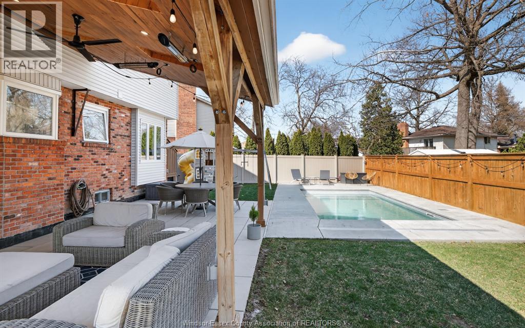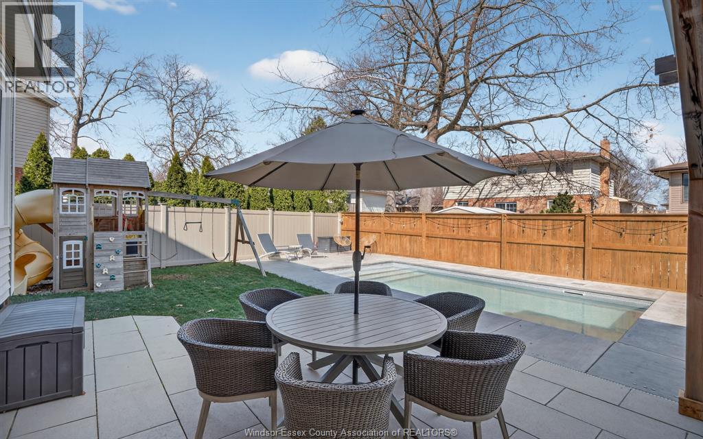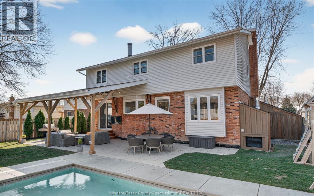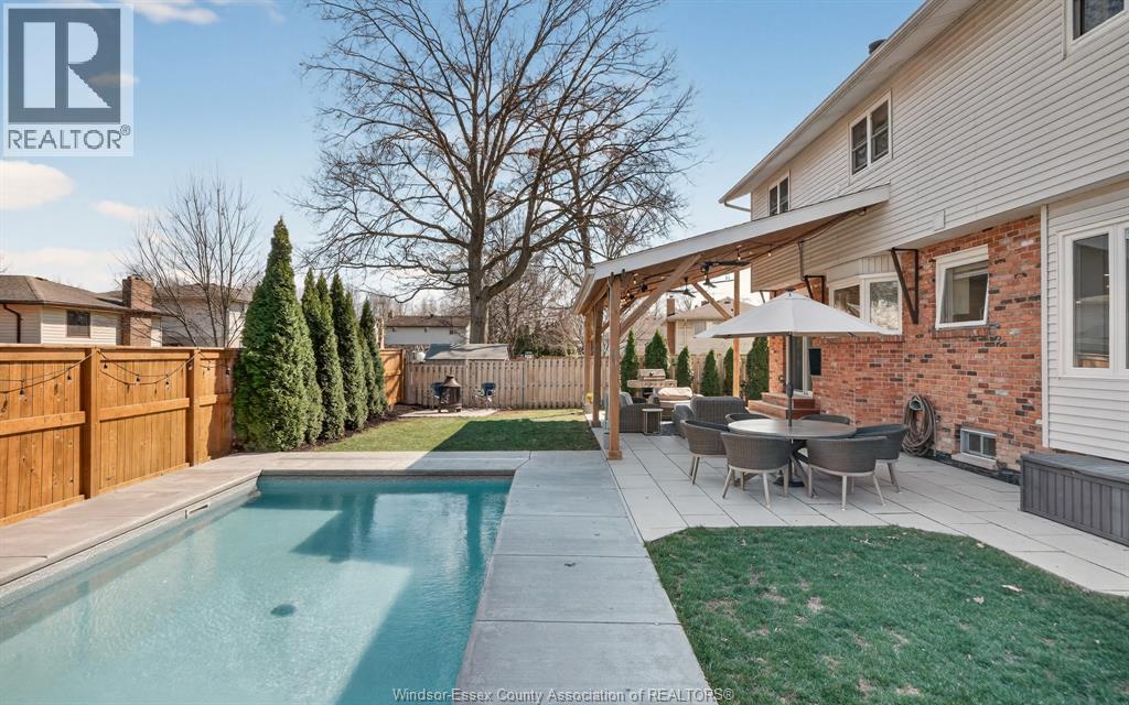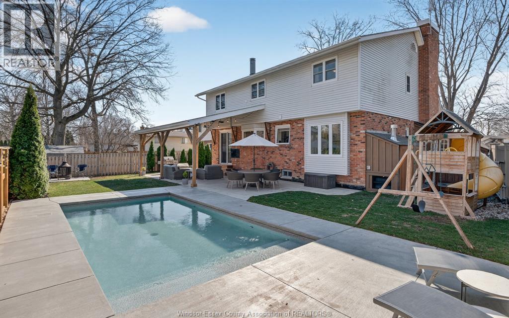 Imagine pulling onto this quiet cul-de-sac in LaSalle. Kids are laughing and shooting hoops at the neighbourhood basketball net. Bikes lie on the grass and neighbours wave with big smiles. This safe street is full of young families. Children ride bikes, play outside, and feel completely free while parents relax knowing everyone looks out for each other. LaSalle is one of the safest towns in Canada. Step inside this beautiful two-storey home. A handy mudroom catches all the dirt. The bright kitchen has a breakfast bar for family snacks. Two family rooms make movie nights and relaxing easy. Upstairs, all the bedrooms are huge so no fighting over space, plus a massive playroom over the garage for forts and fun. Smart updates include a 2017 kitchen, 2026 basement, 2022 covered porch, 2020 saltwater pool, and 2020 fence. The backyard is the real star! A huge covered area overlooks the sparkling pool and big patio. It’s the neighbourhood kids’ favourite hangout for cannonballs, games, and nonstop laughter. The yard is fully fenced and safe. Downstairs, kids love the games room while adults enjoy the workout room. Tons of storage keeps everything neat. This home is perfect for happy family memories — pool parties, bike rides until dark, and friendly waves every day. Your kids will love growing up here feeling safe and free. (id:64974)