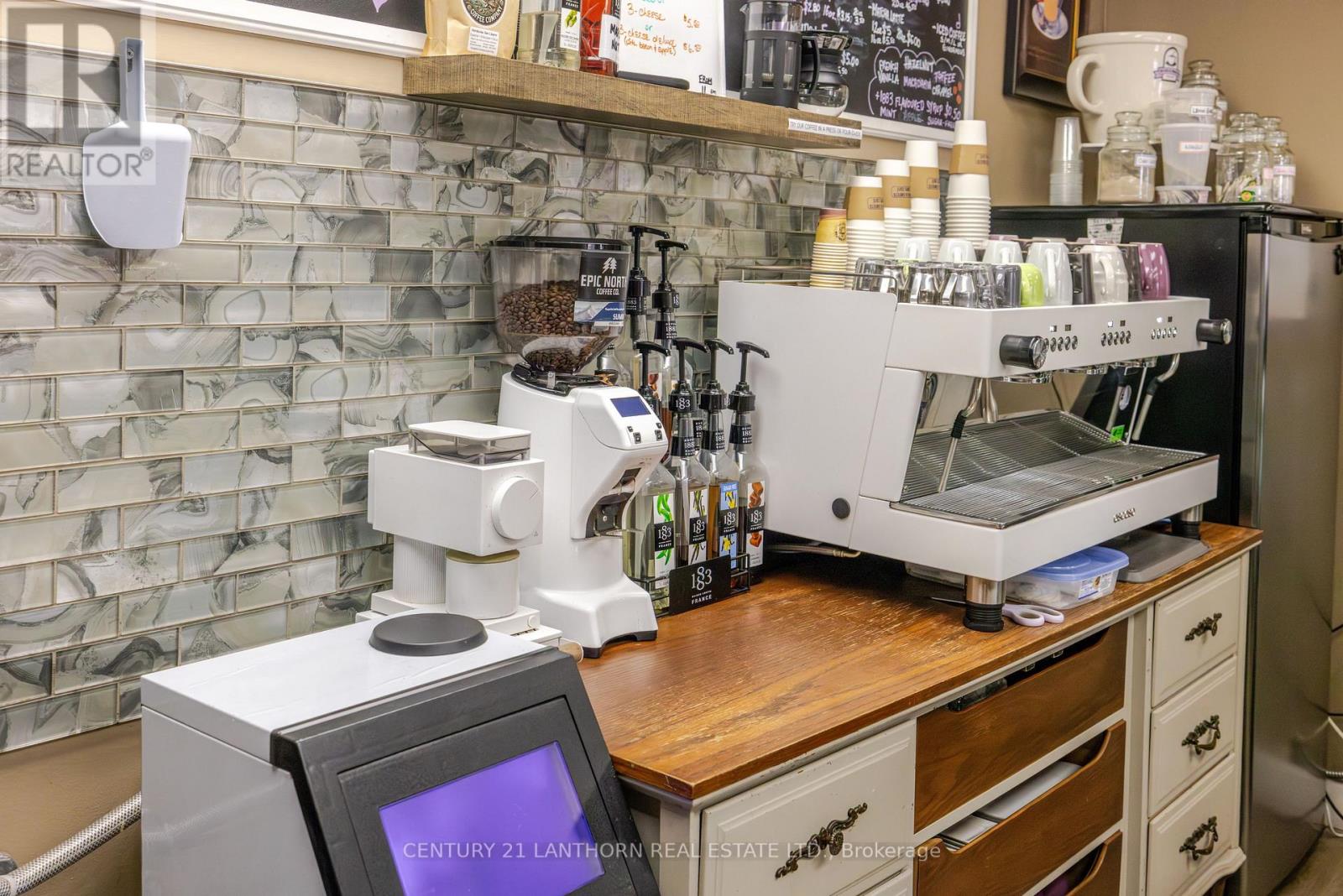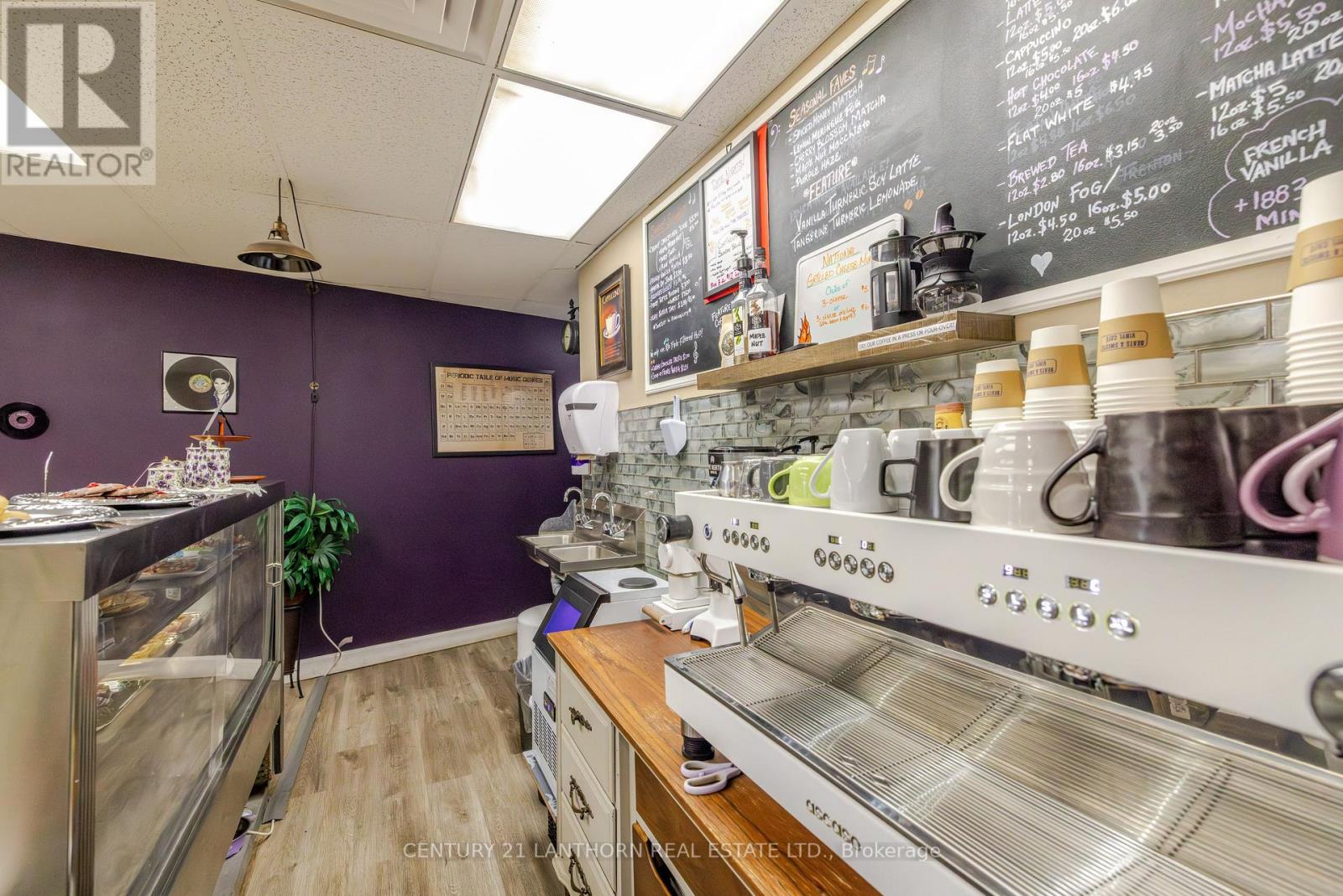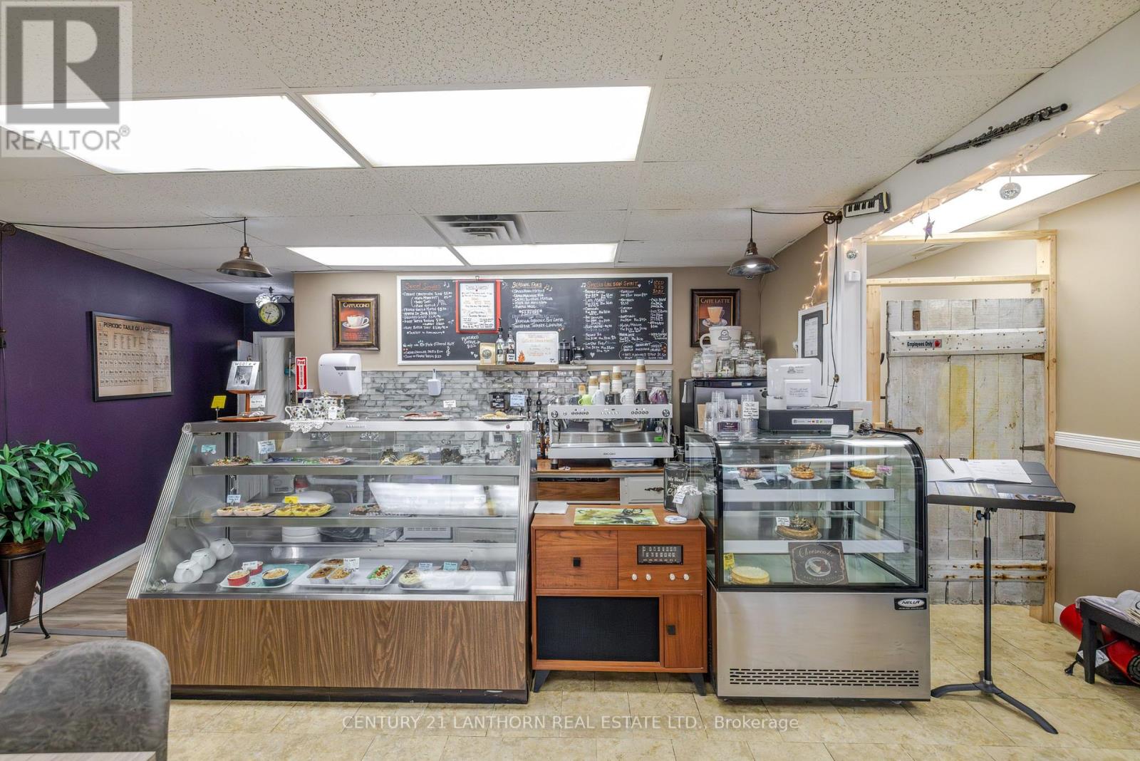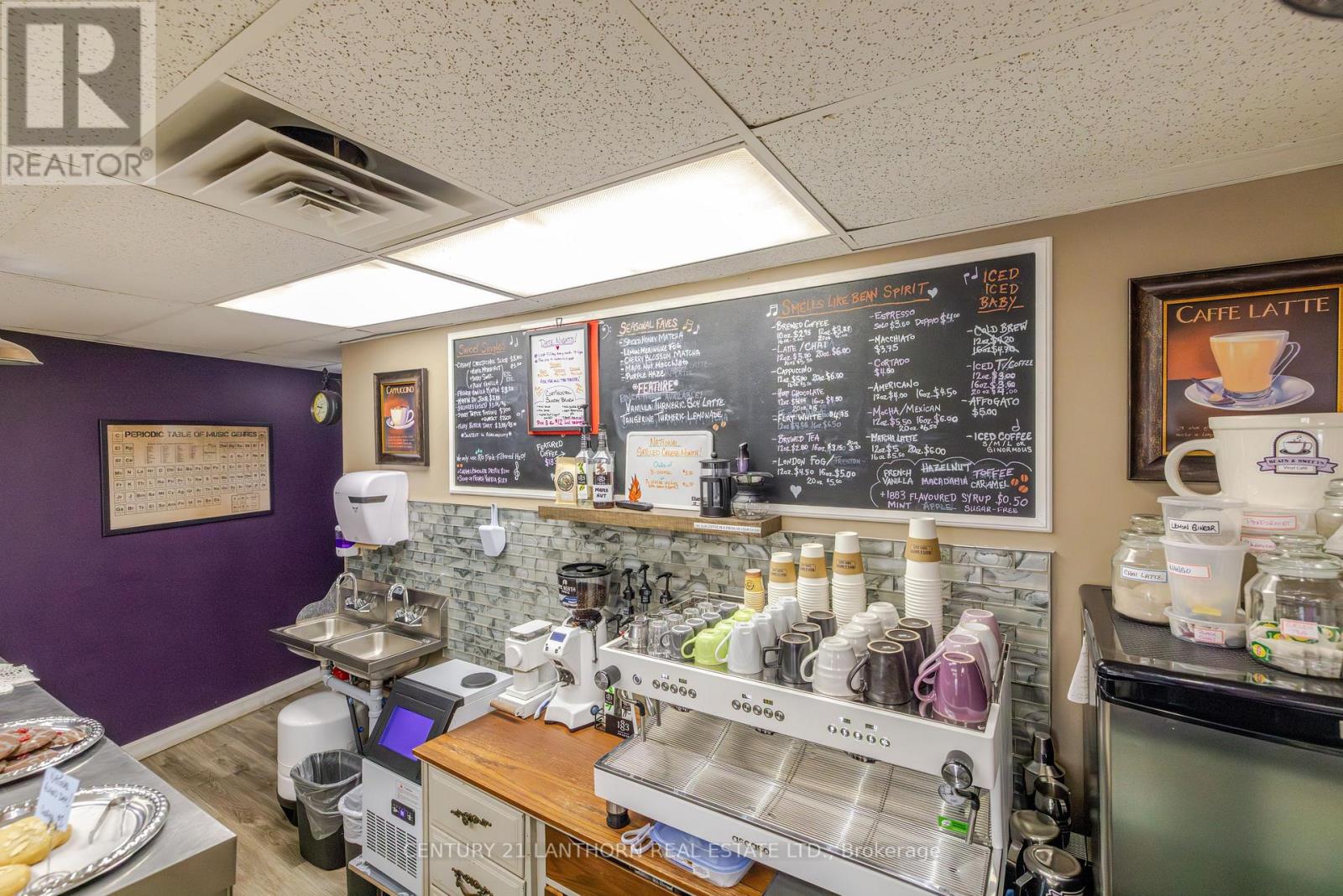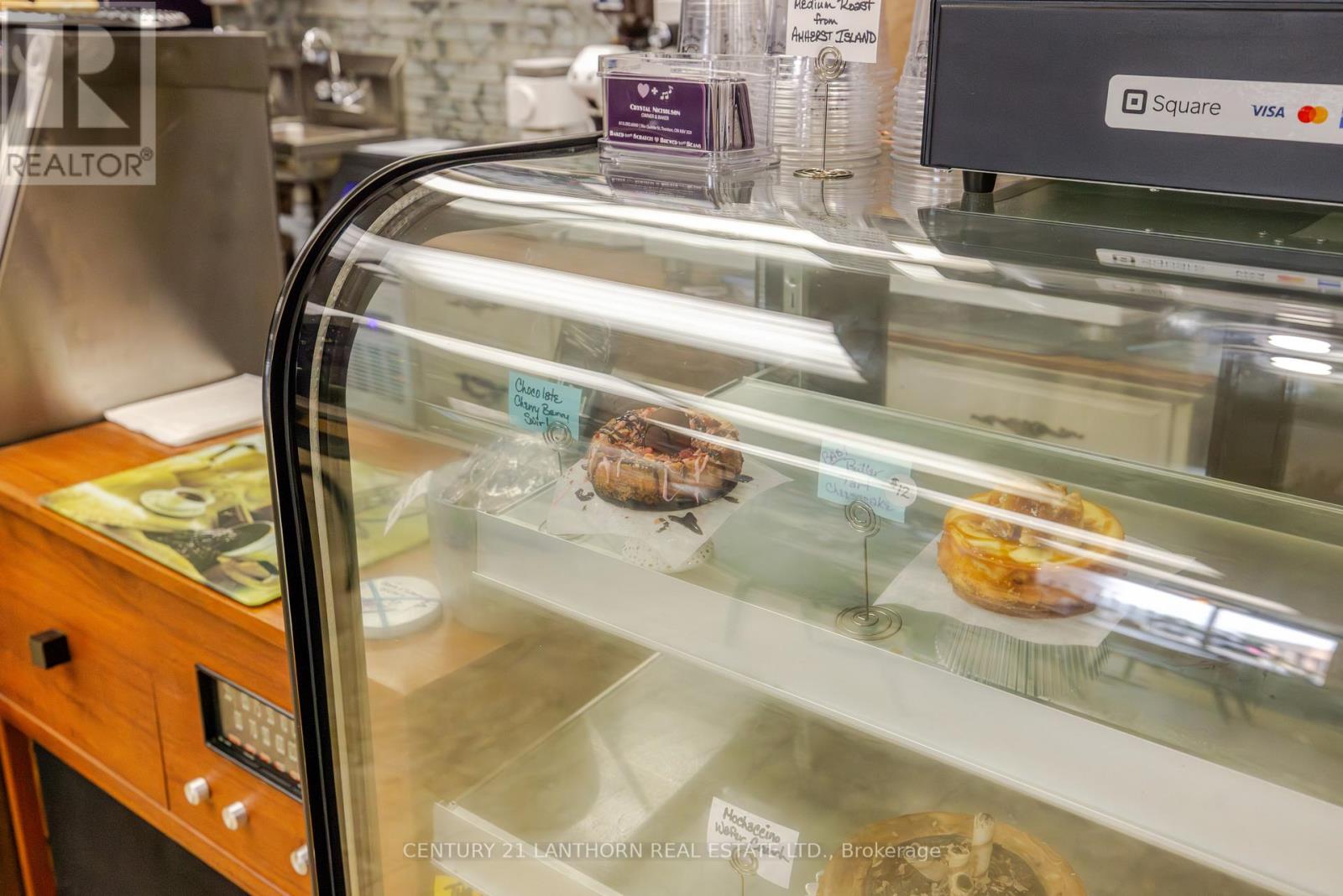A rare opportunity to own a beautifully designed, fully equipped cafe and bakery in a prime downtown Trenton location. Just a short walk to the riverfront, Trent Port Marina, walking trails, library, and all downtown amenities, this spot naturally draws both locals and visitors. This established business comes with excellent reviews, a loyal customer base, and minimal startup costs. The space is thoughtfully designed with a warm, calming aesthetic, large front window for natural light, and comfortable seating for 10+. It also includes two entrances (one accessible), office space, and a utility room with roof access. The business sale includes the entire asset package, featuring a 3-group ASCASO espresso machine with grinder and accessories, a vintage 1971 Rock-Ola jukebox, commercial fridges and freezers, convection ovens, prep stations, mixers, display units, POS system, security, and all kitchenware and baking equipment. Everything is in place-simply stock up and open the doors. Lease to be negotiated with landlord. This is a rare chance to own a thoughtfully curated cafe in a high-visibility, lifestyle-driven location that naturally draws both residents and tourists. (id:64974)