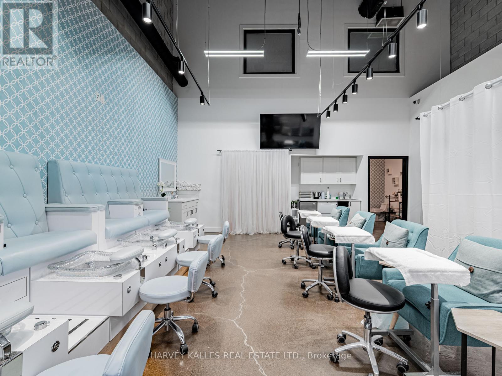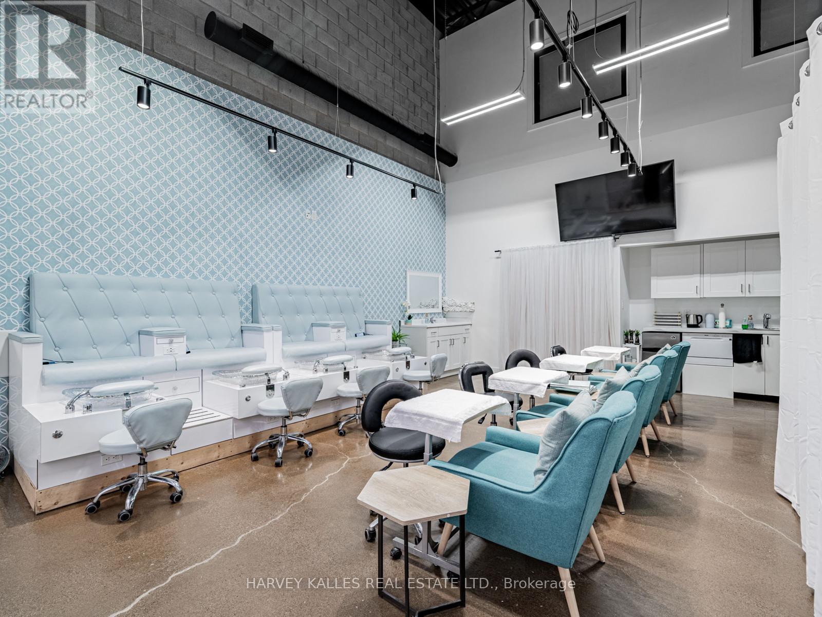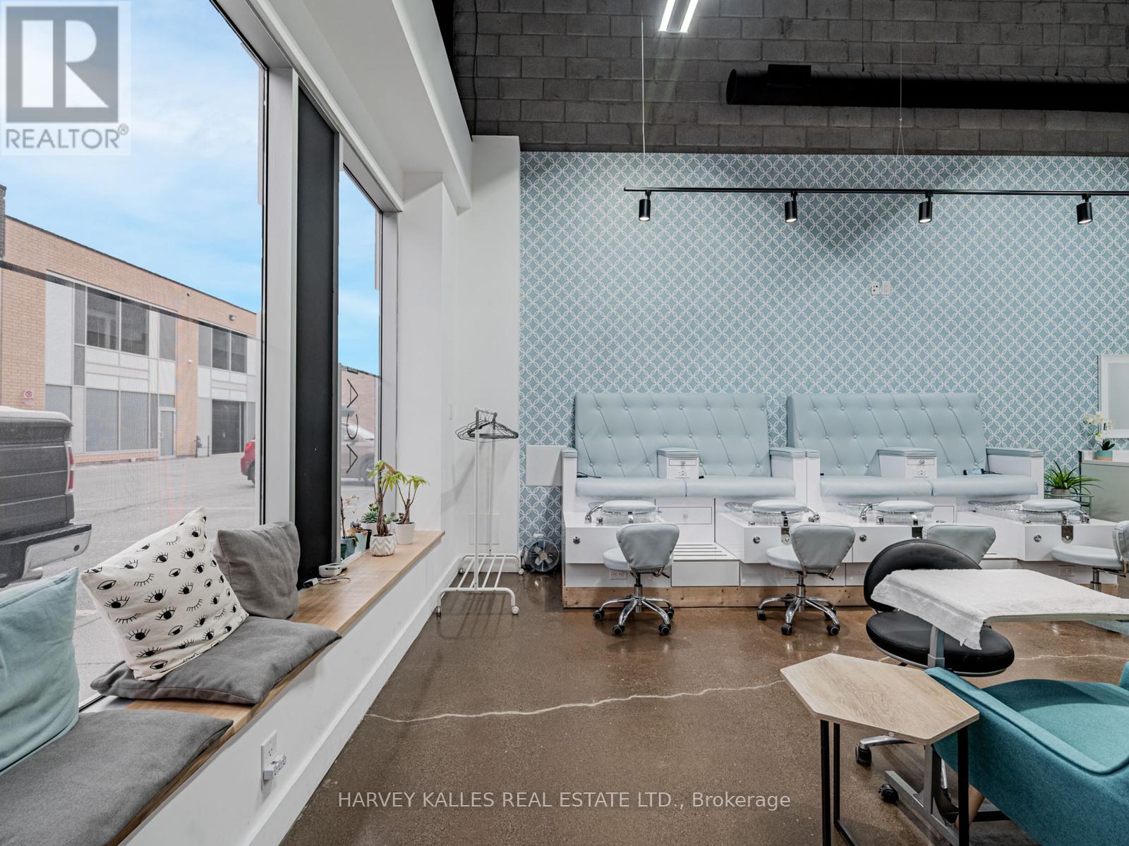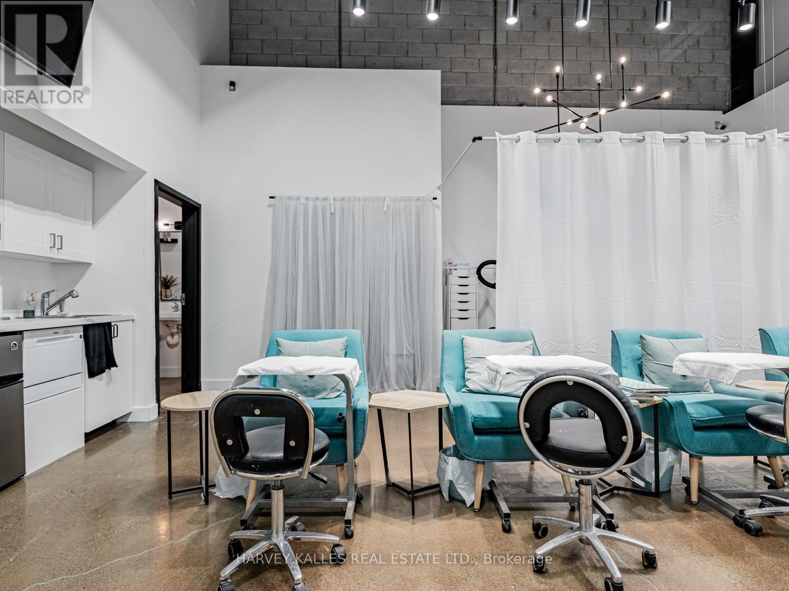 Fabulous Investment opportunity - Fully Leased commercial condo! This modern commercial condo unit is ideally situated in a recently constructed plaza along The Queensway, perfectly positioned close to the QEW, Hwy 427, and Gardiner Expressway-offering unparalleled access to Toronto and Mississauga. Strategically divided into two separate, contemporary spaces, the front unit impresses with polished concrete floors, soaring 23-foot ceilings and expansive south-facing windows that flood the space with natural light. The rear unit features a grade-level garage door leading to an industrial-style space, complemented by a sleek open-concept mezzanine with custom built-in units. Currently leased to two AAA tenants, this turnkey investment generates an annual gross rental income of $78,030, with a 5% annual rent escalation, ensuring solid and growing returns. Don't miss out on this exceptional income-generating property! *Front tenant is willing to vacate if Buyer wants to use space. (id:64974)