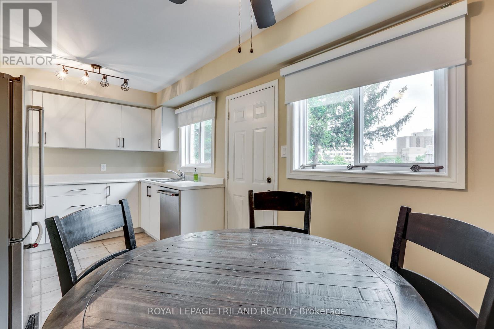 Beautiful freshly Renovated 3 Bedroom Townhouse Condo in South London. Literally just STEPS to London Health Science Centre Hospital, and many new amenities just down the road. New Flooring In living Room And lower-level rec-room. New Kitchen reno in 2025. Roof - approx 15 yrs old. UPDATED ELECTRICAL PANEL (2025). Gas Furnace, Central Air Conditioning, And Gas Fireplace In LIVING ROOM. ALL new windows in 2024. Parking right in front of your condo with extra parking throughout the parking lot. Owner responsible for fence around their patio. Appliances included. Windows, Doors and Water included in the Condo fee. Easy to Show. (id:64974)