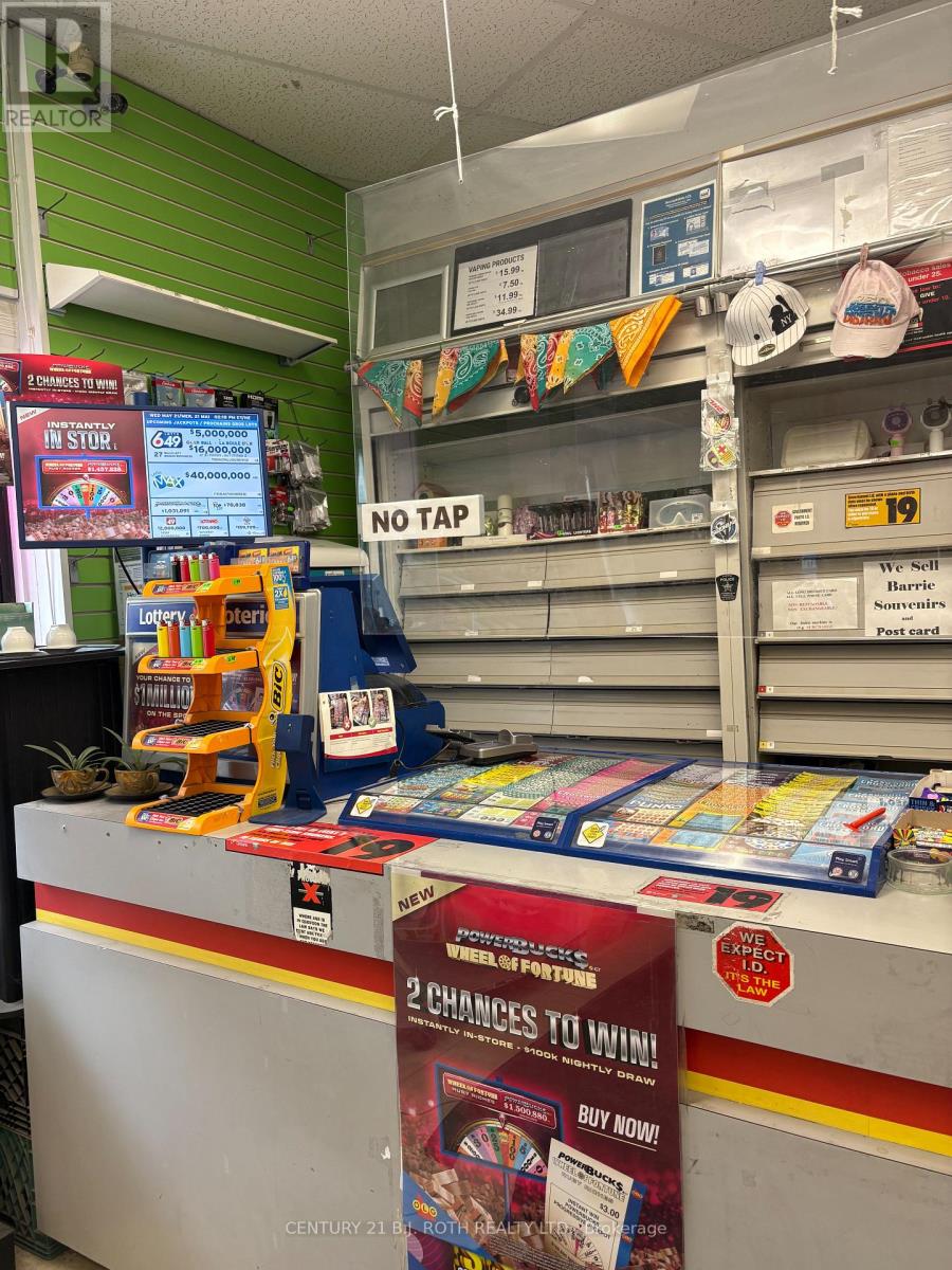 Business For Sale!! Exceptional opportunity to own a well-established convenience store in the heart of Downtown Barrie. Located in a high-visibility, high-traffic area surrounded by offices, residential Condo buildings, and local amenities. Strong walk-in and drive-by traffic ensures consistent daily revenue. Prime Downtown Location Excellent exposure with consistent pedestrian and vehicle flow Affordable Lease Approx. $2,000/month + TMI. Established Hours Operating 8 AM 8 PM (extendable for increased revenue) Revenue Streams Strong sales in cigarettes, lottery, ATM commission, snacks, beverages & more Liquor License Potential Eligible for application to further boost profit ability Turnkey Operation Clean setup, POS systems, displays & fixtures included Additional Ideal for owner-operator or investor. Significant growth potential by extending hours, enhancing inventory, or expanding services. Inventory sold separately. Financials available upon request for qualified buyers. (id:64974)
